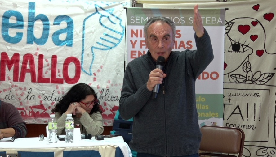 Tomó luego la palabra Analía Meaurio, Subsecretaria de DDHH del SUTEBA, quien presentó a lxs expositorxs de la mesa: Cristina Echegoyen y Amanda González, Secretaria y Subsecretaria de Igualdad de Géneros y Diversidades respectivamente, y Héctor González, integrante del equipo de Educación del Sindicato y Director de la Revista Siete3Siete.