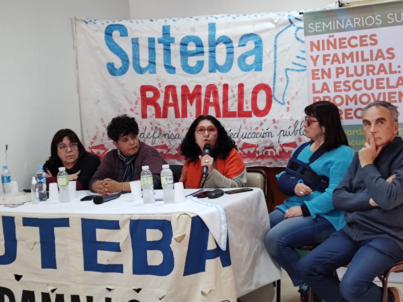 Tomó luego la palabra Analía Meaurio, Subsecretaria de DDHH del SUTEBA, quien presentó a lxs expositorxs de la mesa: Cristina Echegoyen y Amanda González, Secretaria y Subsecretaria de Igualdad de Géneros y Diversidades respectivamente, y Héctor González, integrante del equipo de Educación del Sindicato y Director de la Revista Siete3Siete.