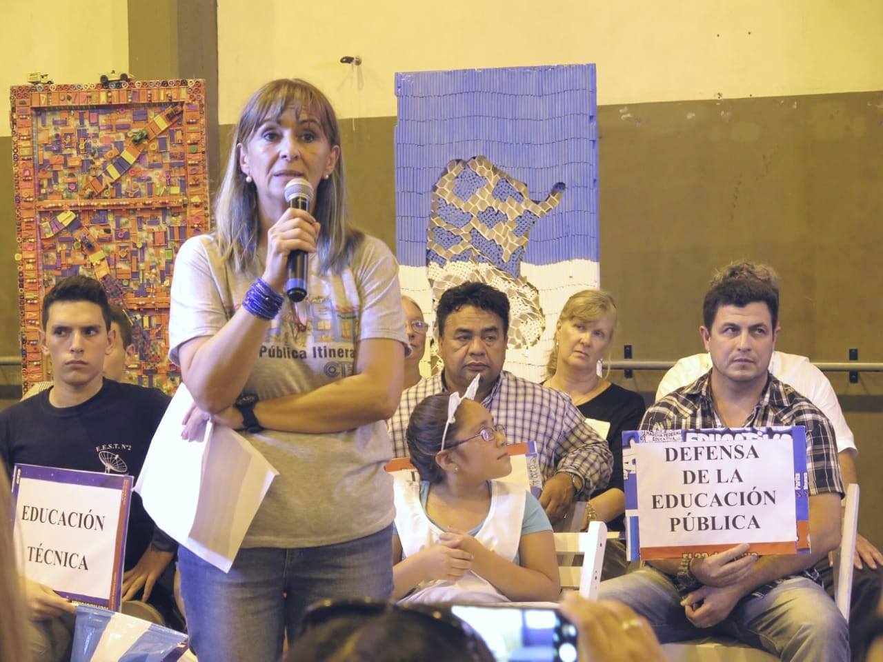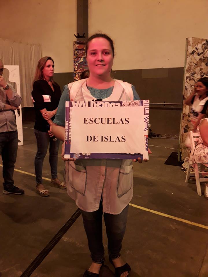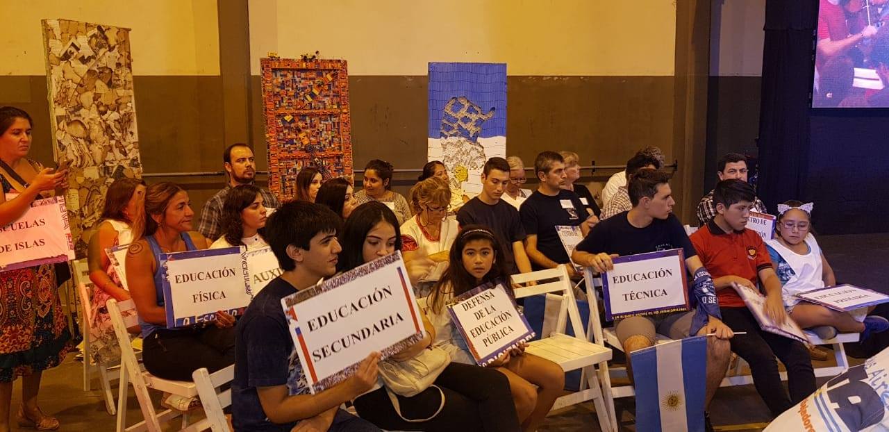 Se realizó un emotivo reconocimiento a la lucha contra el cierre de las Escuelas, en particular las de Islas, simbolizadas en la Escuela de Caracoles, las Escuelas Técnicas, las de Educación Especial, las de Educación de Adultxs, los Equipos de Orientación Escolar y los Secundarios de Adultxs, todo ello abrazado con la música de la Orquesta Juvenil de Benavídez.