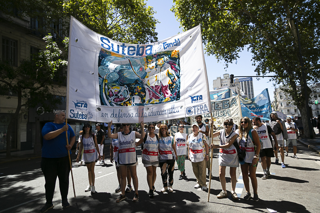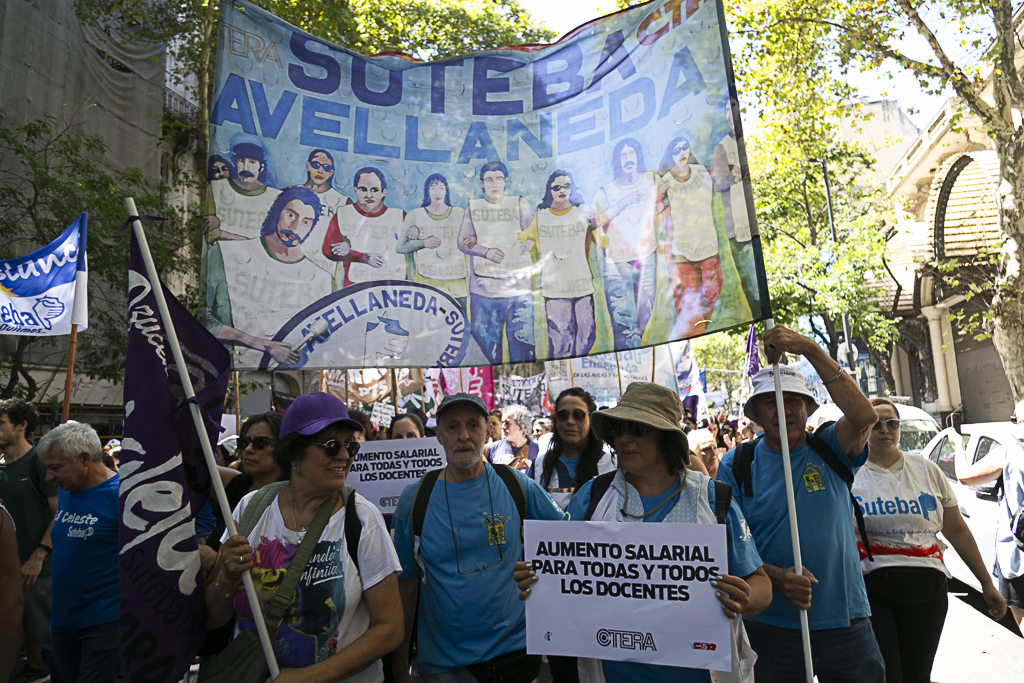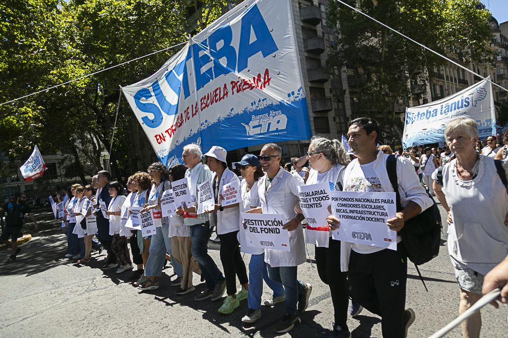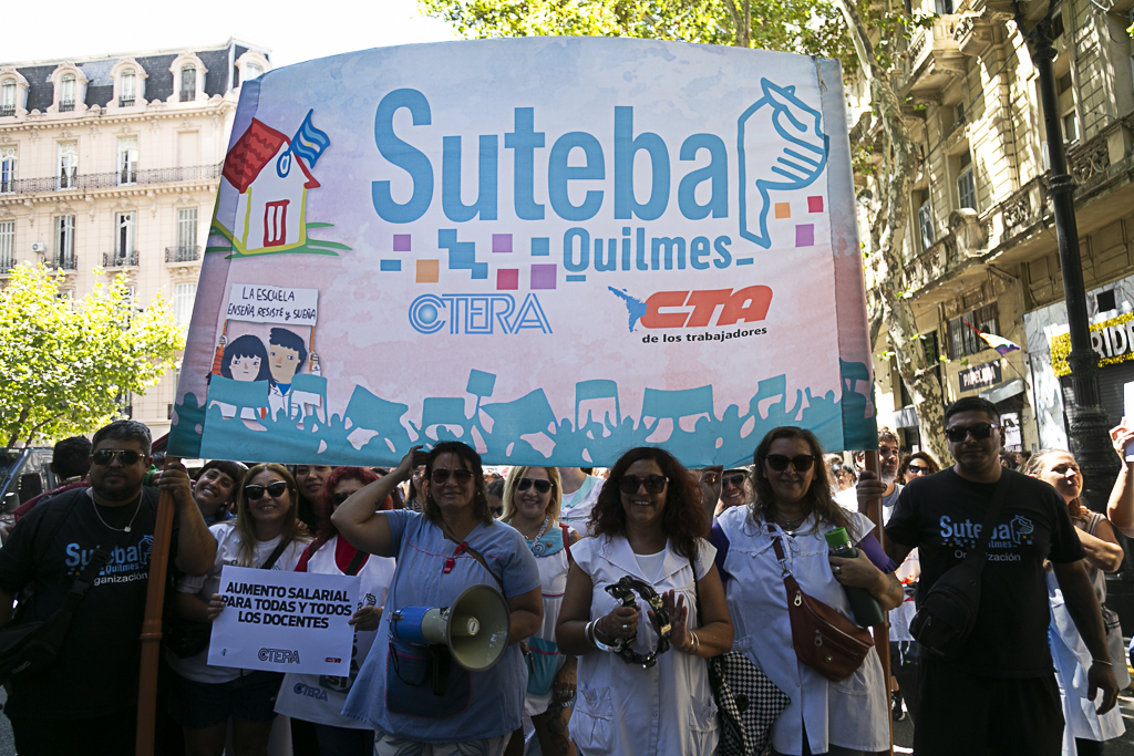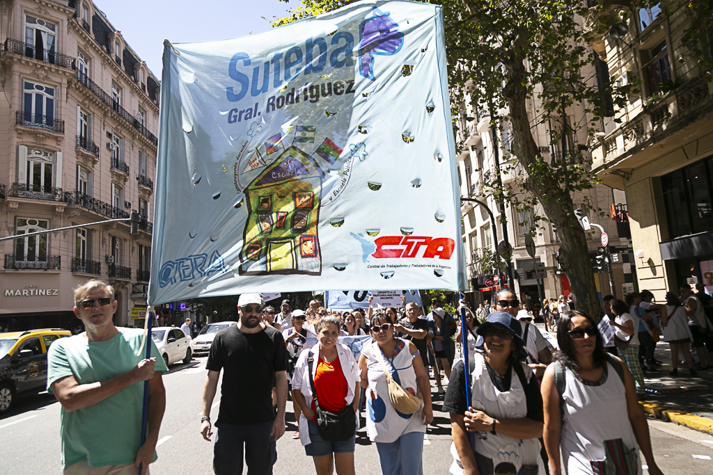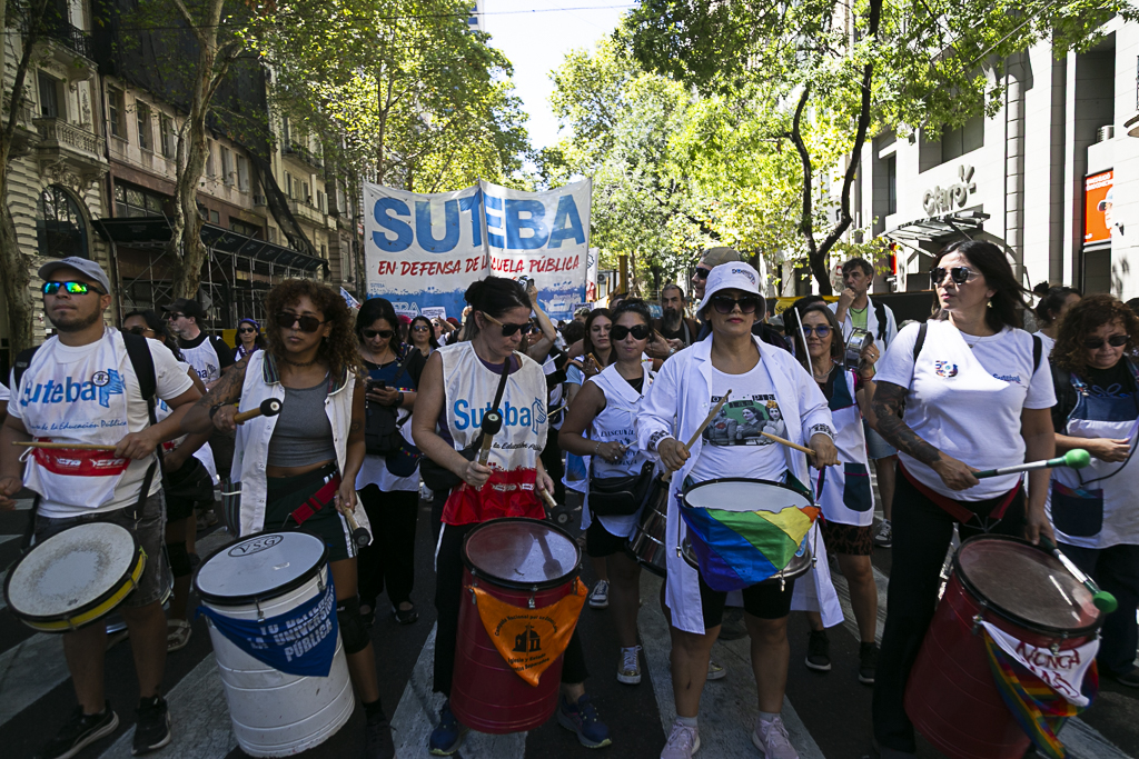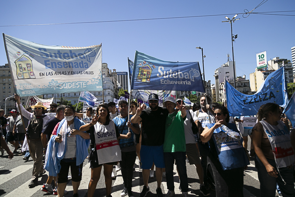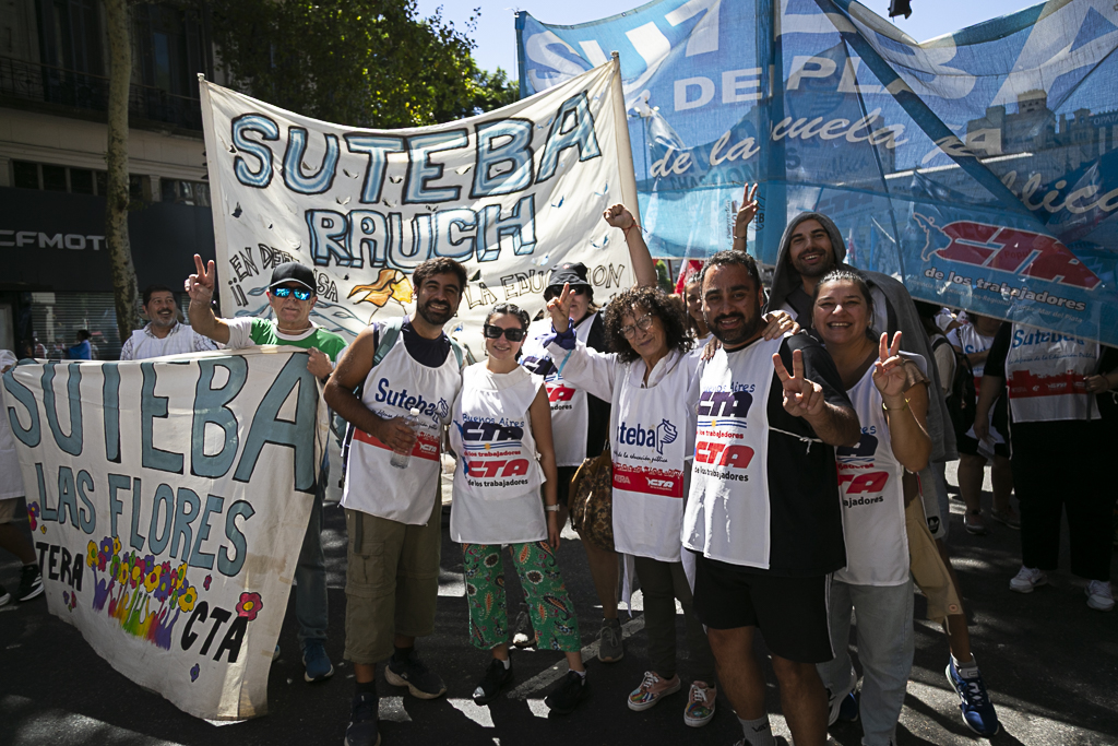En el marco del paro nacional convocado por la CTERA, que contó con un altísimo acatamiento en todo el país, el SUTEBA fue protagonista de la multitudinaria marcha desde el Cabildo hasta el Congreso, junto a delegaciones de Sindicatos de base de CTERA, AMET y SADOP.