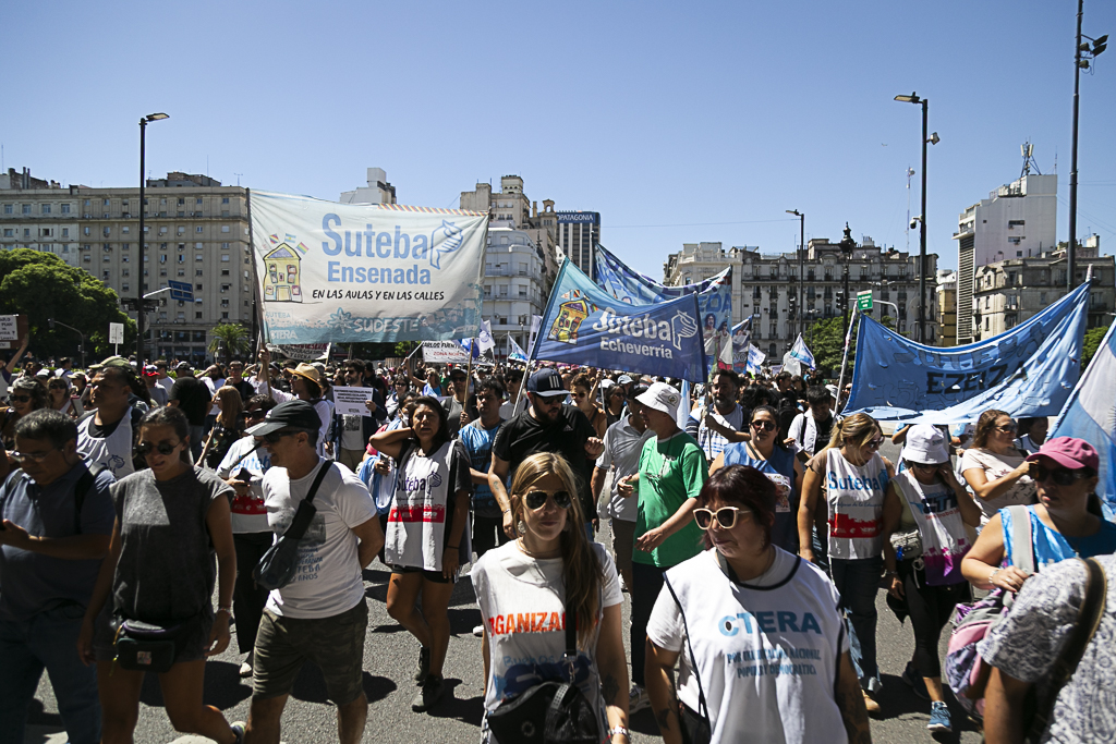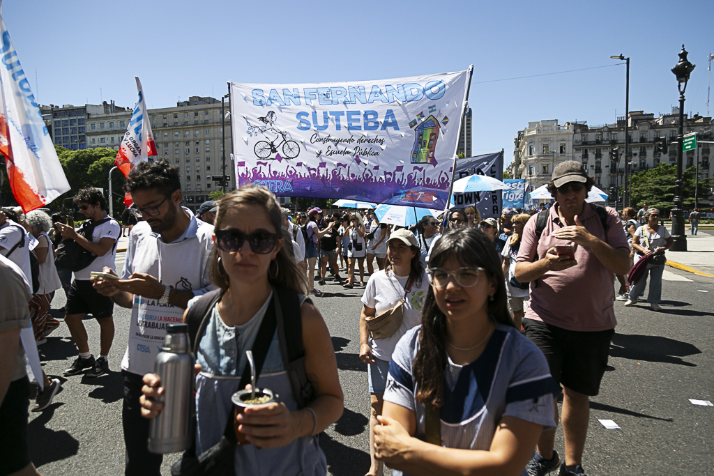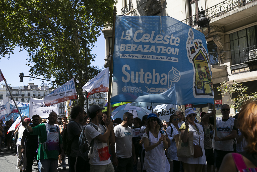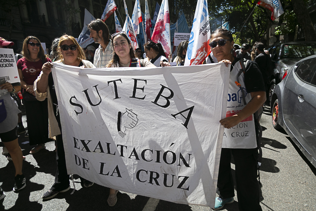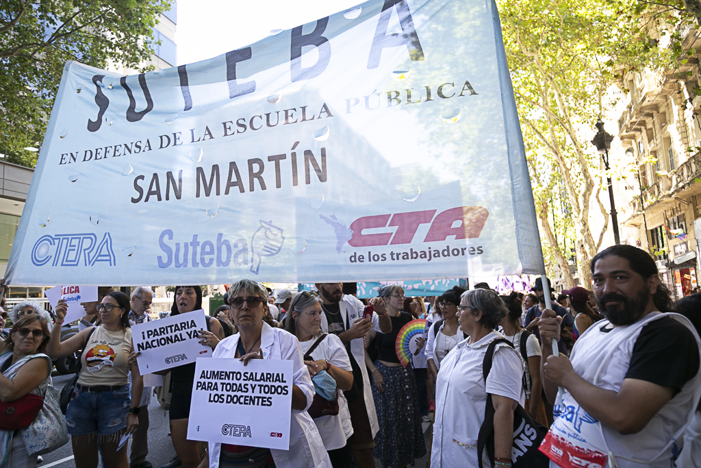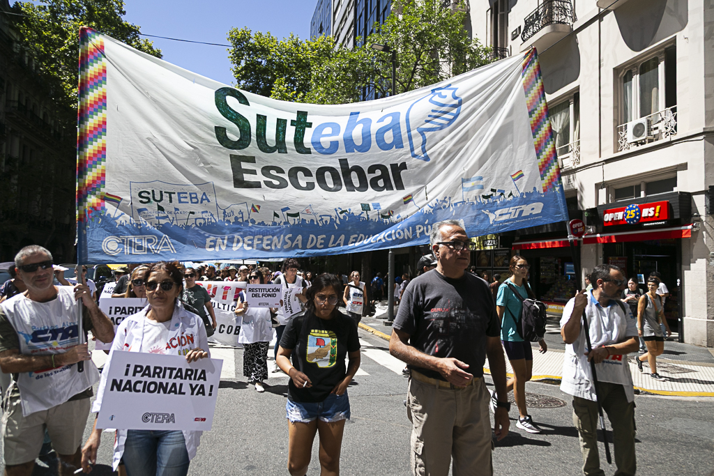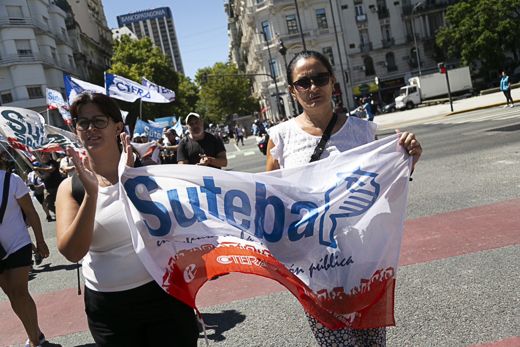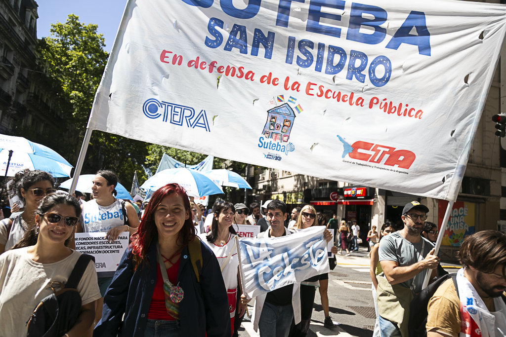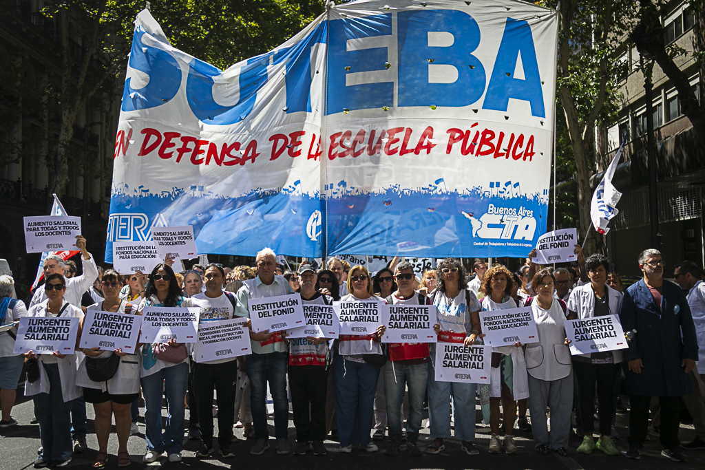 En el marco del paro nacional convocado por la CTERA, que contó con un altísimo acatamiento en todo el país, el SUTEBA fue protagonista de la multitudinaria marcha desde el Cabildo hasta el Congreso, junto a delegaciones de Sindicatos de base de CTERA, AMET y SADOP.