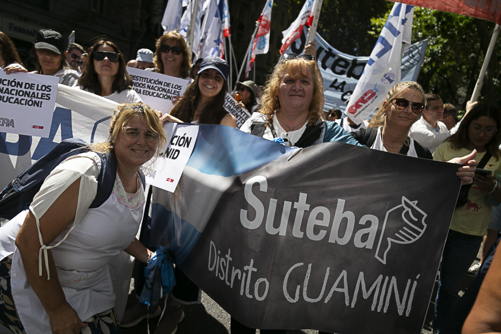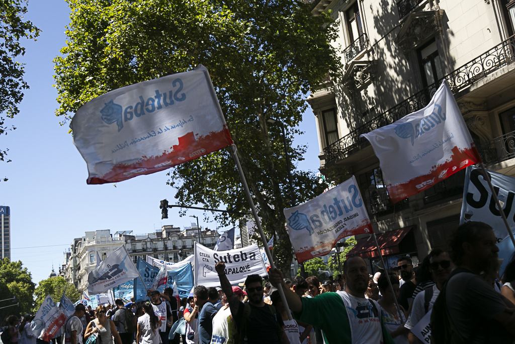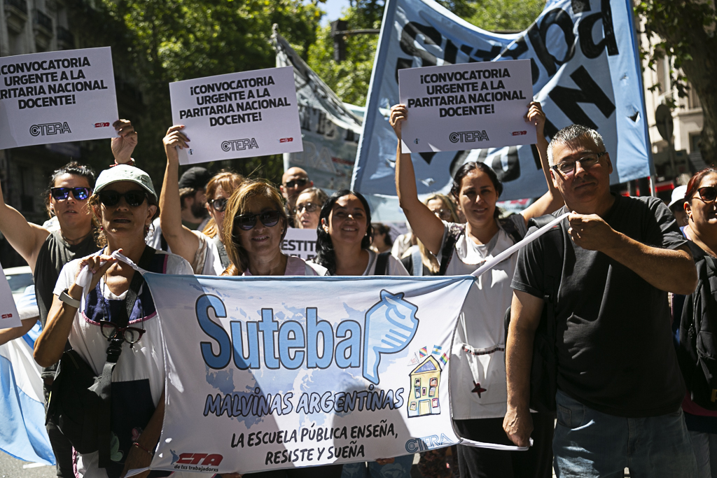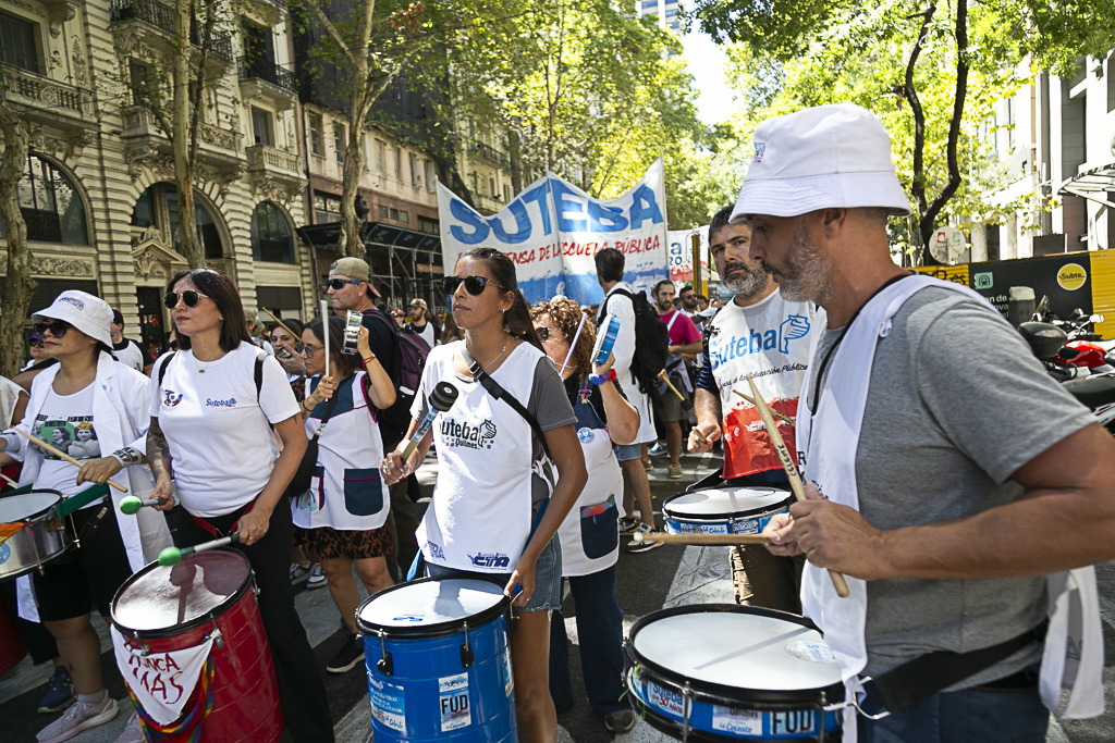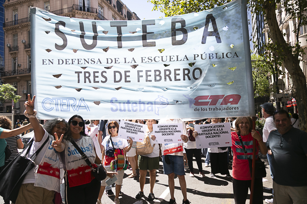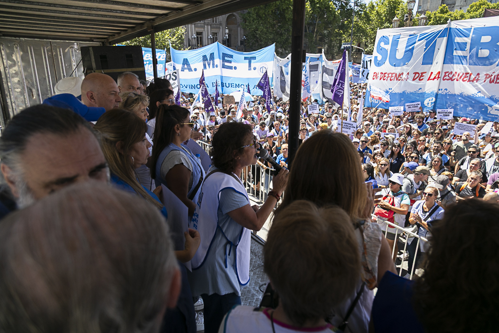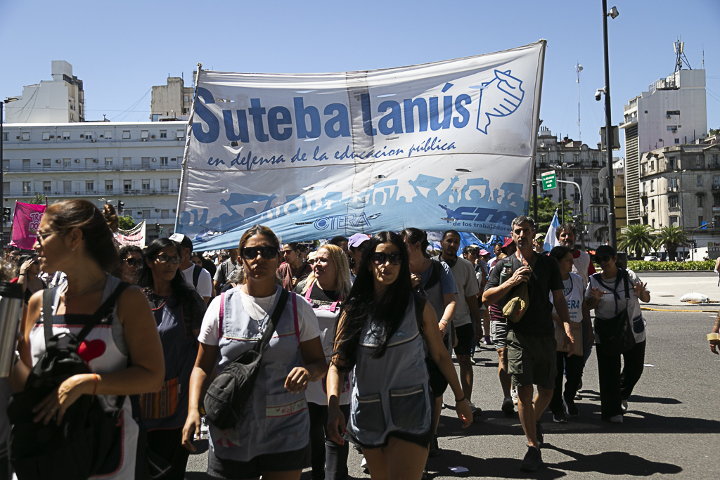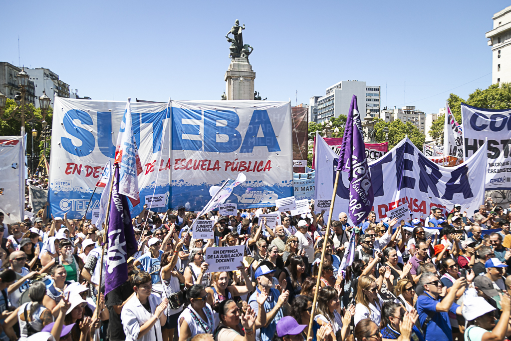 En el marco del paro nacional convocado por la CTERA, que contó con un altísimo acatamiento en todo el país, el SUTEBA fue protagonista de la multitudinaria marcha desde el Cabildo hasta el Congreso, junto a delegaciones de Sindicatos de base de CTERA, AMET y SADOP.