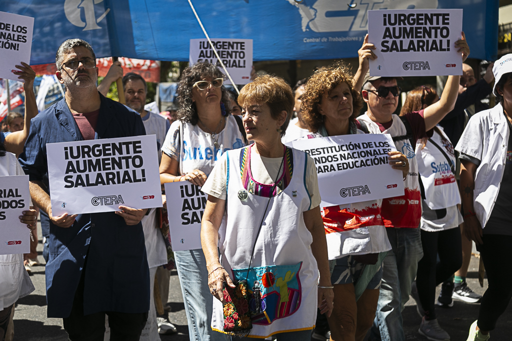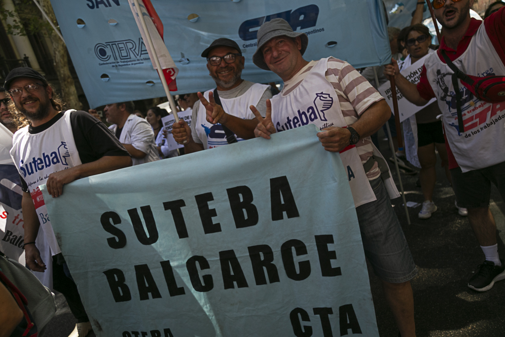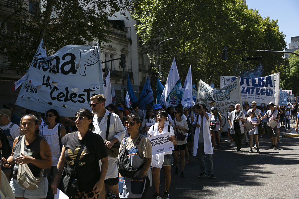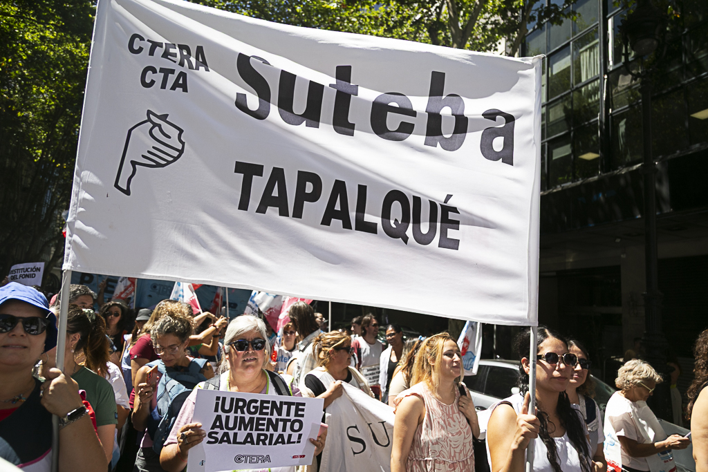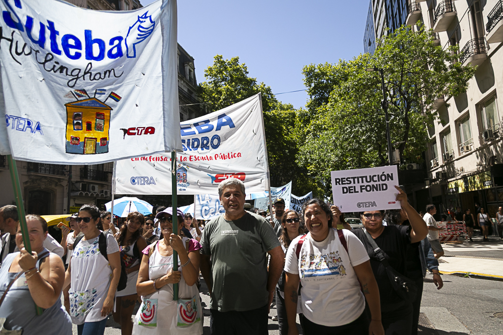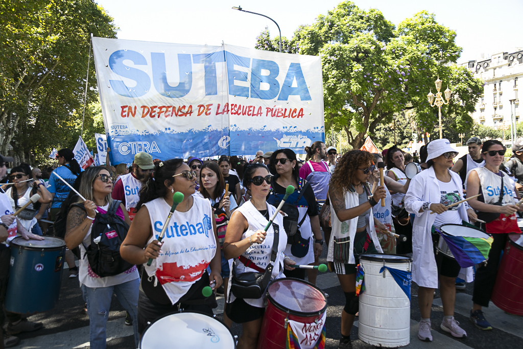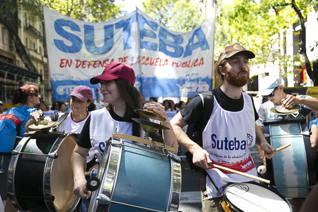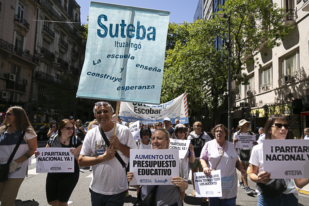 En el marco del paro nacional convocado por la CTERA, que contó con un altísimo acatamiento en todo el país, el SUTEBA fue protagonista de la multitudinaria marcha desde el Cabildo hasta el Congreso, junto a delegaciones de Sindicatos de base de CTERA, AMET y SADOP.