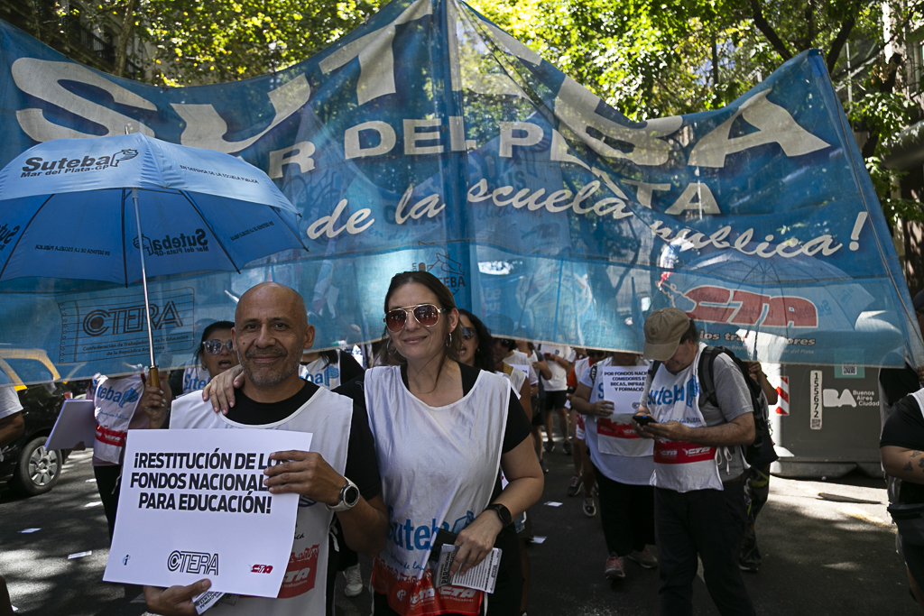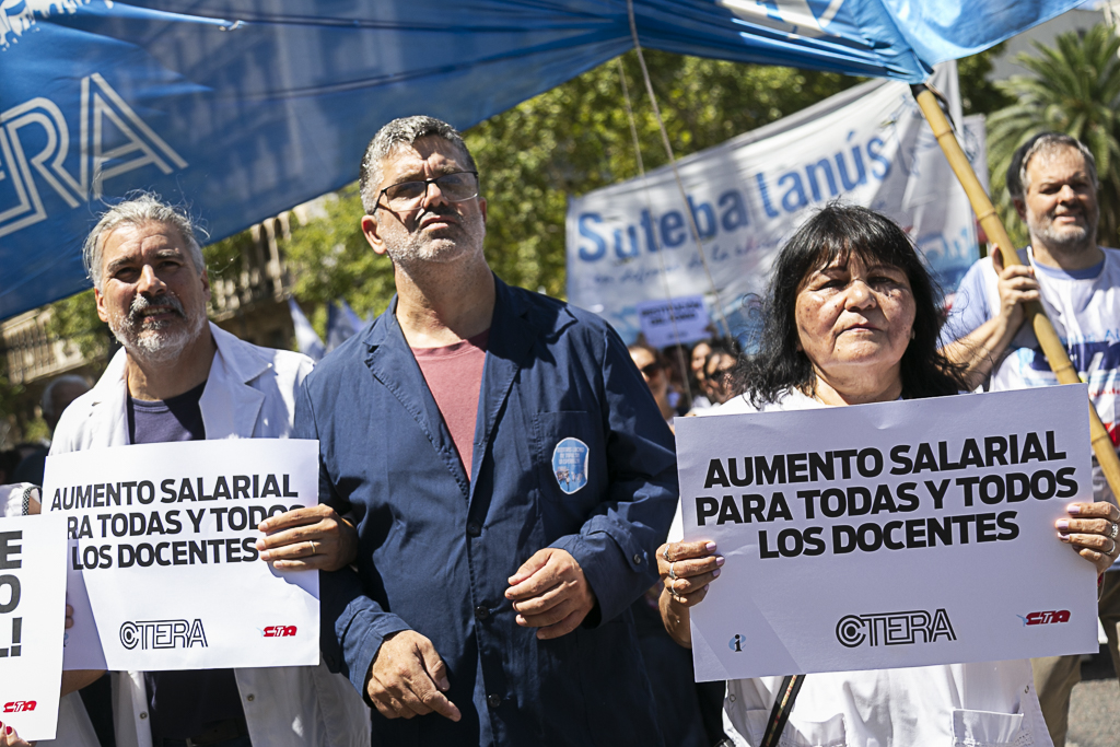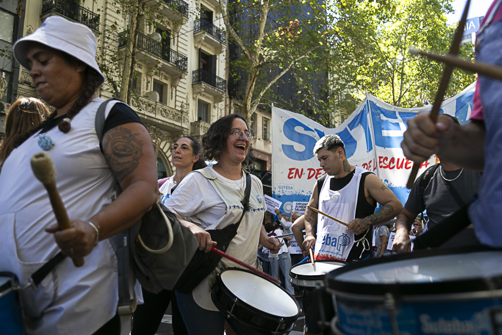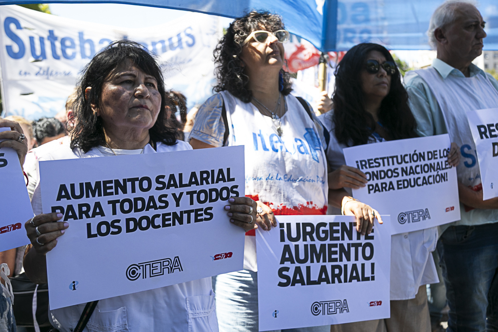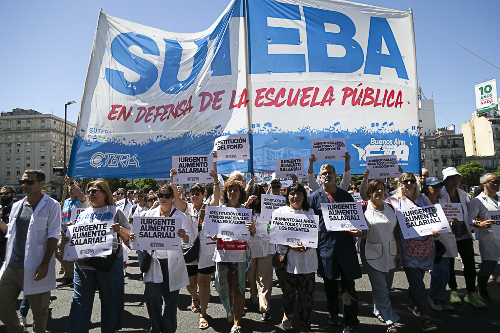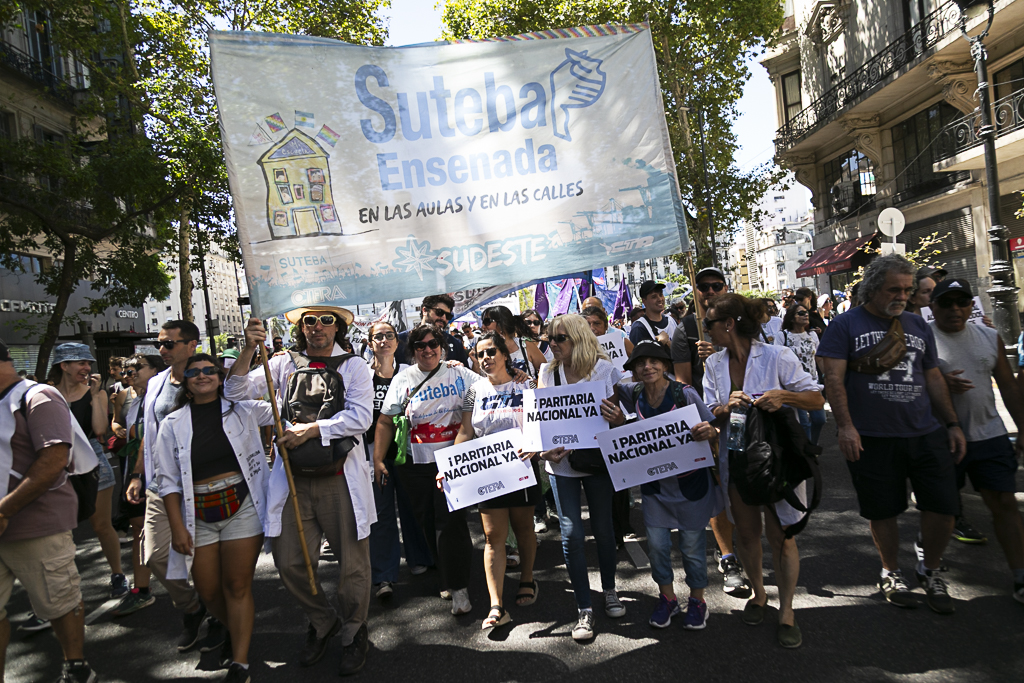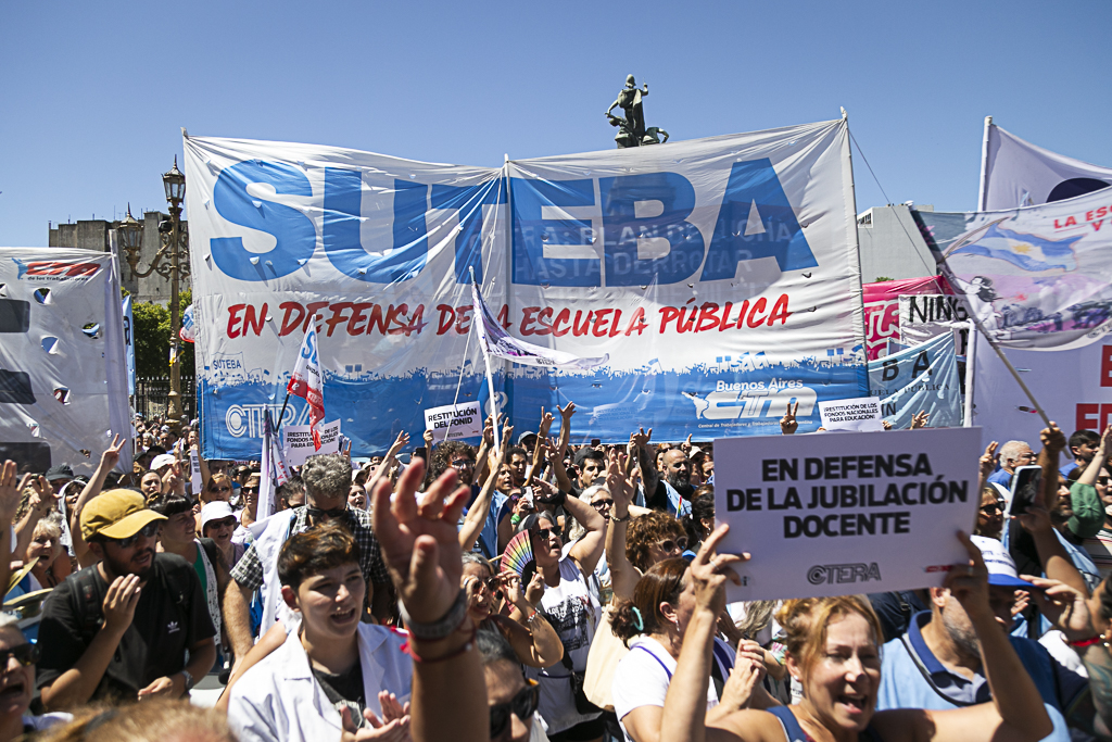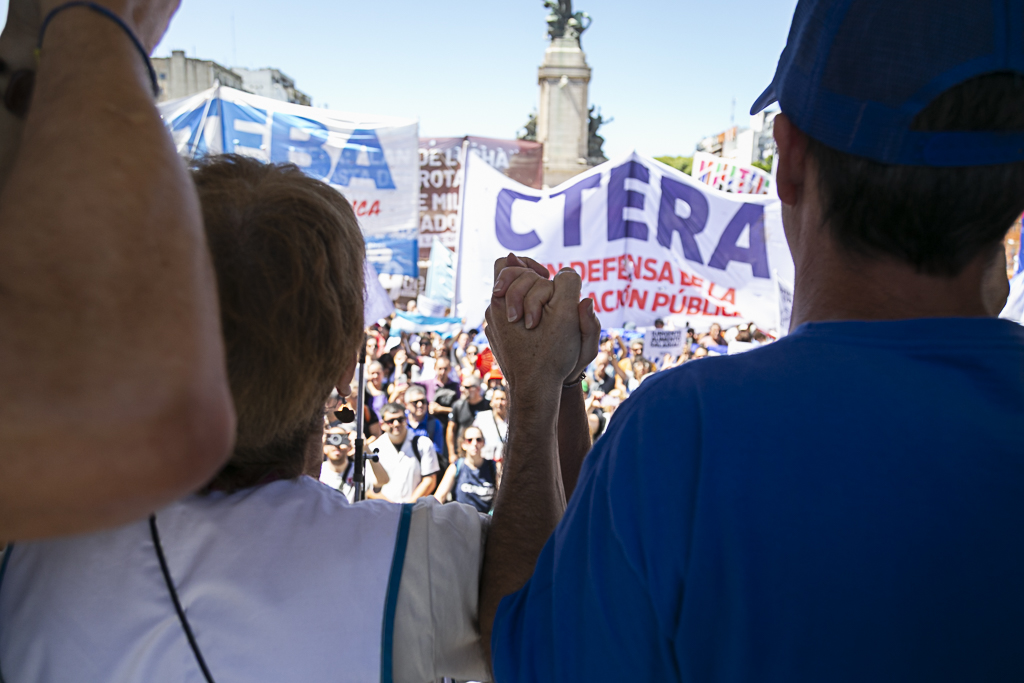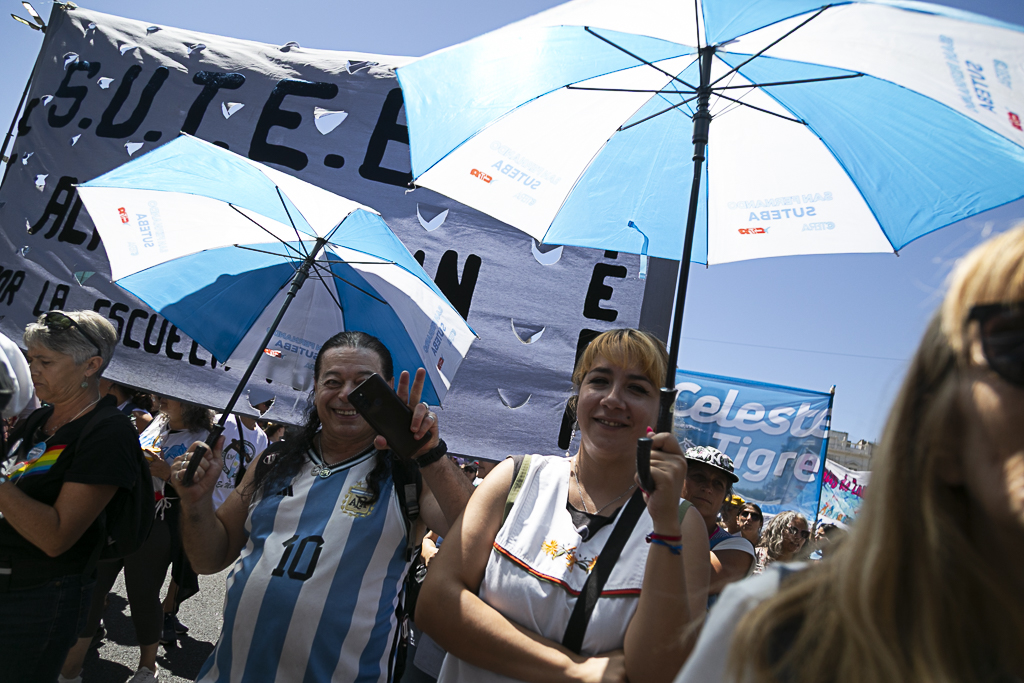 En el marco del paro nacional convocado por la CTERA, que contó con un altísimo acatamiento en todo el país, el SUTEBA fue protagonista de la multitudinaria marcha desde el Cabildo hasta el Congreso, junto a delegaciones de Sindicatos de base de CTERA, AMET y SADOP.