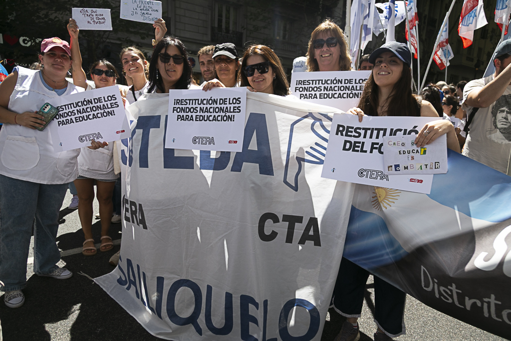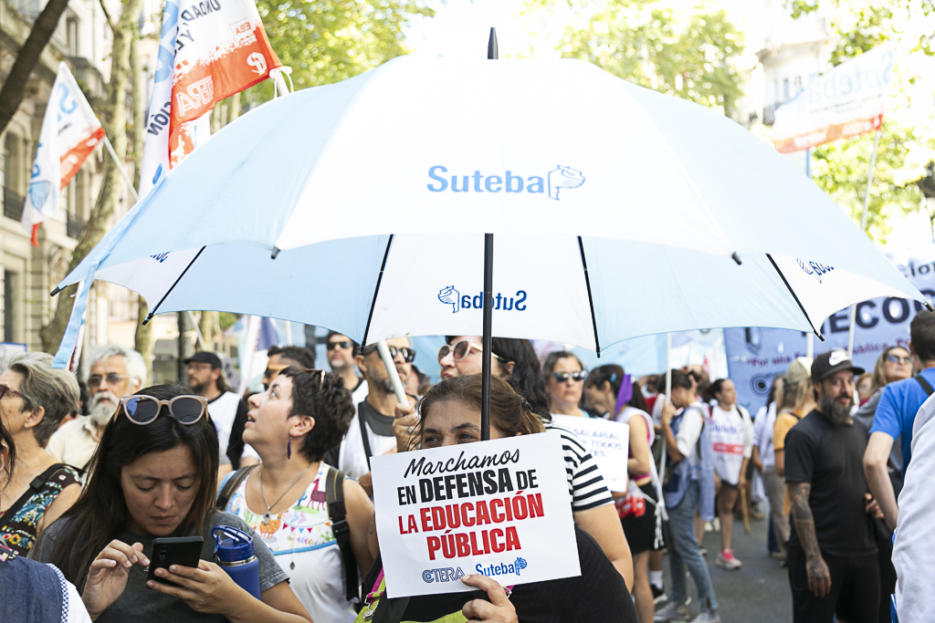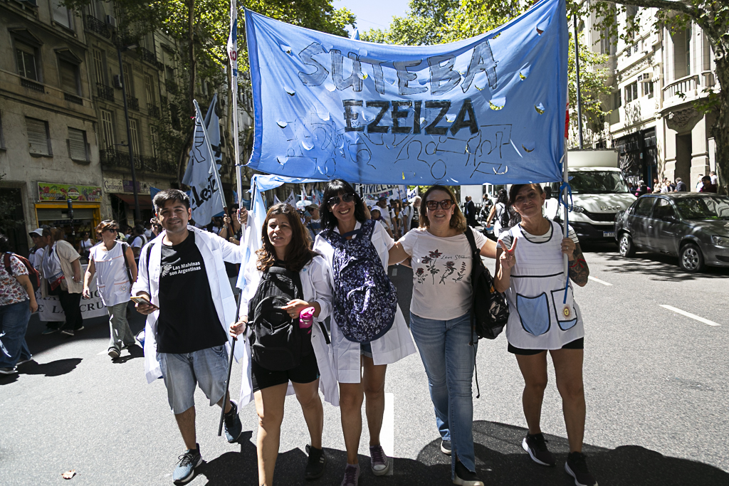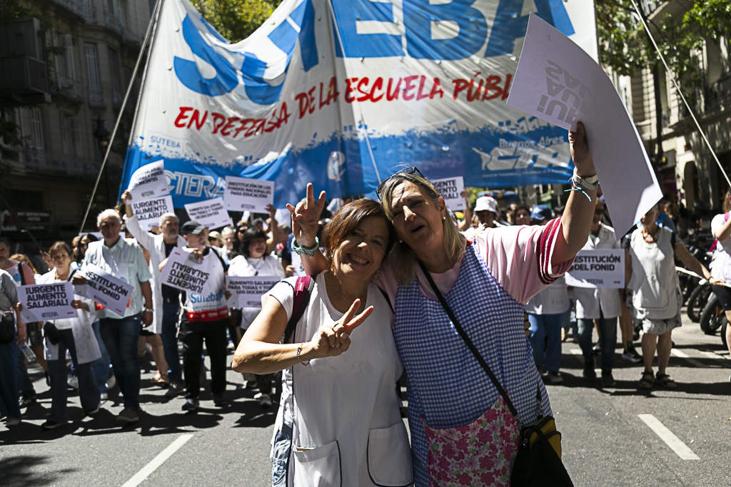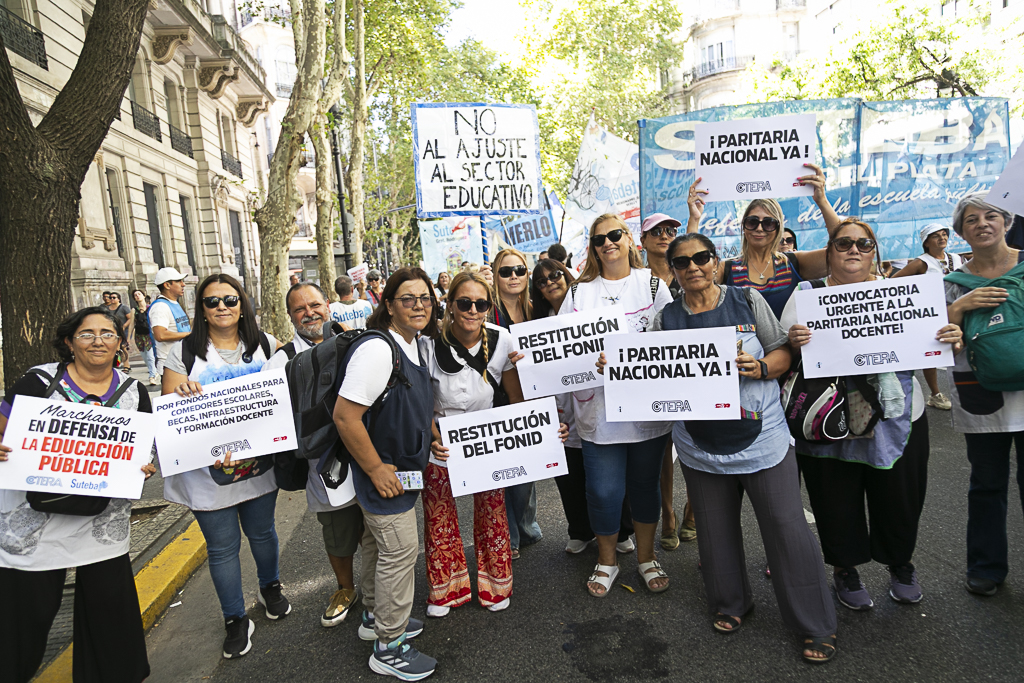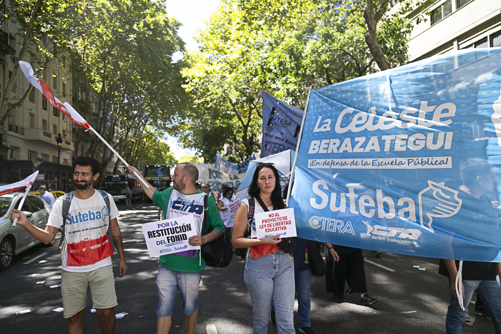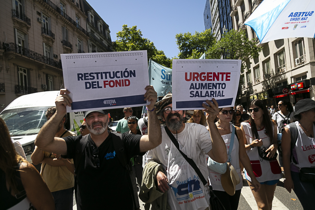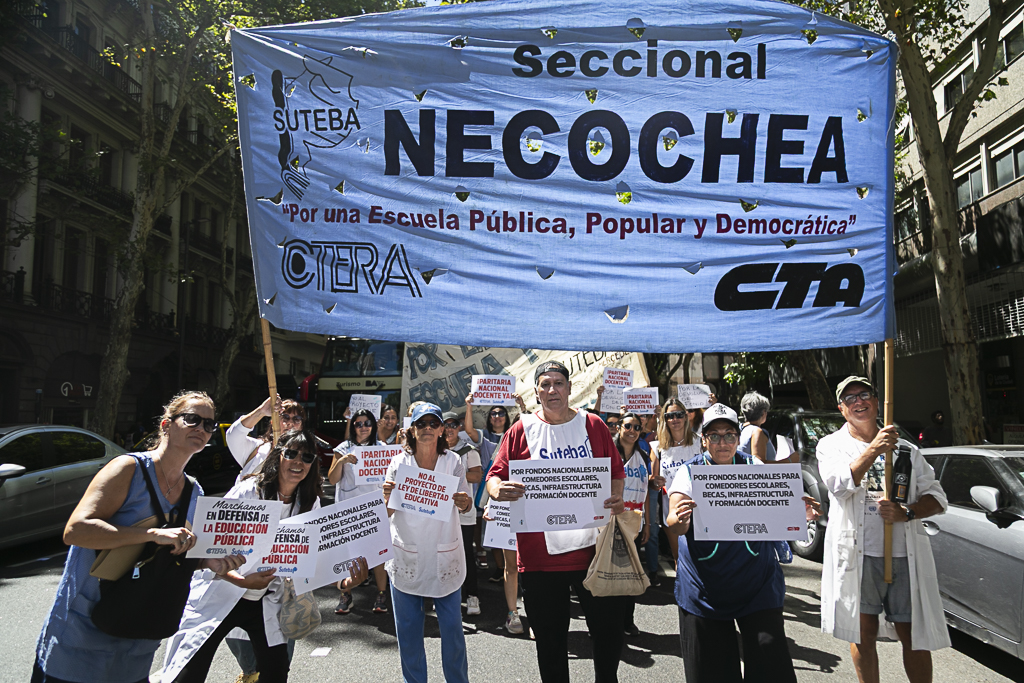 En el marco del paro nacional convocado por la CTERA, que contó con un altísimo acatamiento en todo el país, el SUTEBA fue protagonista de la multitudinaria marcha desde el Cabildo hasta el Congreso, junto a delegaciones de Sindicatos de base de CTERA, AMET y SADOP.
