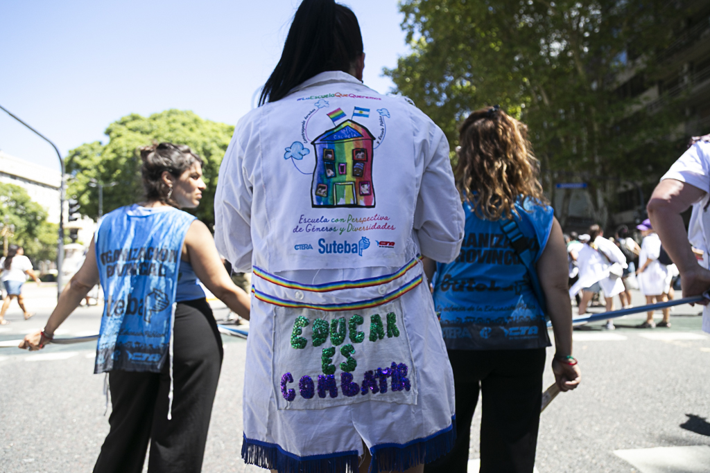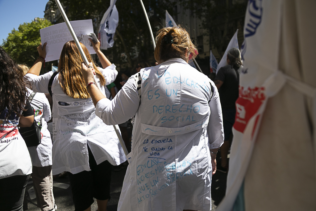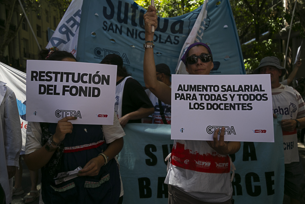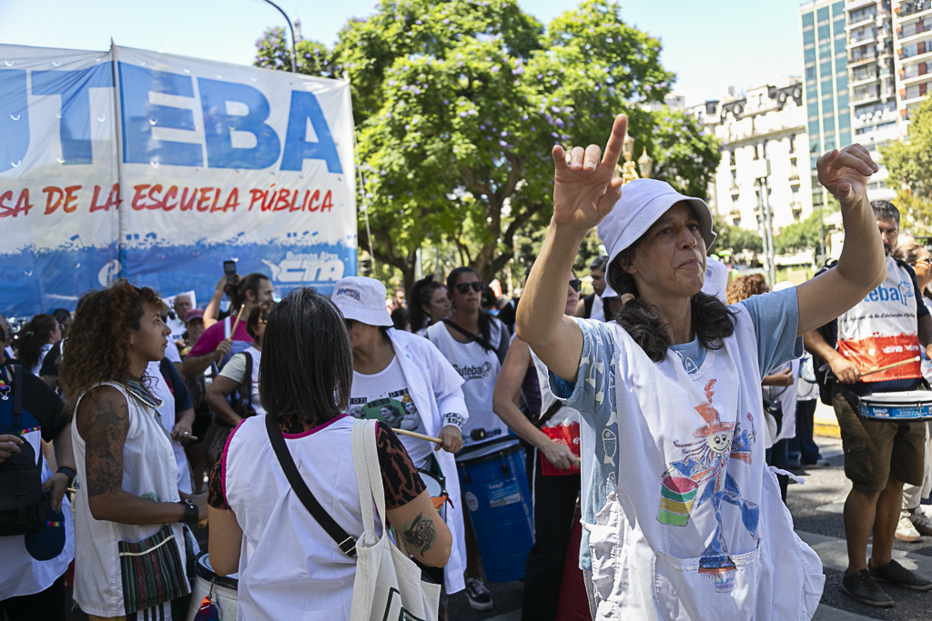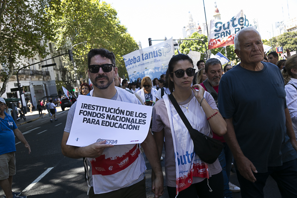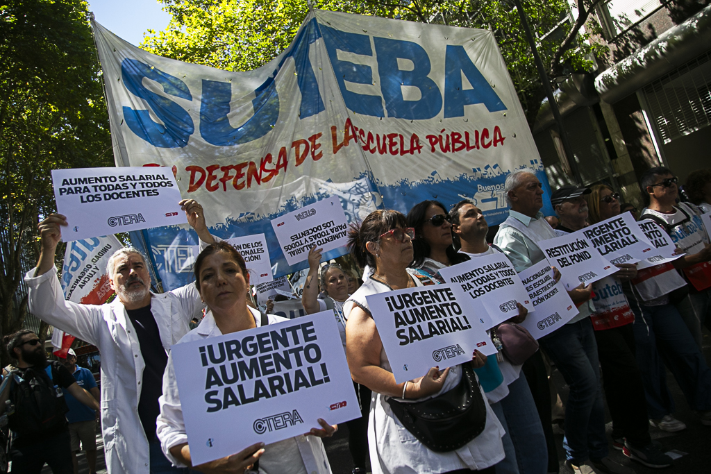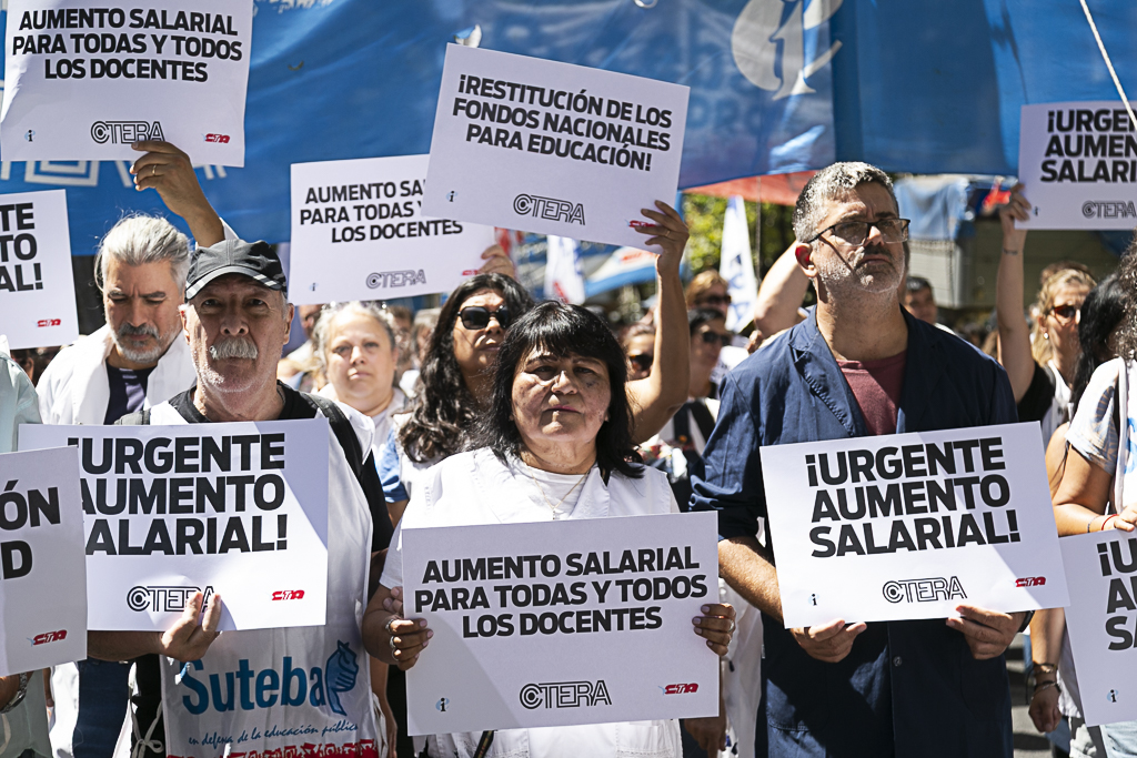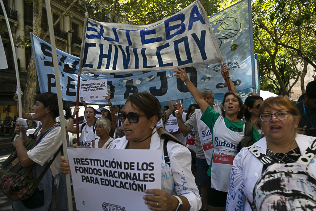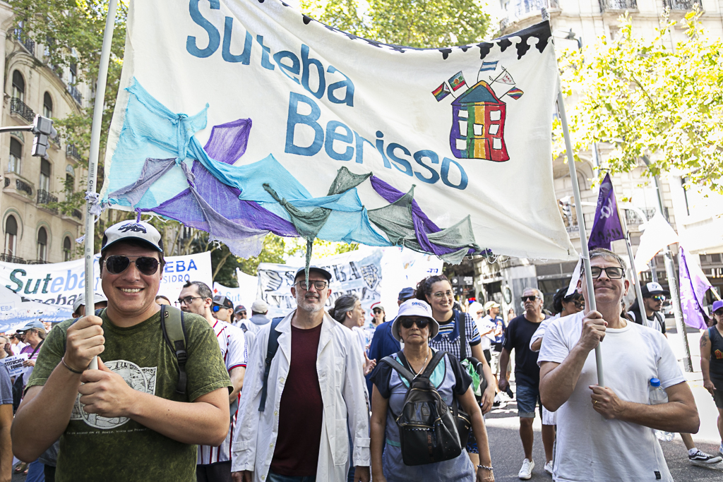 En el marco del paro nacional convocado por la CTERA, que contó con un altísimo acatamiento en todo el país, el SUTEBA fue protagonista de la multitudinaria marcha desde el Cabildo hasta el Congreso, junto a delegaciones de Sindicatos de base de CTERA, AMET y SADOP.