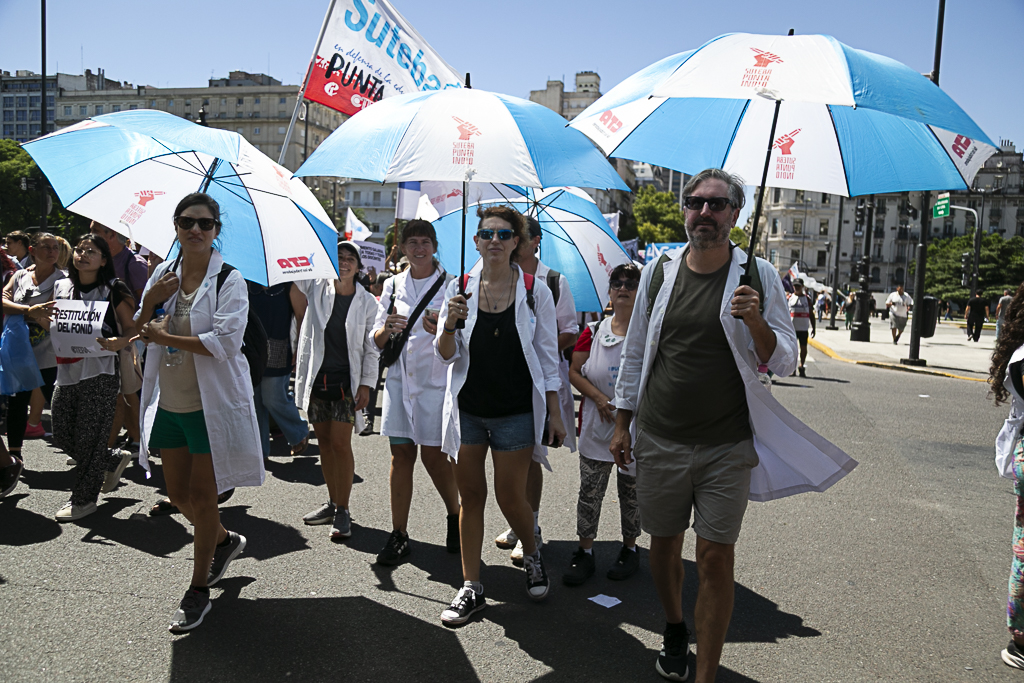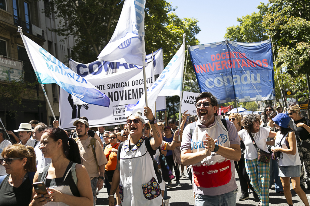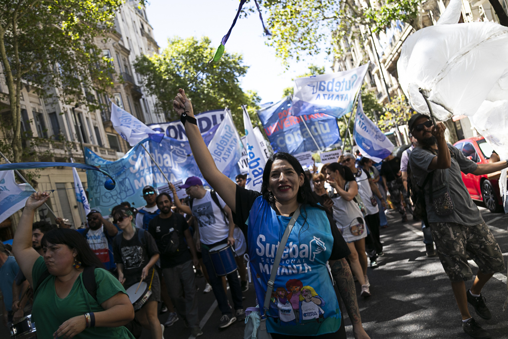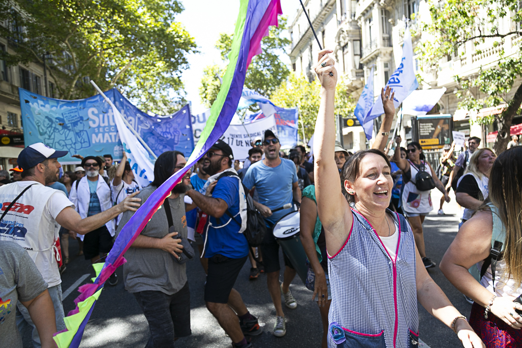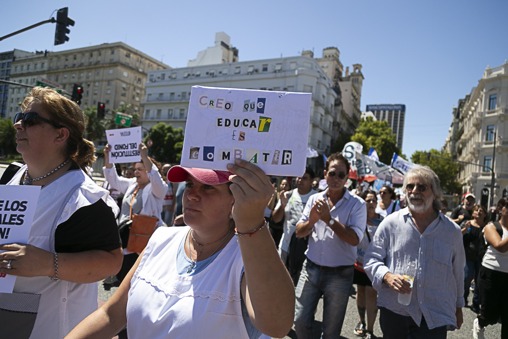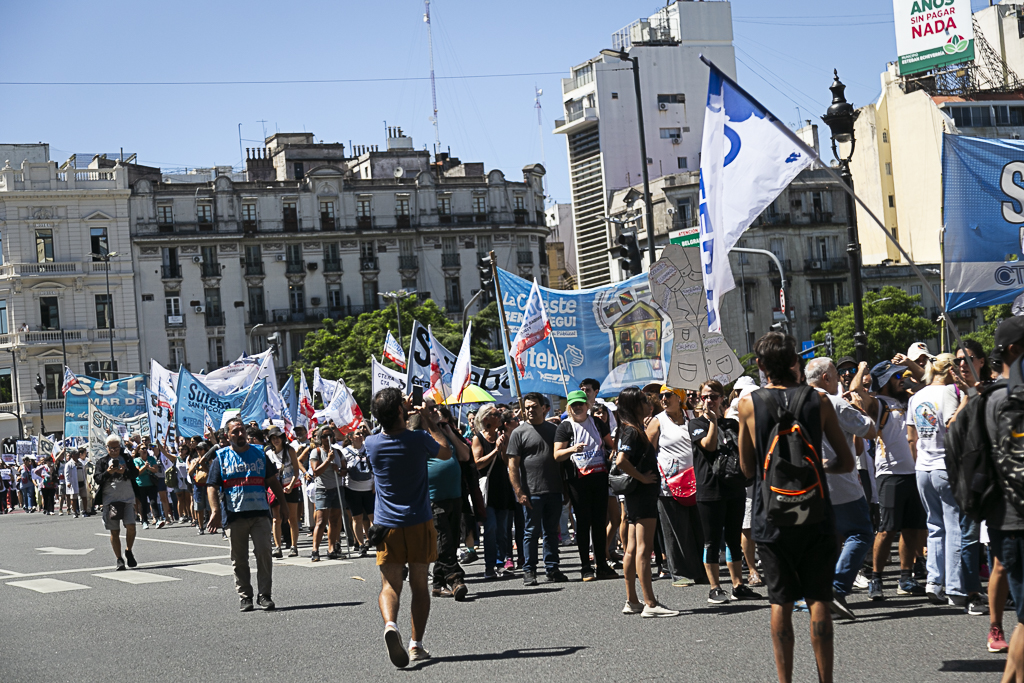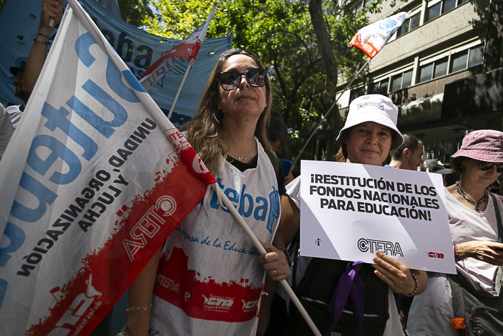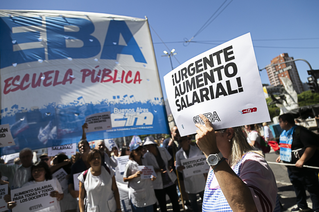 En el marco del paro nacional convocado por la CTERA, que contó con un altísimo acatamiento en todo el país, el SUTEBA fue protagonista de la multitudinaria marcha desde el Cabildo hasta el Congreso, junto a delegaciones de Sindicatos de base de CTERA, AMET y SADOP.