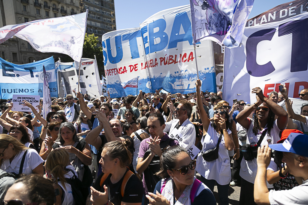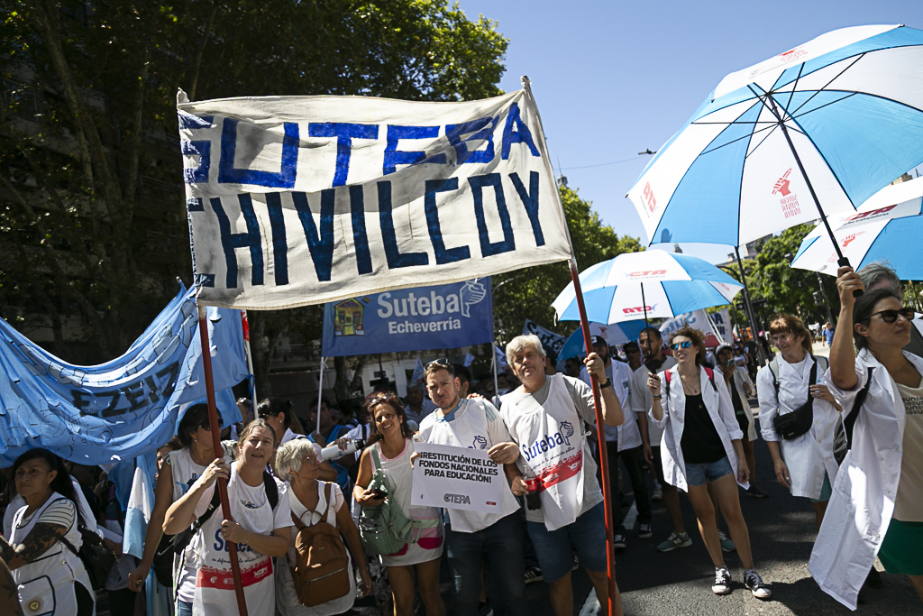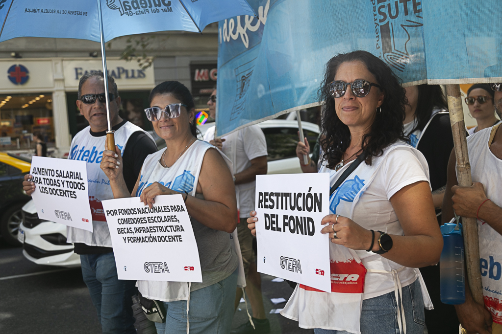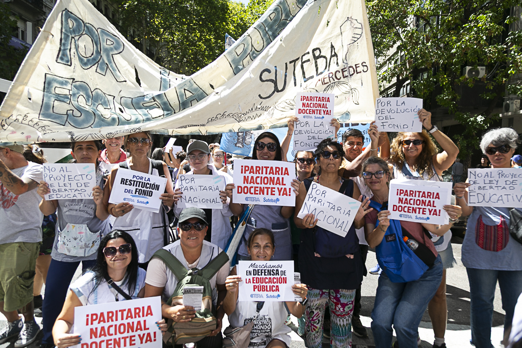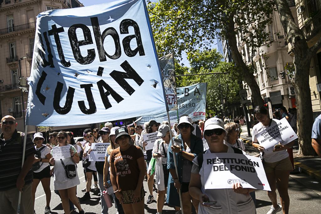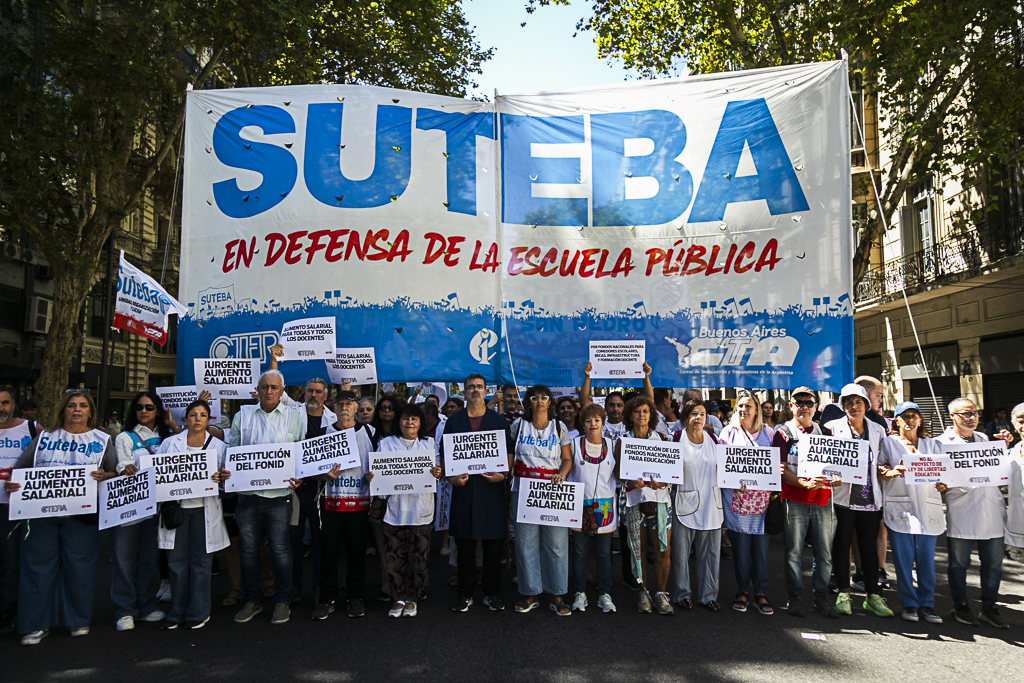 Miles de Trabajadorxs de la Educación provenientes de numerosos distritos de la Provincia nutrieron la compacta columna del SUTEBA, movilizándose para expresar con firmeza el rechazo al ajuste del Gobierno Nacional y exigir una Paritaria Nacional Docente que respete los derechos de lxs Trabajadorxs de la Educación, la restitución del FONID y mayor Presupuesto Educativo. Asimismo, la medida de acción gremial incluyó el reclamo salarial.