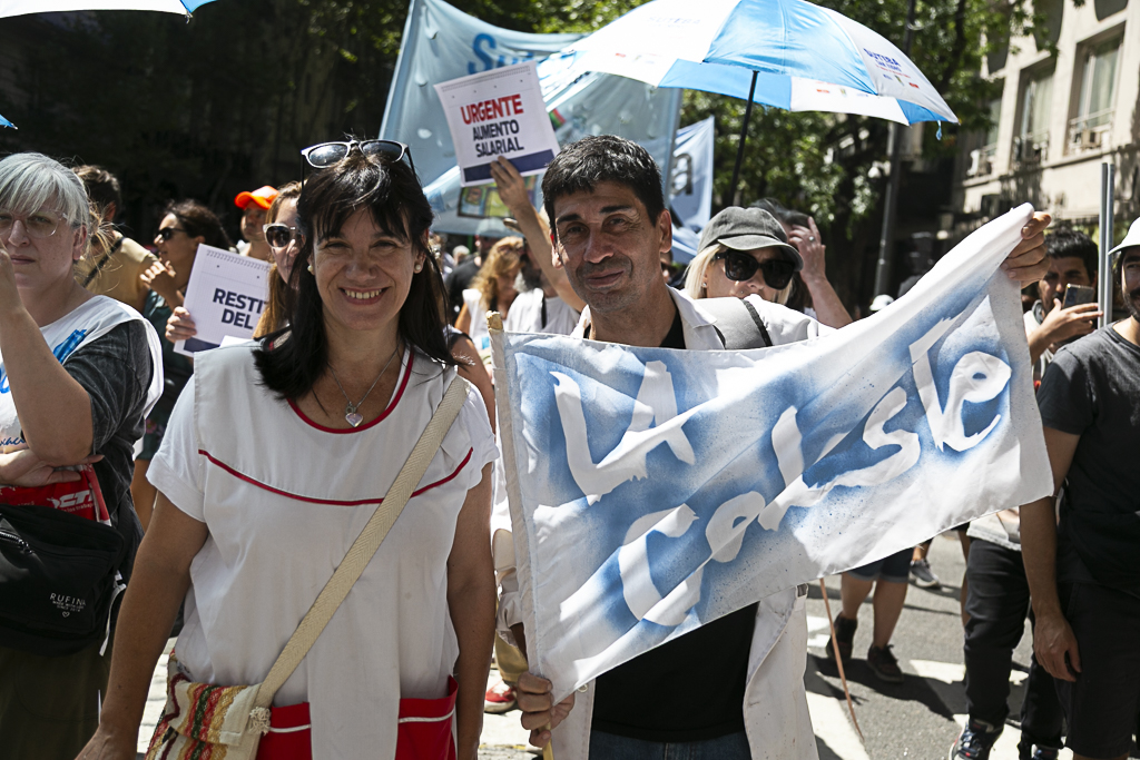 Durante el recorrido de la marcha conversamos con las Secretarias General Adjuntas, María Laura Torre y Silvia Almazán.