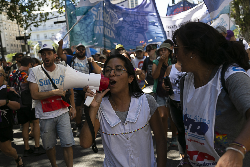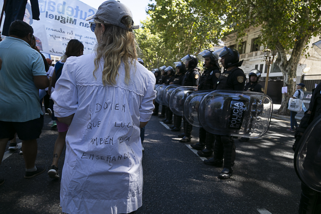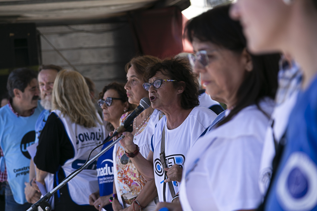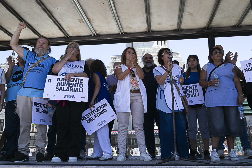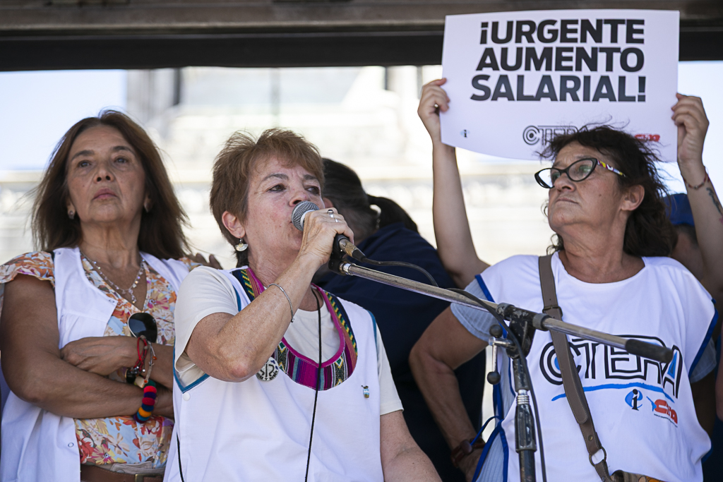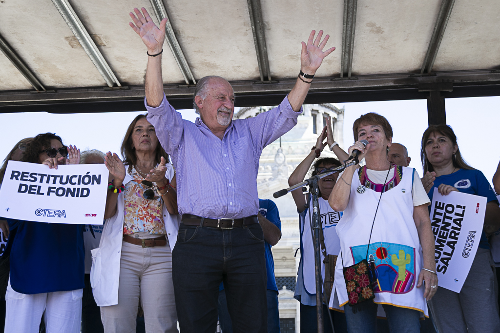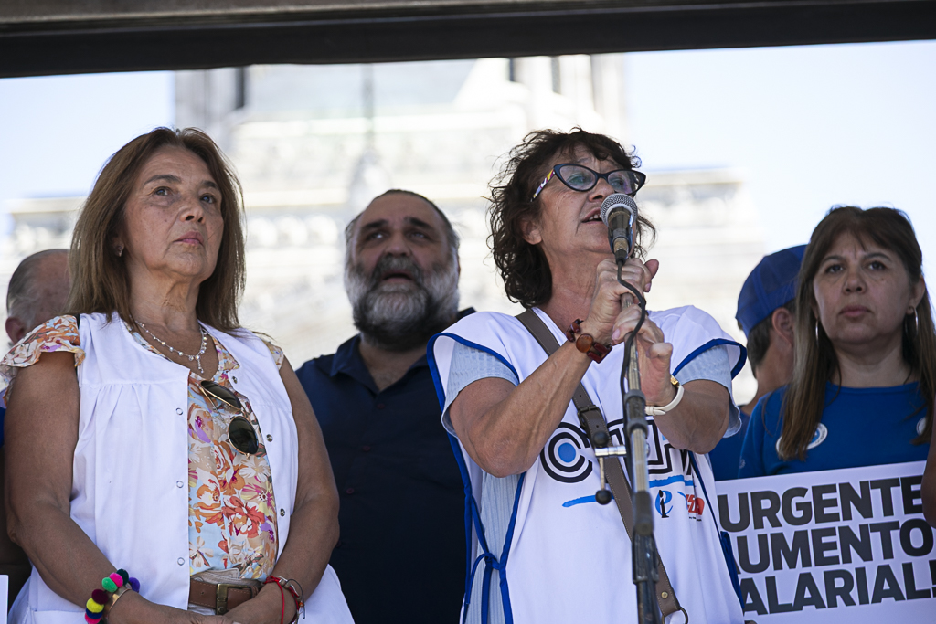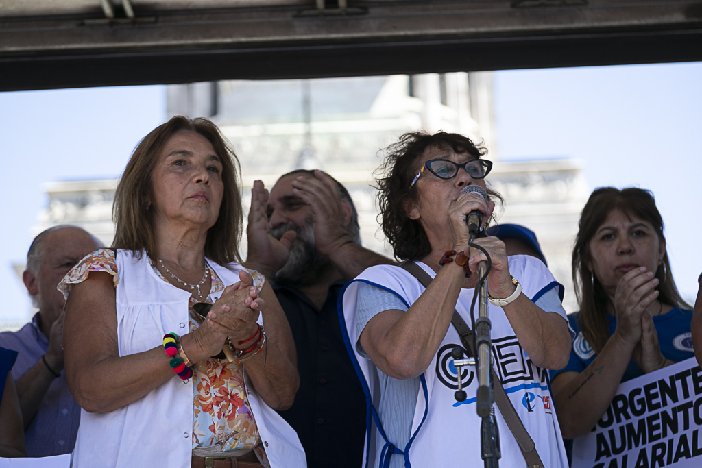 La jornada de lucha finalizó con un acto en un escenario montado frente al Congreso. Allí, la Secretaria General de la CTERA, Sonia Alesso, señaló: