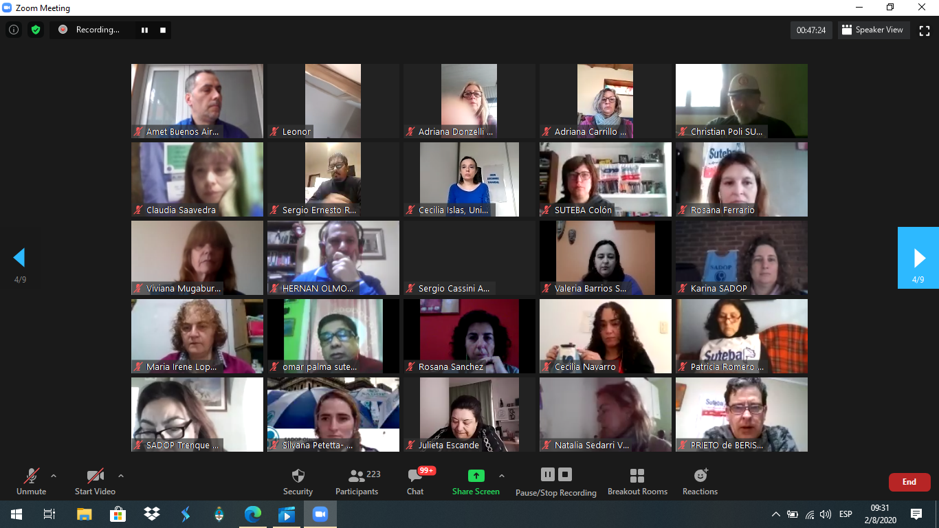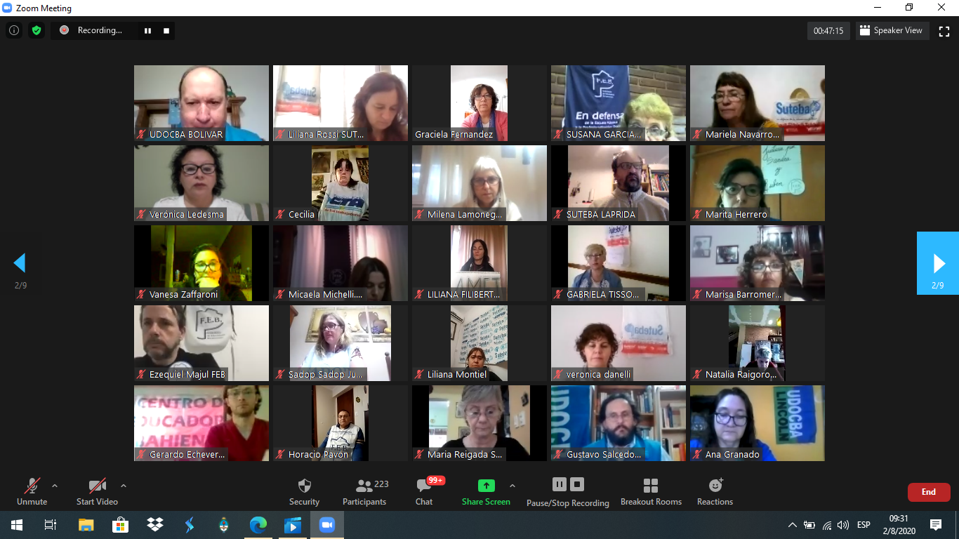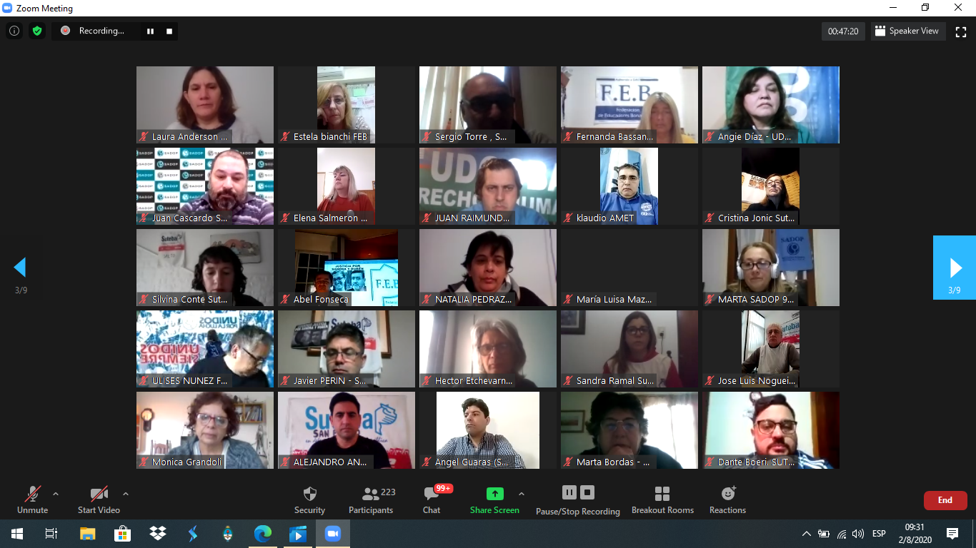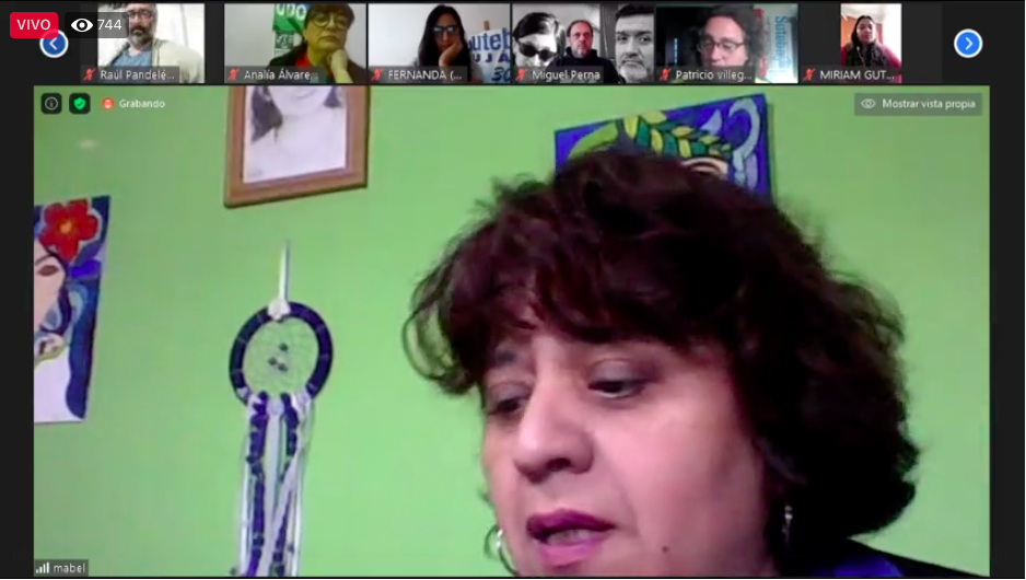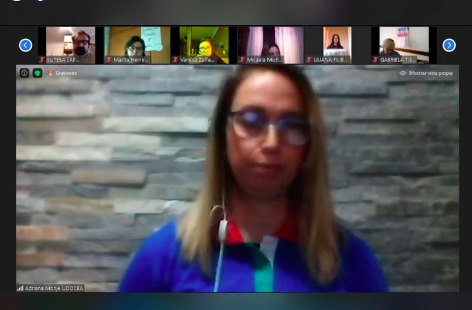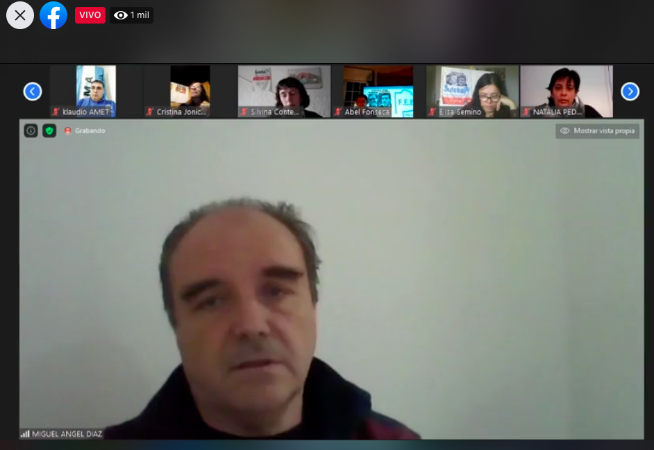 "Con gran emoción iniciamos este acto en homenaje a nuestrxs queridxs compañerxs Sandra y Rubén", expresó la Secretaria de Comunicaciones del SUTEBA, Elisa Semino, quien luego presentó a lxs participantes del encuentro virtual.