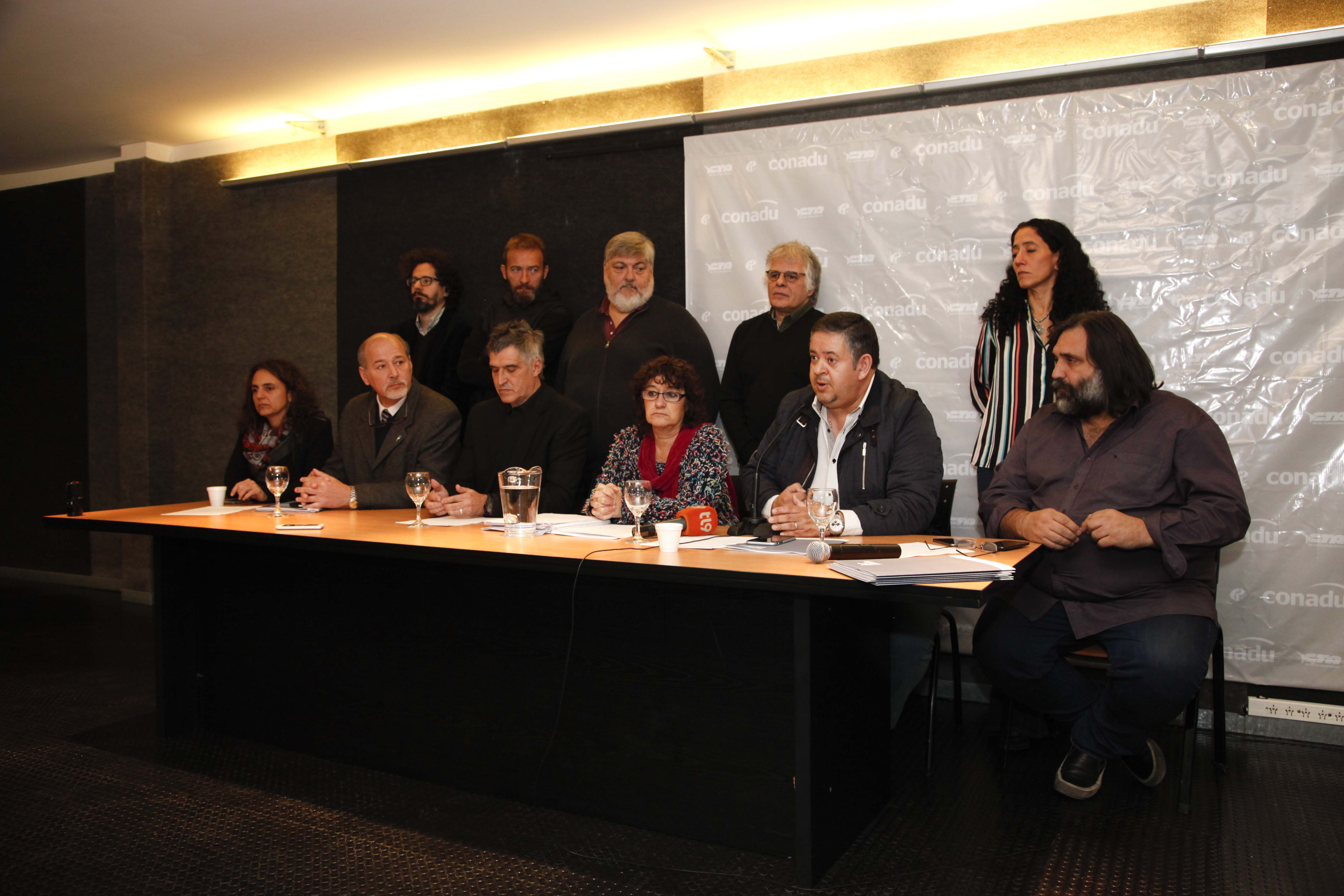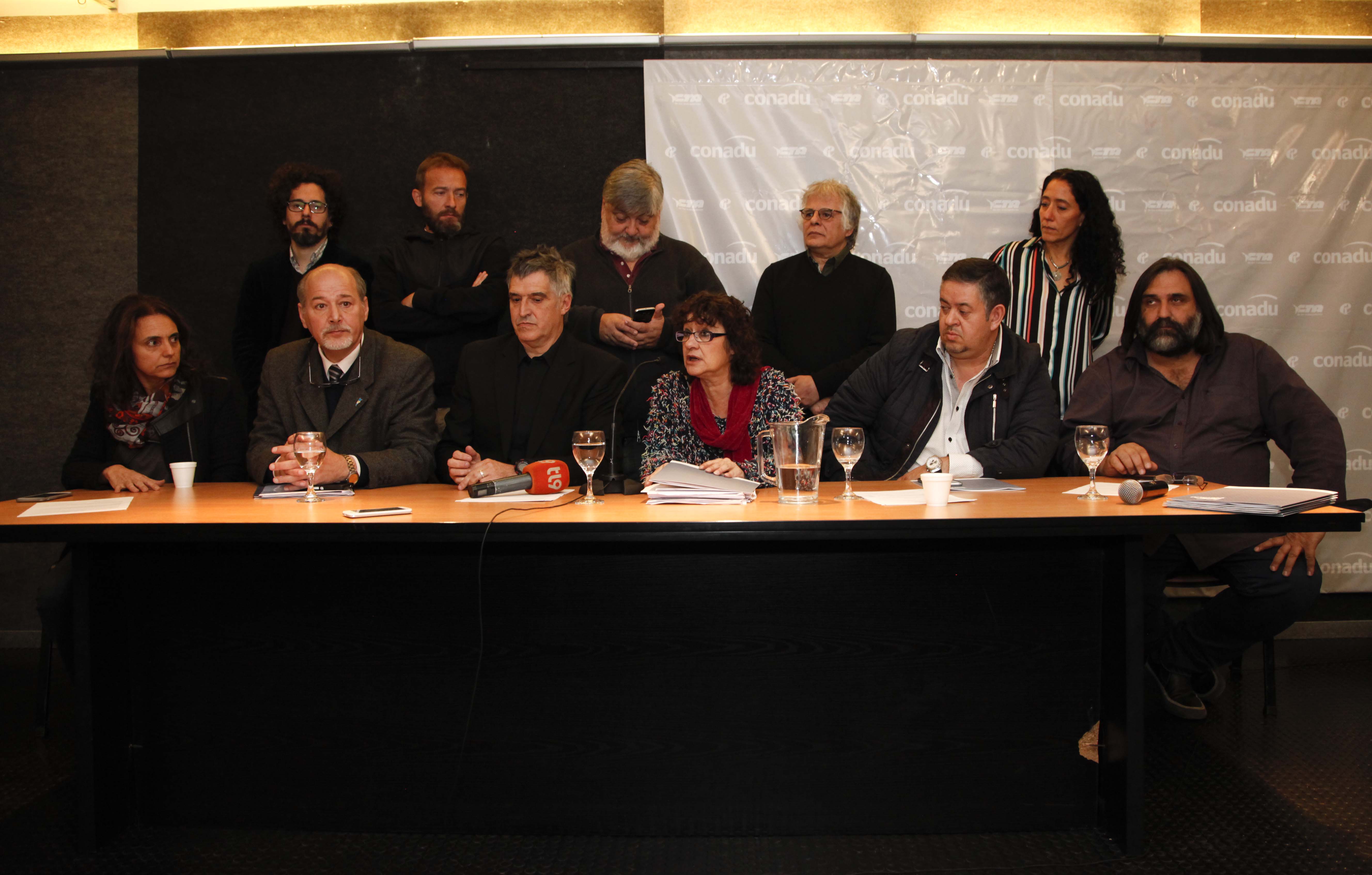 Dirigentes de la Federación Nacional de Docentes Universitarios (CONADU), de la Confederación de Trabajadores de la Educación de la República Argentina (CTERA), de la Confederación de Educadores Argentinos (CEA) y del Sindicato Argentino de Docentes Particulares (SADOP) brindaron hoy en conferencia de prensa detalles de las acciones convocadas para el paro nacional educativo del 24 de agosto.