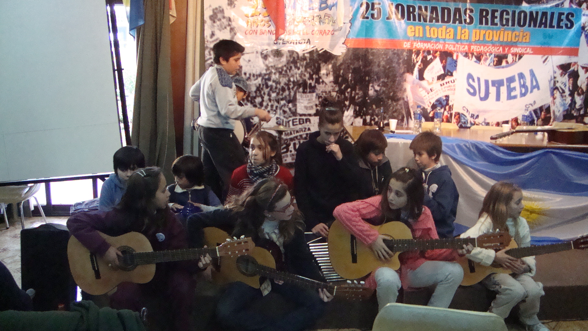 La apertura del encuentro final de las jornadas Aniversario del sindicato estuvo a cargo del estudiante de secundaria, Jonathan Velásquez, quien cantó un tema folclórico con letra propia cuyo estribillo dice: "No quiero más inconscientes, no quiero más torturados, quiero la Patria libre de hombres mal enseñados".