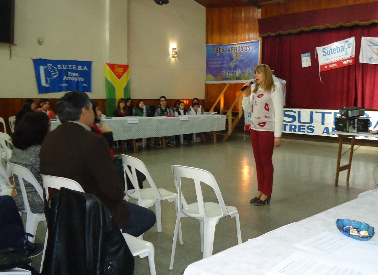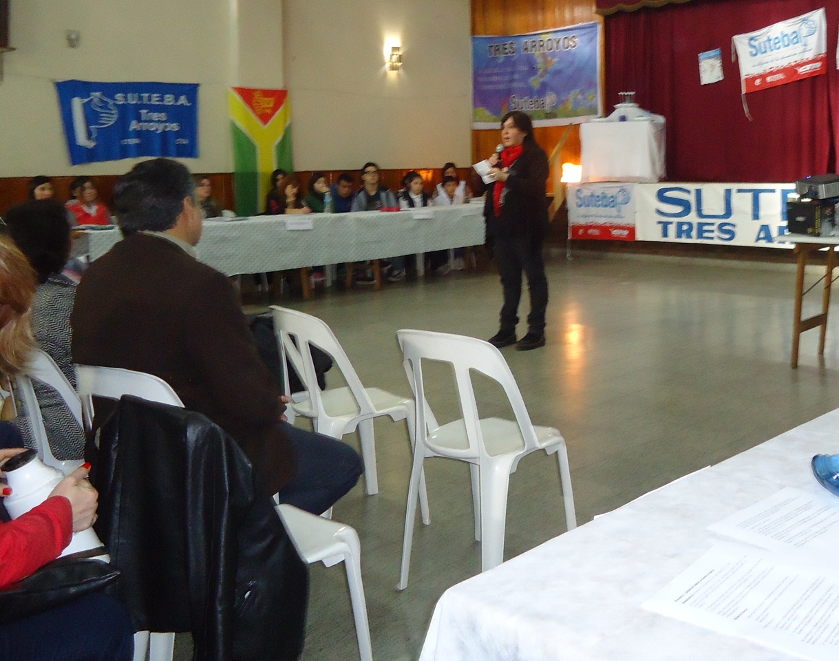 Luego, tuvo lugar el panel en el que los principales oradores fueron Cristina Echegoyen, Responsable del Área de Género y ESI de la Secretaría de DDHH del SUTEBA y del Consejo Ejecutivo Provincial, y el Inspector Distrital, quien está afiliado al SUTEBA.