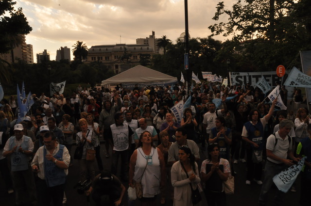 Allí, Roberto Baradel expresó: “La pelea que estamos dando es por la escuela pública. Necesitamos la creación de más escuelas secundarias, que arreglen las escuelas existentes, que pongan plata para infraestructura, y que nombren 20.000 cargos docentes para cubrir los equipos de orientación escolar, los bibliotecarios, los preceptores, los profesores de educación física, de educación artística, los jardines de infantes, las maestras integradoras, los maestros de escuelas técnicas, todos los cargos que sean necesarios para tener una escuela de calidad”.