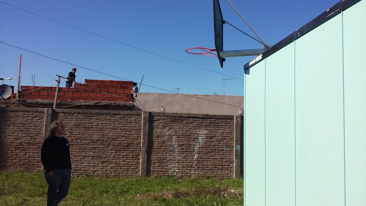 El Profesor Diego Caresani, sostuvo: "Lo que se comprometió a hacer el Municipio con el Fondo de Financiamiento está hecho: los revoques, la cubierta con la estructura metálica y la pintura. Falta el trabajo de la Provincia, que debía finalizar con el resto de las instalaciones y los cielorrasos".