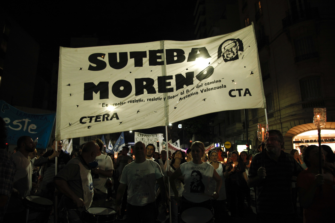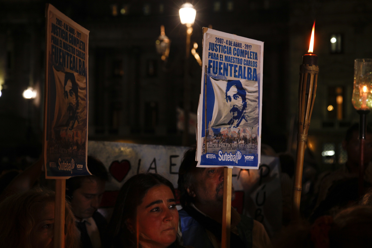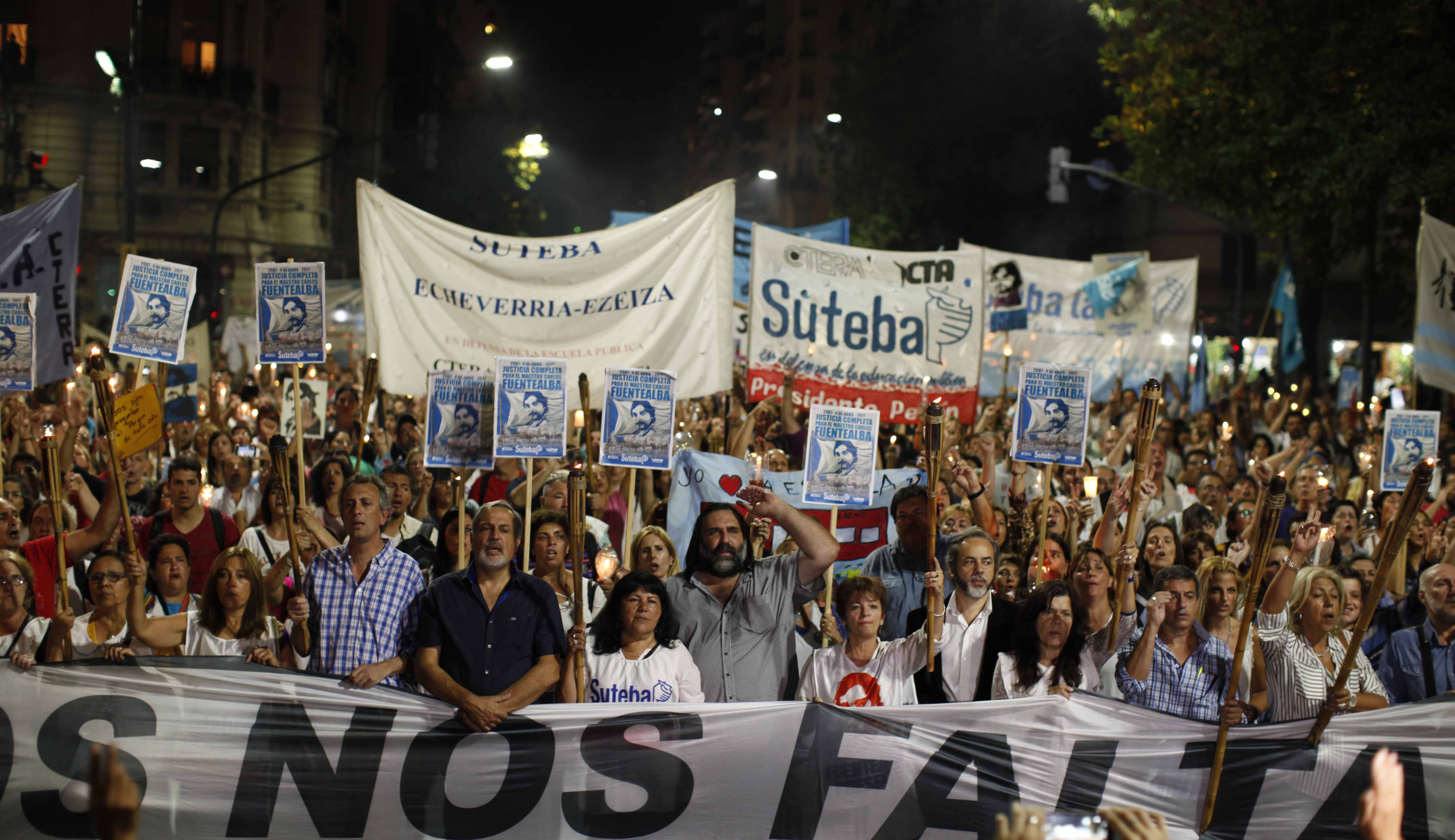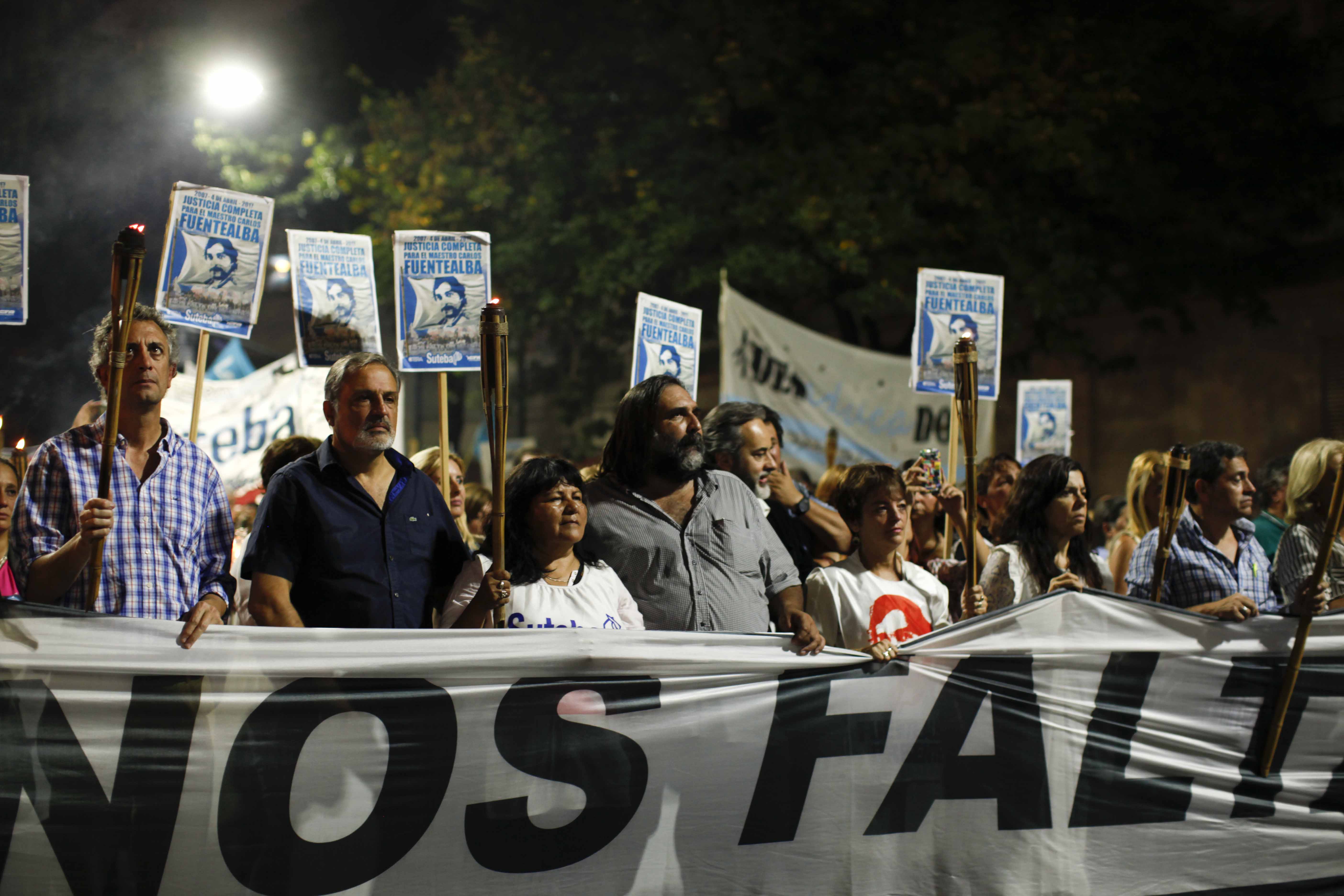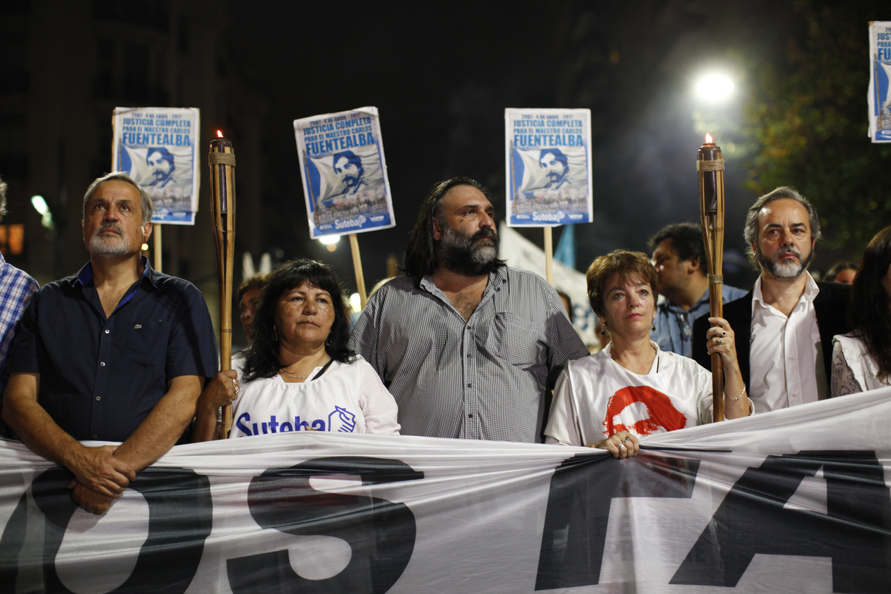 Por su parte, María Laura Torre, Secretaria Gremial del SUTEBA, sostuvo: "En cada antorcha uno ve la cara de Carlos, pero también la cara de sus hijas, ve la cara de su mujer Sandra y la cara de cada Maestro. Hoy la consigna es más fuerte que nunca, nos falta un Maestro, nos falta Carlos Fuentealba, nos falta justicia. Estamos reclamando en el marco de la CTERA por la justicia que repara, no resuelve, pero repara y la necesitamos por su familia y para todos los docentes de la República Argentina".