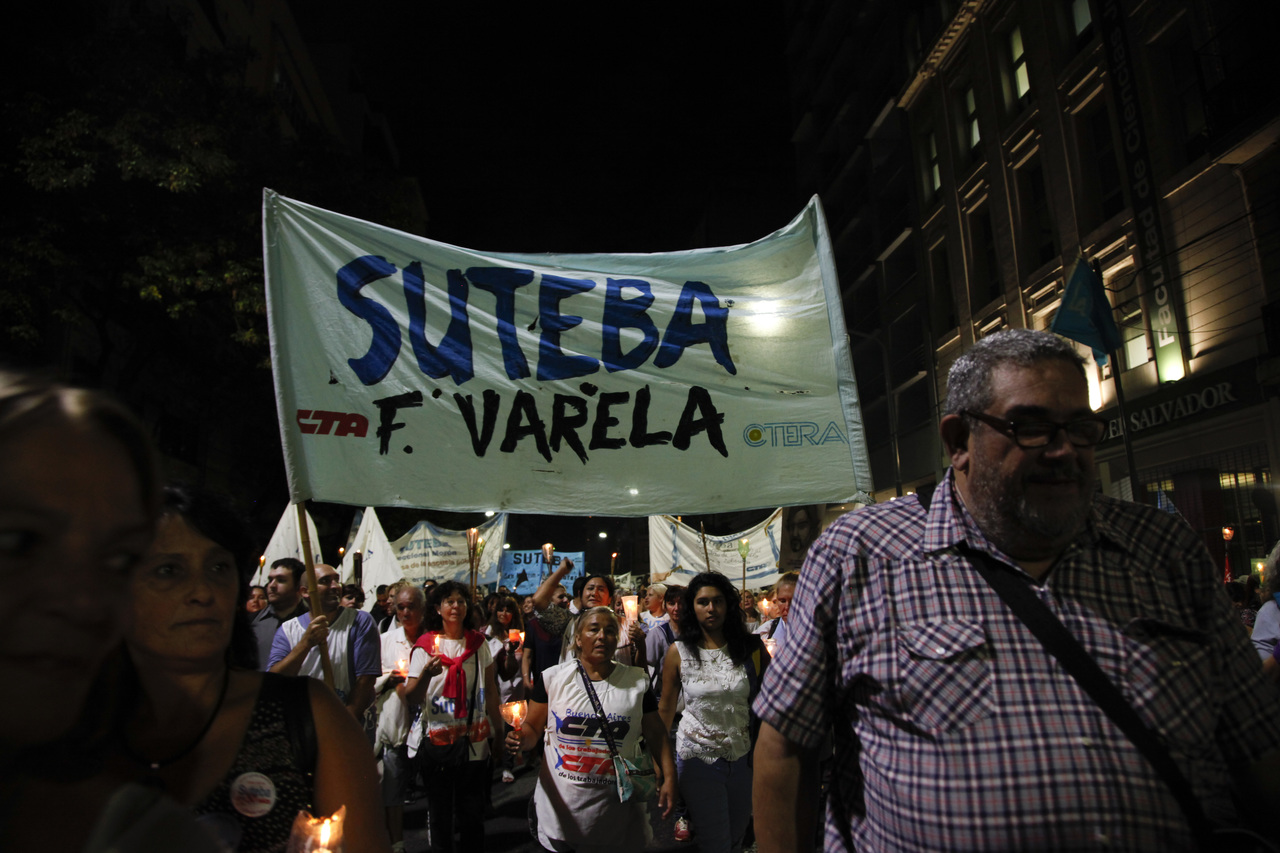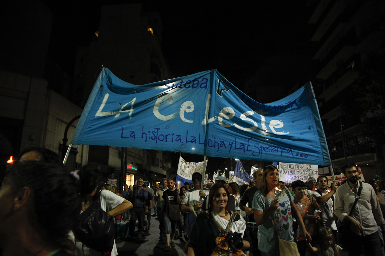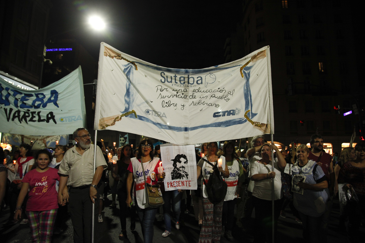 Un mar de fueguitos movilizados, encendidos por el enorme fuego de Carlos Fuentealba que nunca se va a apagar, el fuego de la Escuela Pública, se movilizaron de la Plaza de los Dos Congresos al Palacio Pizzurno para exigir Justicia Completa por el Maestro neuquino.