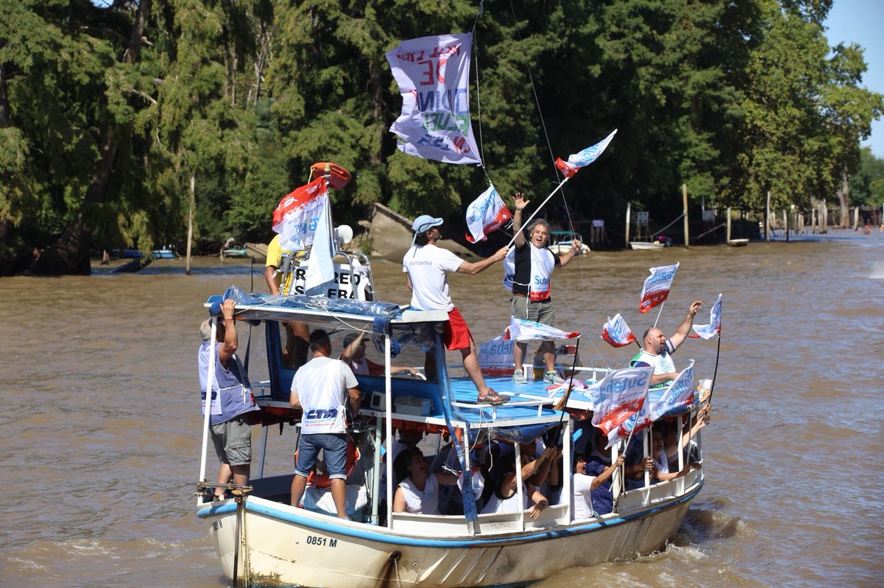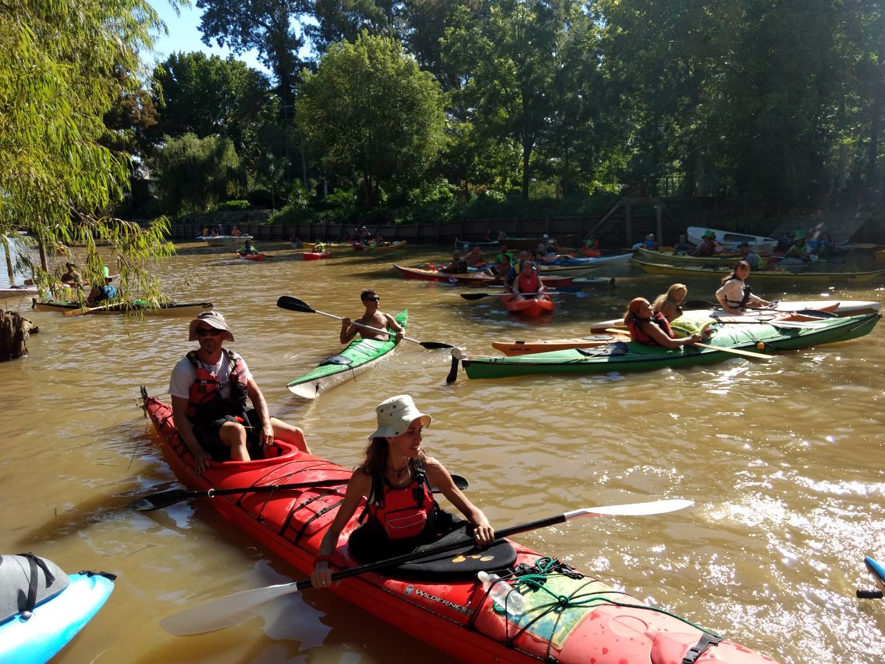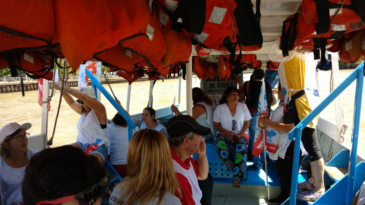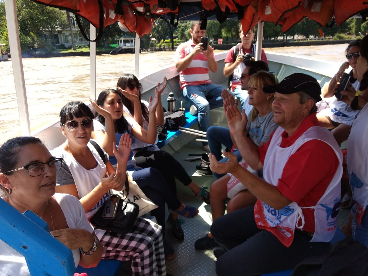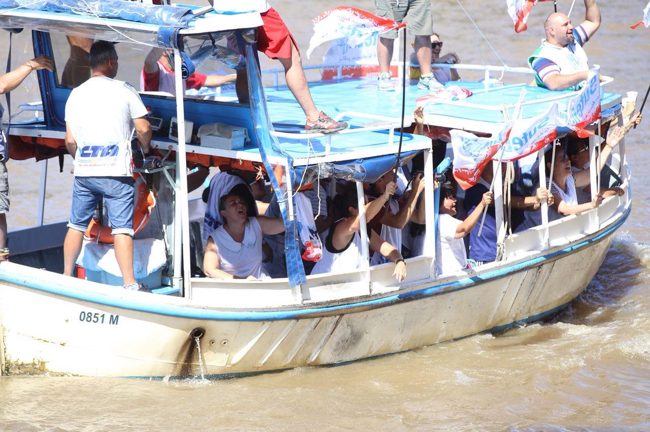La travesía náutica contó con diversas rutas que organizaron lxs kayakistas: Una partió desde la escuela del arroyo Paycarabí, otra desde el canal Villanueva y la última salió de la bajada pública frente al Club Hispano. Desde SUTEBA estuvimos navegando con una lancha por el río Luján junto a Maestrxs, dirigentes y la comunidad de la escuela, recibiendo el apoyo de las embarcaciones y de los muelles, mientras que nos manifestábamos con banderas y cánticos acompañando a lxs kayakistas que llegaron por la tarde al Recreo del Tigre.