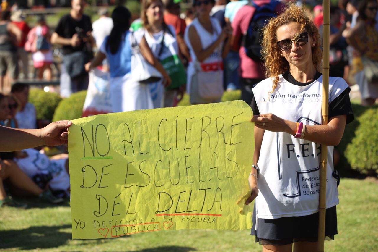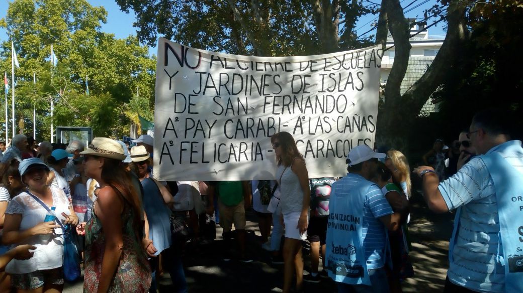 Por su parte, Roberto Baradel, Secretario General del SUTEBA, afirmó: "Hay que ser muy insensible para no solidarizarse con esta causa cuando luchamos para que no cierren escuelas. Le decimos a la Gobernadora Vidal no tiene derecho a despreciar la Escuela Pública, no sabe del compromiso que tienen los Docentes y del amor con el que trabajan. Que mire a los ojos a los chicos, a sus papás y sus maestros, cuando uno toma una mala decisión y reconoce su error, también es un buen gobernante. No puede cerrar las Escuelas de Isla y no lo vamos a permitir, la Educación no es un gasto, es un derecho social y tiene que haber una escuela para cada niño que lo necesite".