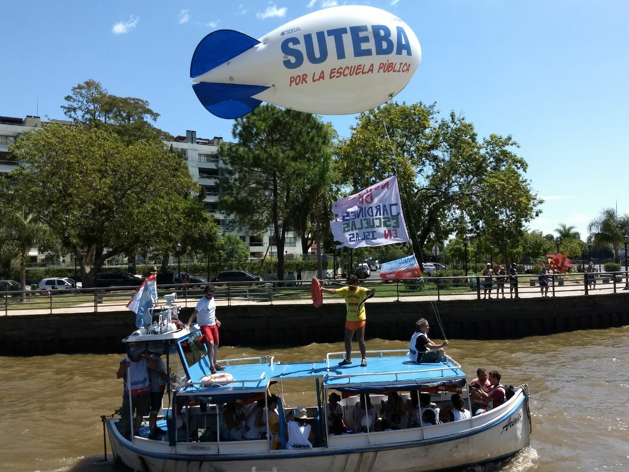 El sábado 3, con el SUTEBA participamos de una histórica travesía por el Delta para exigirle al Gobierno Provincial que no cierre ninguna Escuela de Isla. Fue una manifestación que inició en diversos puntos del Delta con participantes que se movilizaron por agua con kayaks y lanchas, dando un marco espectacular a este evento, a quienes se les sumó la comunidad que marchó por tierra. El reclamo fue una clara demostración de la sociedad en repudio al cierre de escuelas decretado de manera irresponsable por el Gobierno Provincial.
