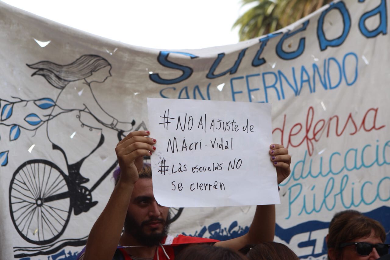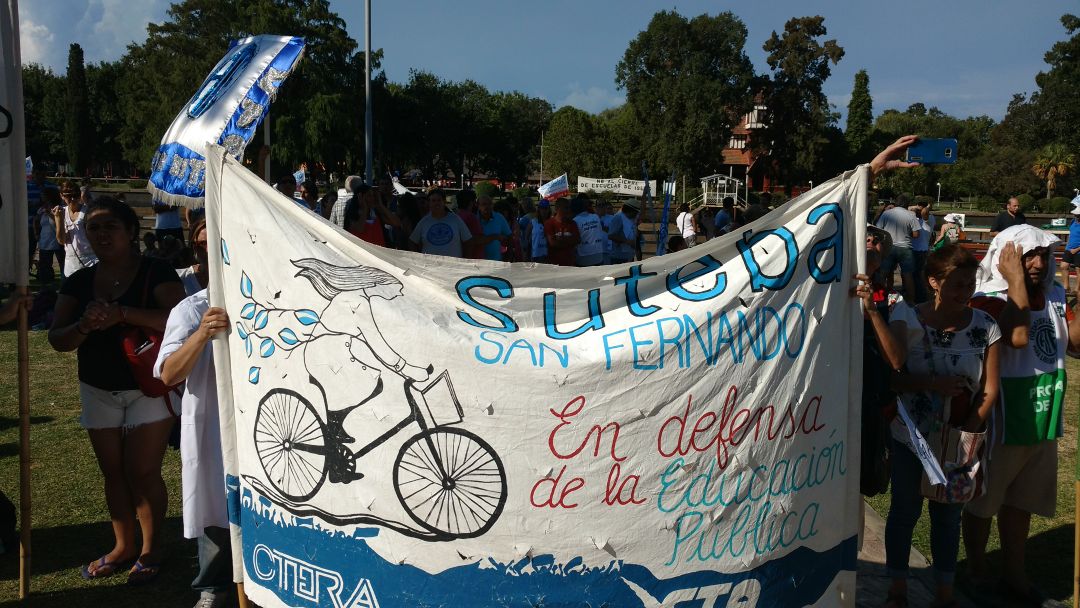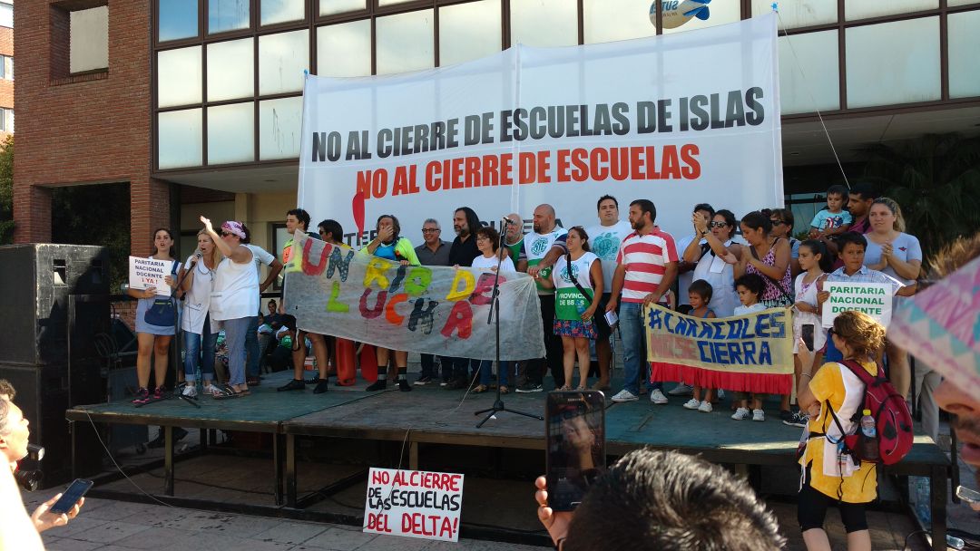 Por su parte, Roberto Baradel, Secretario General del SUTEBA, afirmó: "Hay que ser muy insensible para no solidarizarse con esta causa cuando luchamos para que no cierren escuelas. Le decimos a la Gobernadora Vidal no tiene derecho a despreciar la Escuela Pública, no sabe del compromiso que tienen los Docentes y del amor con el que trabajan. Que mire a los ojos a los chicos, a sus papás y sus maestros, cuando uno toma una mala decisión y reconoce su error, también es un buen gobernante. No puede cerrar las Escuelas de Isla y no lo vamos a permitir, la Educación no es un gasto, es un derecho social y tiene que haber una escuela para cada niño que lo necesite".