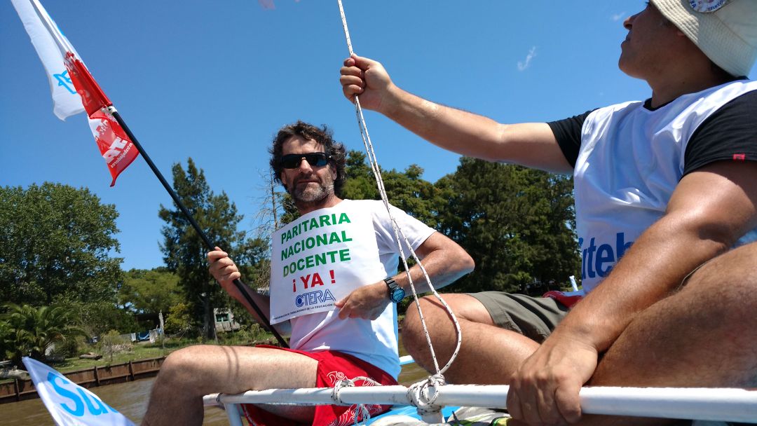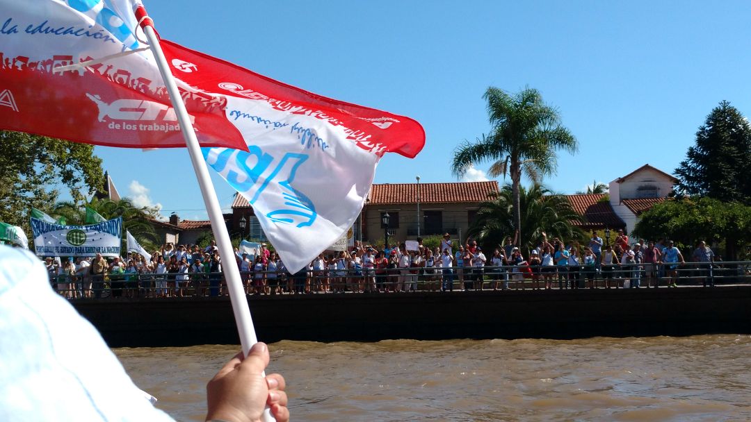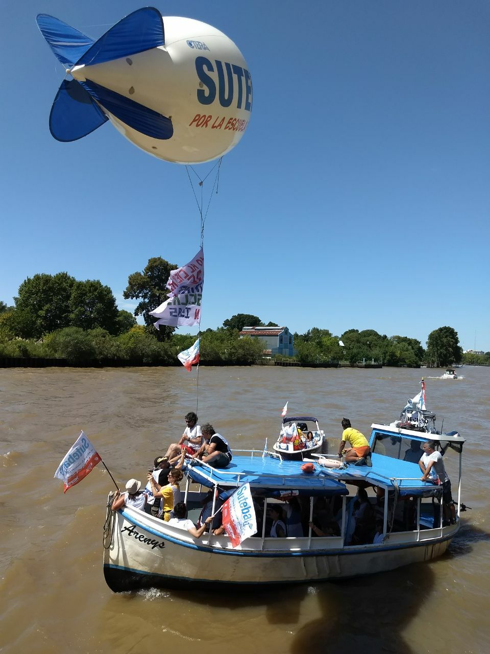 El sábado 3, con el SUTEBA participamos de una histórica travesía por el Delta para exigirle al Gobierno Provincial que no cierre ninguna Escuela de Isla. Fue una manifestación que inició en diversos puntos del Delta con participantes que se movilizaron por agua con kayaks y lanchas, dando un marco espectacular a este evento, a quienes se les sumó la comunidad que marchó por tierra. El reclamo fue una clara demostración de la sociedad en repudio al cierre de escuelas decretado de manera irresponsable por el Gobierno Provincial.