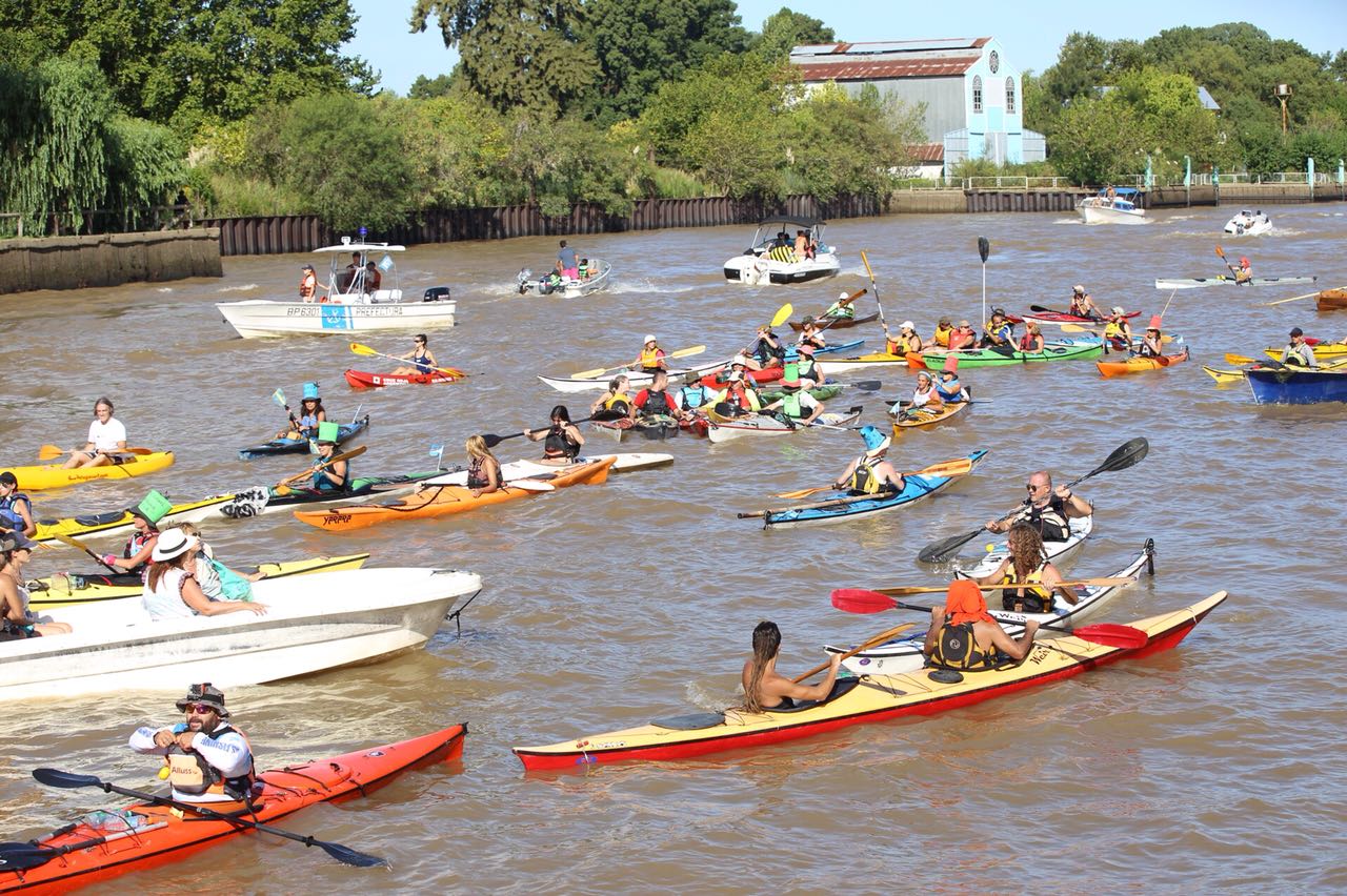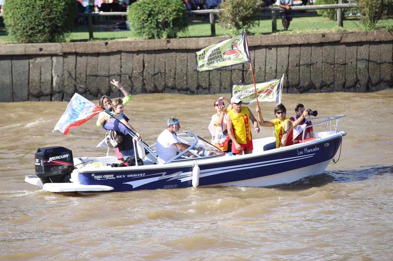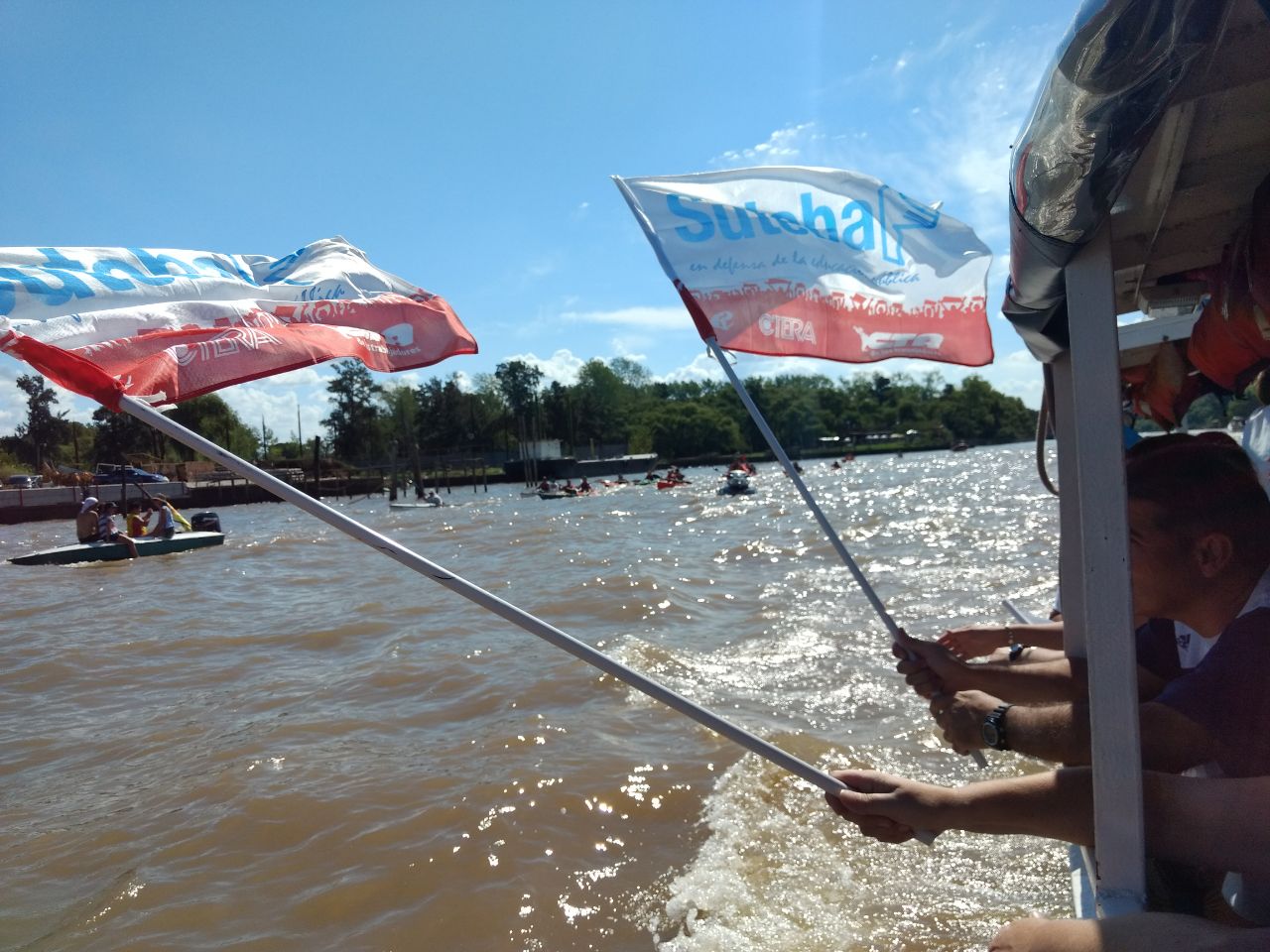 La travesía náutica contó con diversas rutas que organizaron lxs kayakistas: Una partió desde la escuela del arroyo Paycarabí, otra desde el canal Villanueva y la última salió de la bajada pública frente al Club Hispano. Desde SUTEBA estuvimos navegando con una lancha por el río Luján junto a Maestrxs, dirigentes y la comunidad de la escuela, recibiendo el apoyo de las embarcaciones y de los muelles, mientras que nos manifestábamos con banderas y cánticos acompañando a lxs kayakistas que llegaron por la tarde al Recreo del Tigre.