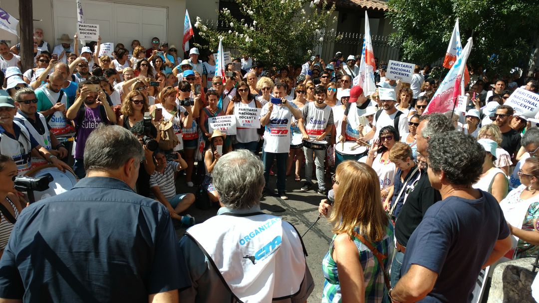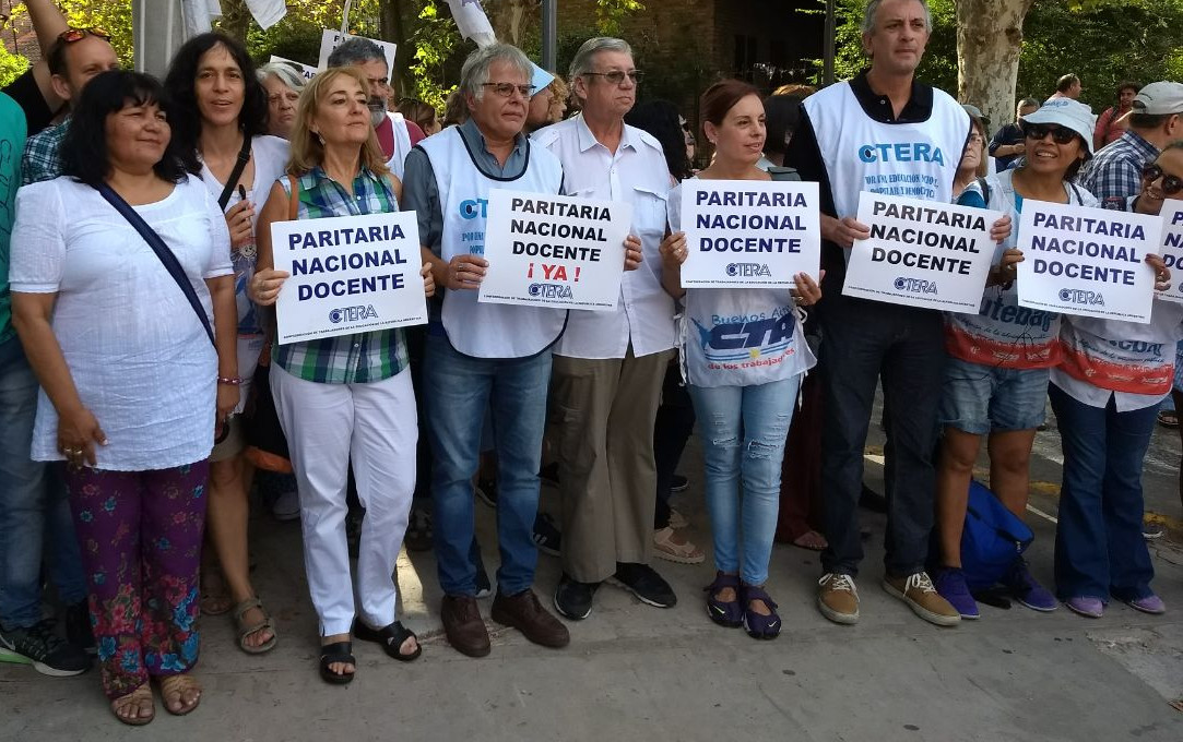 Luego que lxs Docentes con total respeto se apostaran frente a las puertas con carteles de "PARITARIA NACIONAL DOCENTE YA", la conducción de CTERA fue notificada de que Miguel Garófalo, Director Nacional de Negociaciones Colectivas, recibiría una comitiva, en la que participaron Eduardo Pereyra de SUTEBA, Guillermo Parodi de UTE, Noemí Tejeda de UTELPA, Luis Branchi de ADEF y Alejandro Demichelis, Director de Comunicaciones de CTERA, todos miembros de la Junta Ejecutiva de CTERA.