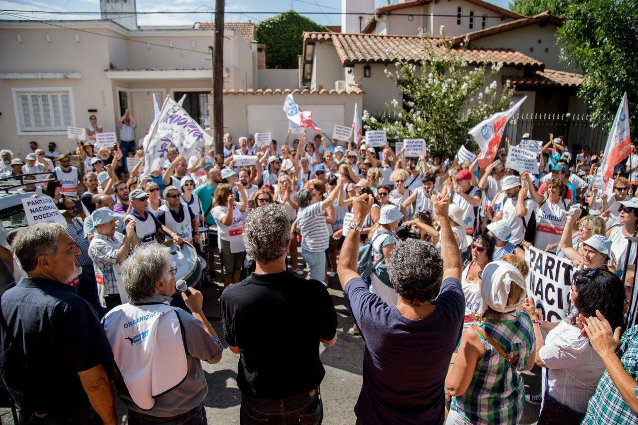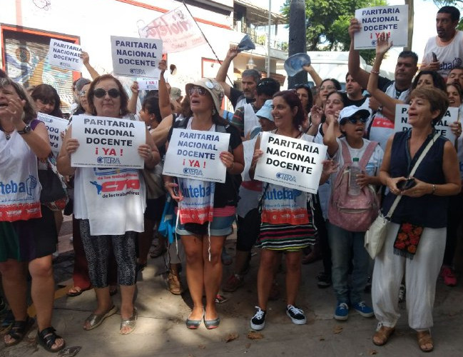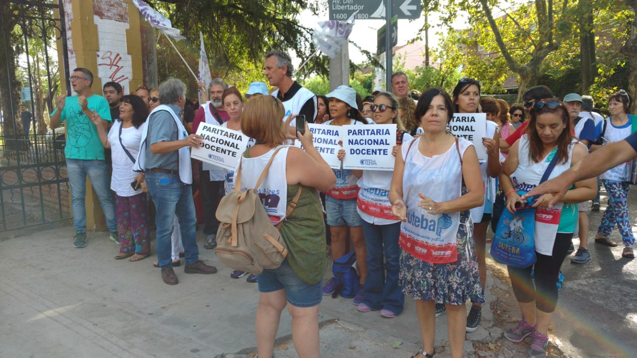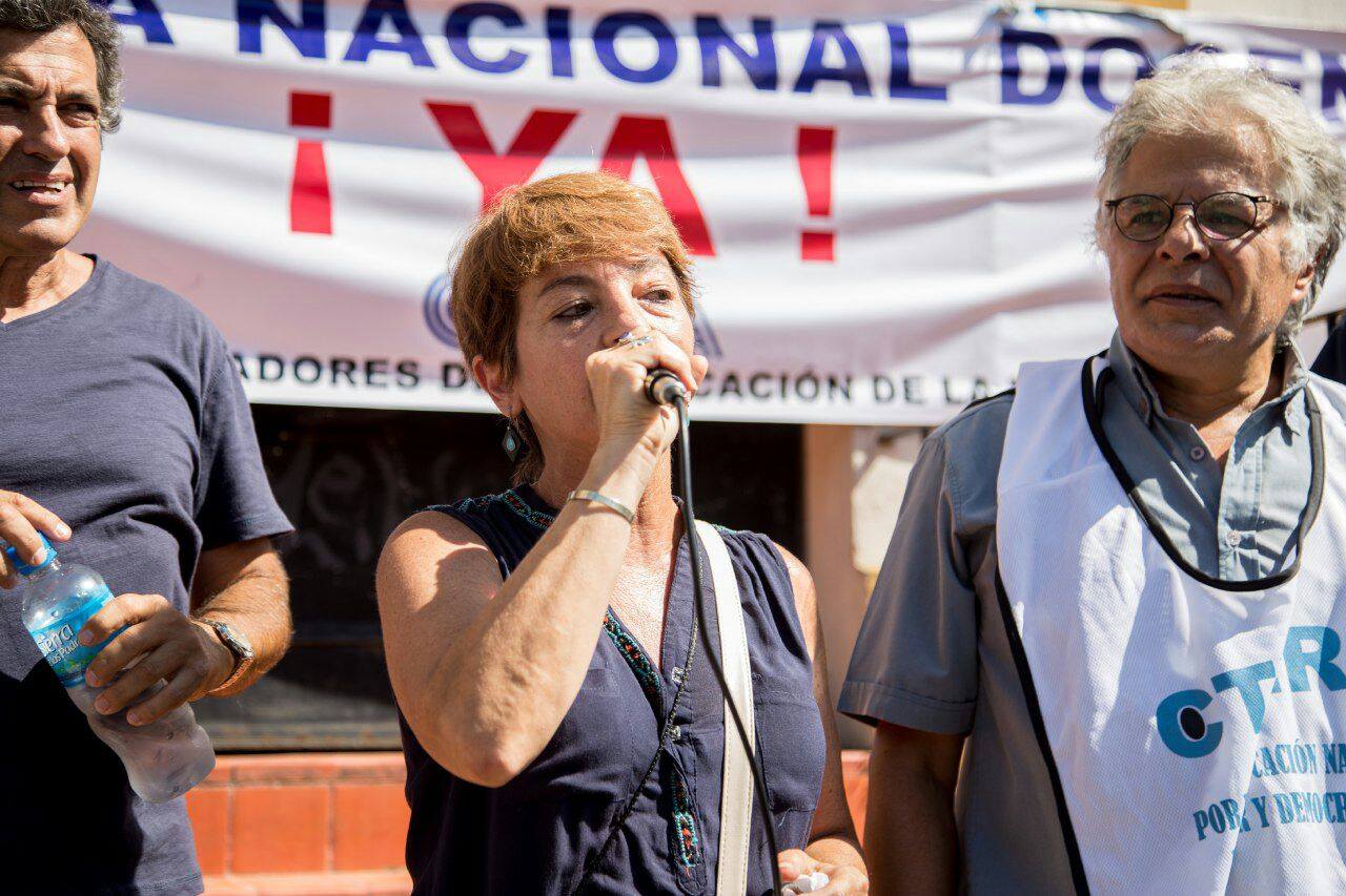 Por su parte, Silvia Almazán, Secretaria General Adjunta del SUTEBA, expresó: "Nos movilizamos para sostener la demanda por la Paritaria Nacional Docente y exigir que se deje sin efecto el Decreto que pretende eliminar una Ley. El Gobierno Nacional busca eludir la responsabilidad que tiene como garante de la Educación en todo el país".