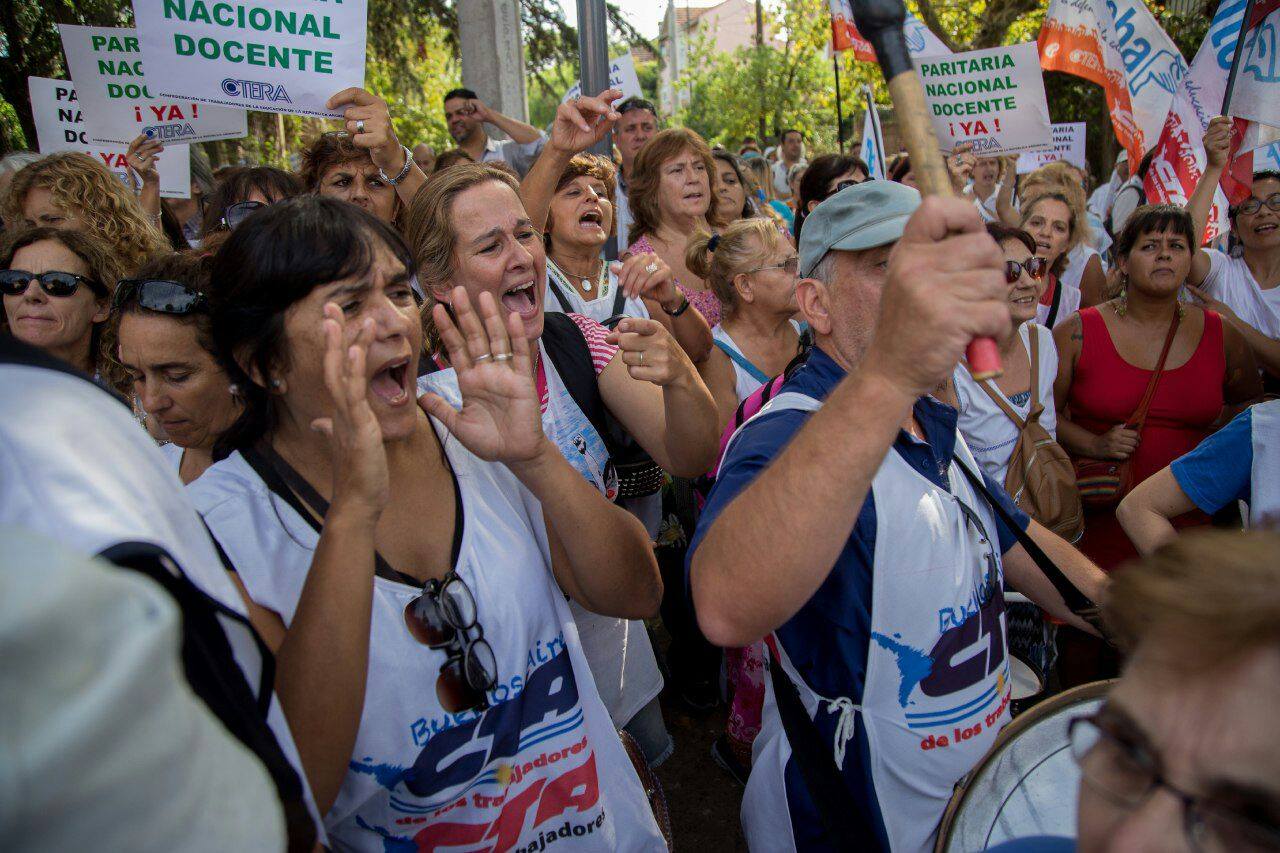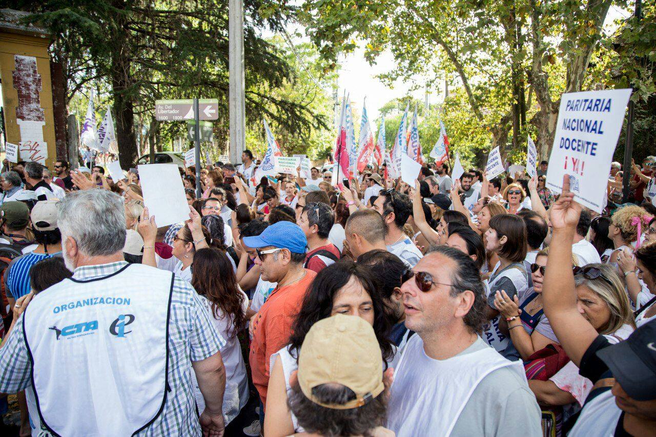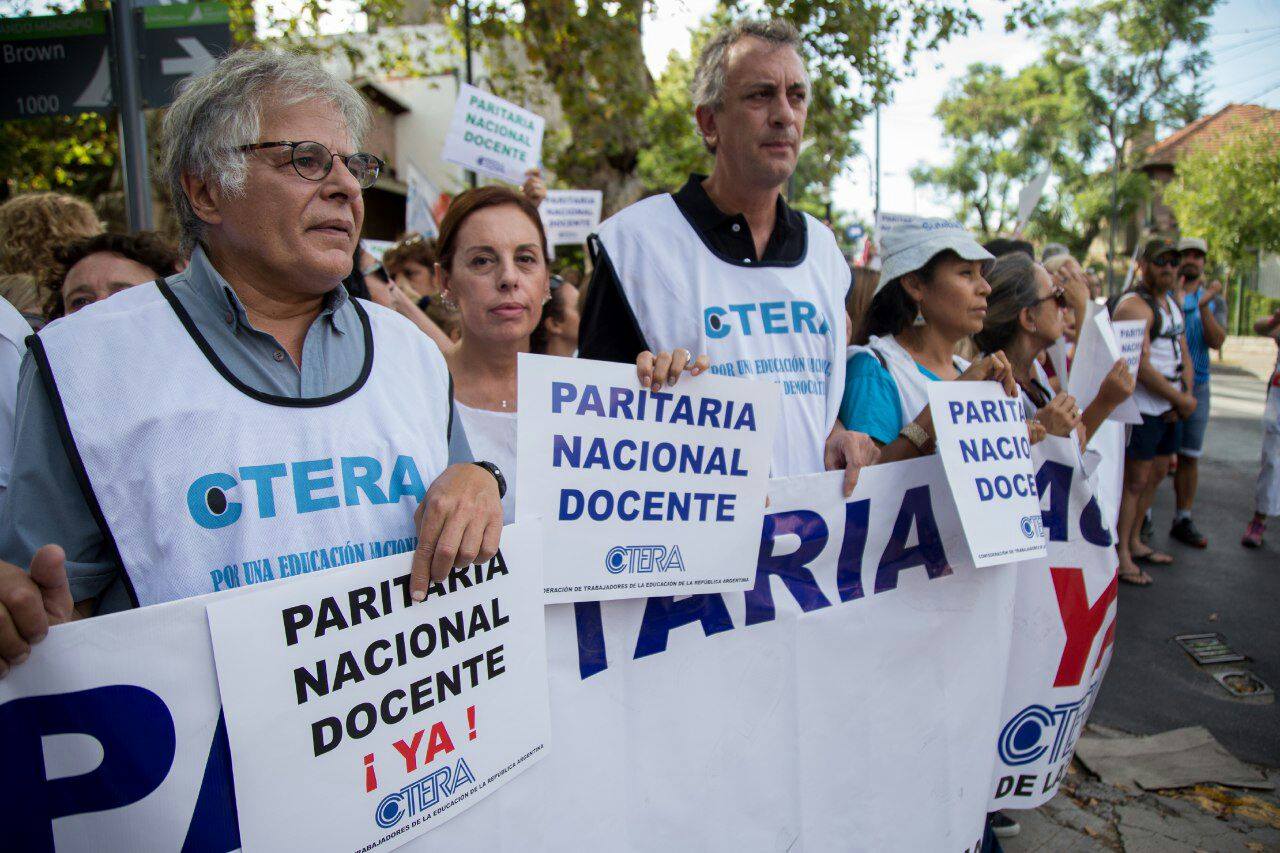 Por su parte, Silvia Almazán, Secretaria General Adjunta del SUTEBA, expresó: "Nos movilizamos para sostener la demanda por la Paritaria Nacional Docente y exigir que se deje sin efecto el Decreto que pretende eliminar una Ley. El Gobierno Nacional busca eludir la responsabilidad que tiene como garante de la Educación en todo el país".