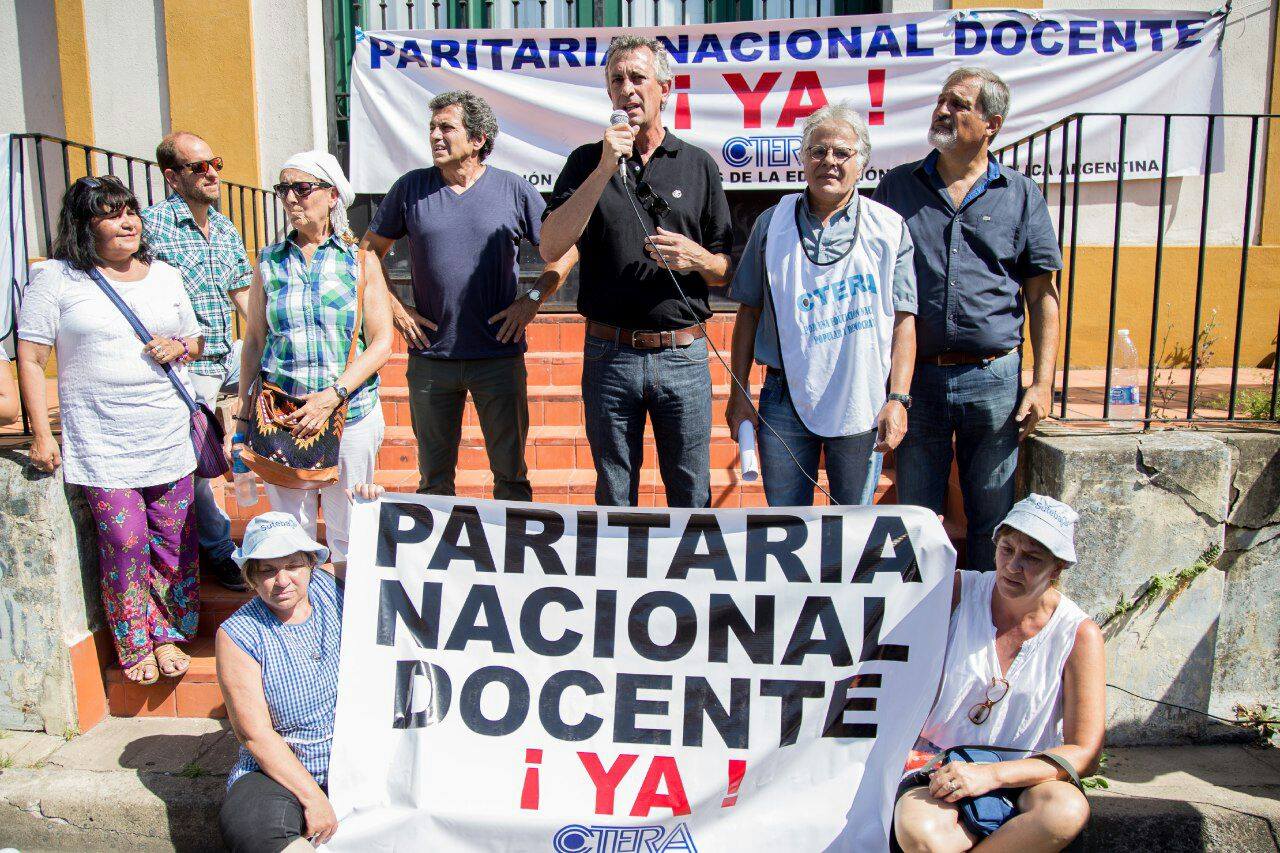 A continuación, se realizó un acto con la presencia de los representantes de las delegaciones de CTERA, donde la Secretaria General Adjunta del SUTEBA, María Laura Torre, sostuvo: "Somos cientos de docentes con representación de todo el país que le exigimos al Gobierno Nacional que nos convoquen a la paritaria inmediatamente, ya que el decreto 52/2018 no puede dar por tierra un derecho que conquistamos los Trabajadores de la Educación con mucho esfuerzo. Les decimos a los Ministros de Educación que cuando vuelvan a sus provincias y tengan que mirar a la cara a los Docentes, que tengan la entereza de decirles si va a haber paritaria nacional o van a ser parte del avasallamiento de nuestros derechos. No nos van a borrar las convicciones ni la fuerza con decretos, la CTERA tiene una fuerte historia de lucha y organización".