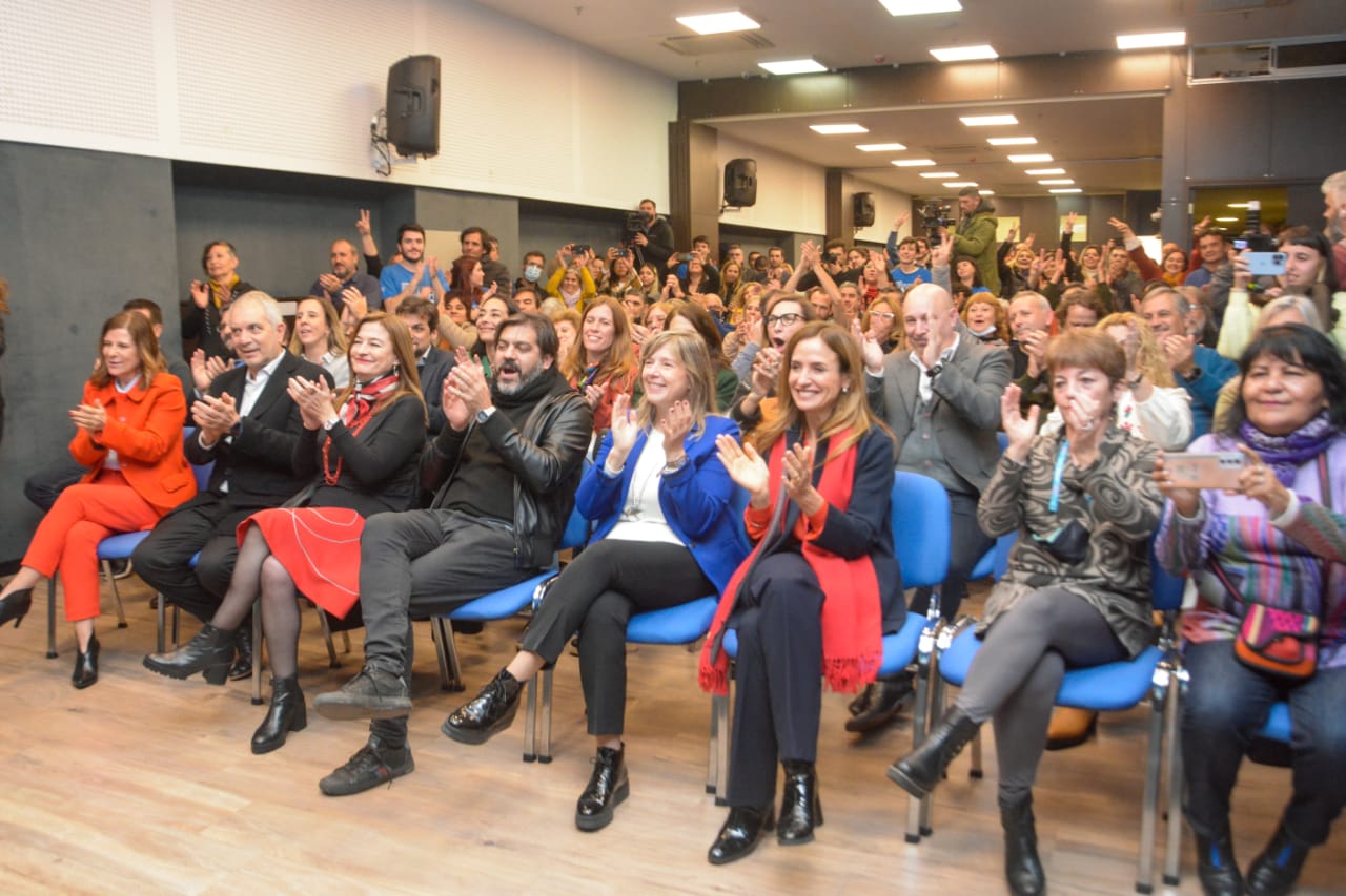 María Laura Torre remarcó: "La importancia de inaugurar este Instituto es inmensa. Se comienza a concretar un viejo sueño. Y no puedo dejar de mencionar a Vilma Pantolini, que de alguna manera sintetizó este sueño que hoy se está haciendo realidad, nuestro Instituto Superior conveniado con la DGCyE. Para nosotrxs la formación docente es vital, con la centralidad de poder realizar esta formación desde la concepción de lxs Trabajadorxs. Así que hoy estamos inmensamente felices de compartirlo con el primer grupo de alumnxs, con nuestro Consejo Ejecutivo Provincial, con todas las autoridades que vinieron, entre ellas el Gobernador Axel Kicillof y el Director General de Cultura y Educación, Alberto Sileoni. Y también muy felices con las autoridades de nuestro Instituto, con la Directora, Florencia Riccheri, una compañera de años de militancia y de lucha. Hoy inauguramos nuestro primer Instituto, y el desafío es seguir creciendo en este aspecto".