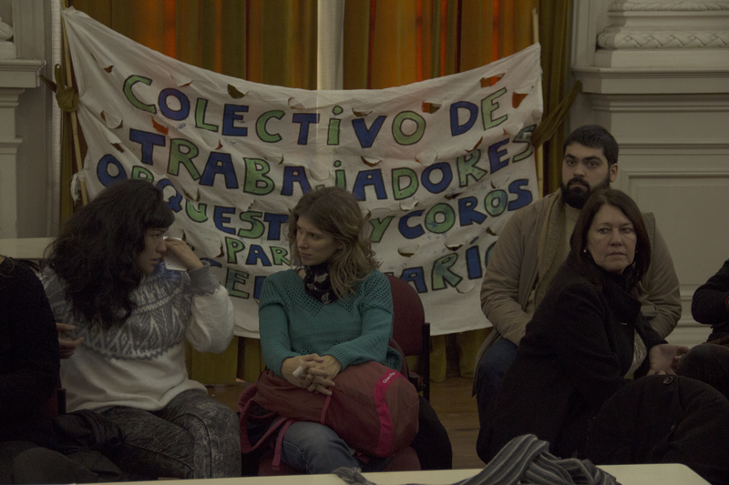 La reunión se realizó para exigir la resolución inmediata de las diferentes cuestiones que ponen en serio riesgo la continuidad del Programa Nacional de Coros y Orquestas del Bicentenario, tales como el pago de los salarios adeudados, la firma de los contratos y la regulación del desarrollo del proyecto en las escuelas.