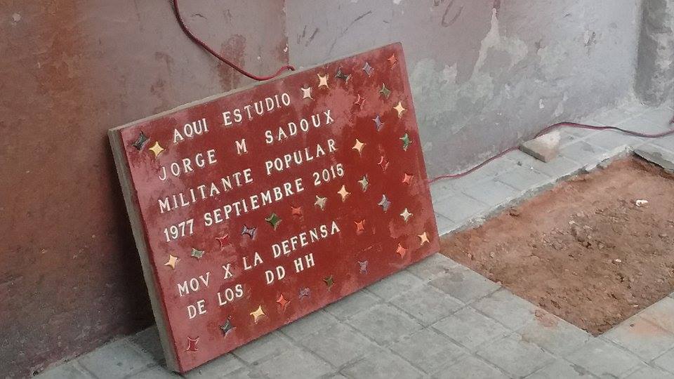 El SUTEBA Junín y la CTA de esa ciudad se hicieron presentes en el acto de colocación de una baldosa en memoria de Jorge Sadoux, militante detenido desaparecido durante la dictadura cívico militar. El homenaje se colocó frente a la Escuela de Educación Técnica Nº2, en la que realizó sus estudios secundarios.