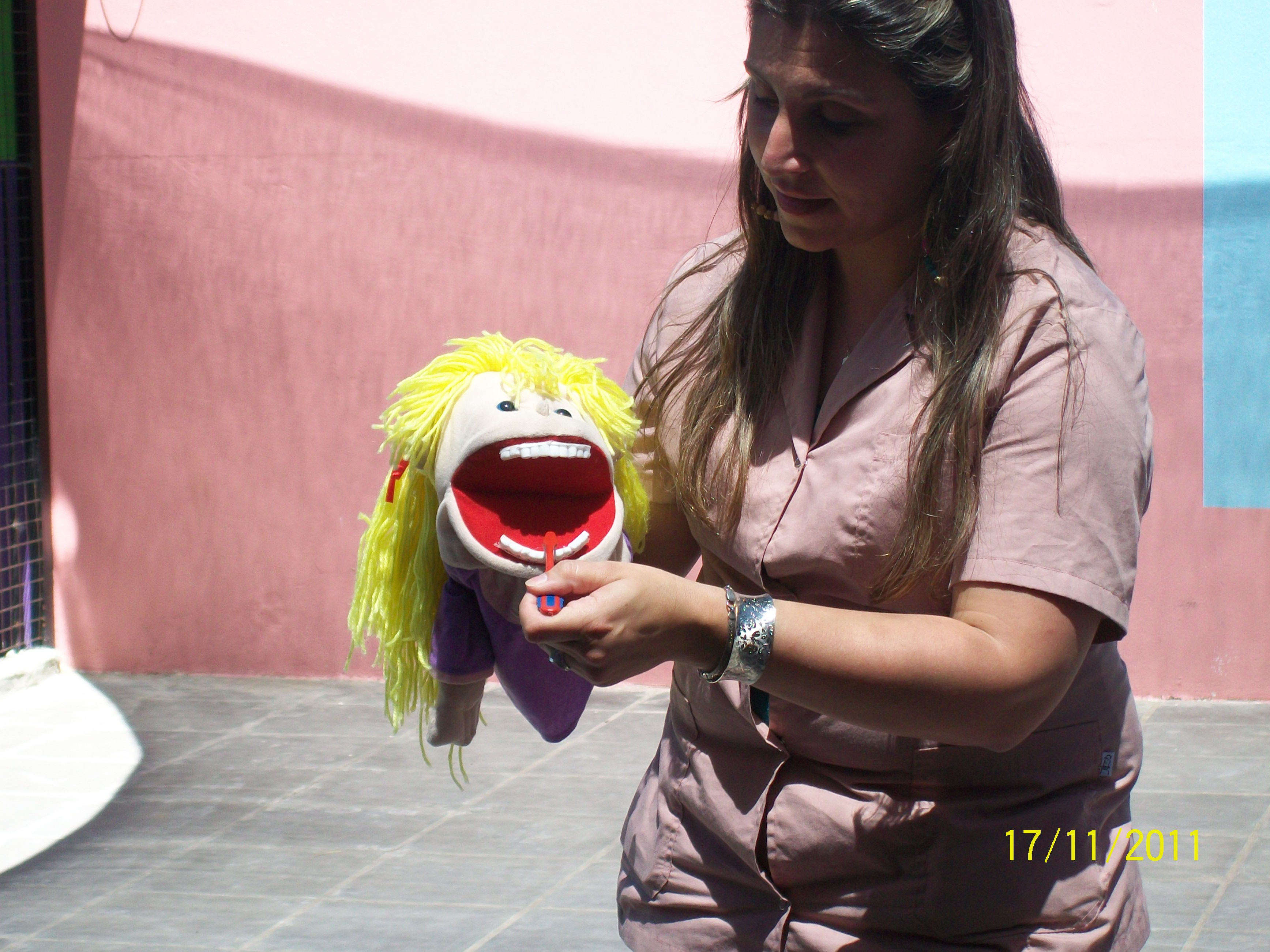 La jornada comenzó con la presentación del personal y el inicio de la obra de títeres, que fue protagonizada por dos personajes con diferentes estados bucales. A partir de este cuadro de situación, se explicaron las causas que los habían provocado. De la misma manera se promocionó la alimentación saludable, el cepillado dental frecuente, el examen periódico médico y odontológico.