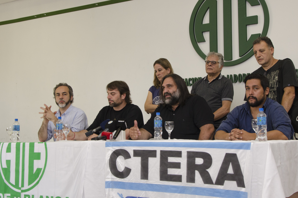Asimismo, Eduardo López, Secretario General de UTE, sostuvo: "Respecto al Plan Nacional de Formación Permanente, el Gobierno y nosotros entendemos que la formación docente es importante, la diferencia es que ellos quieren privatizarla para que se encarguen las empresas. Un funcionario del Ministerio de Educación, Gabriel Sánchez Zinny, quien coordina el INET, donde se va a formar una agencia de formadores de talento, es dueño de una empresa de formación docente virtual, justo lo que están desmembrando en el Ministerio. Esteban Bullrich es su socio y juntos comparten una cuenta offshore en Panamá. ¿Por qué el Ministro dice que hay que formar a los docentes pero desarma la mejor actualización? Porque tiene un negocio, pero entendemos que la formación tiene que ser gratuita y para todos. Vamos a pelear por formación permanente, gratuita y en servicio".