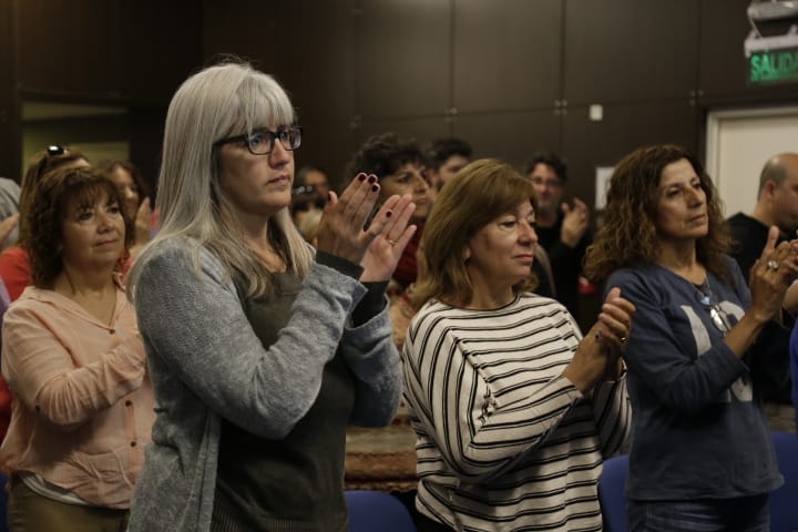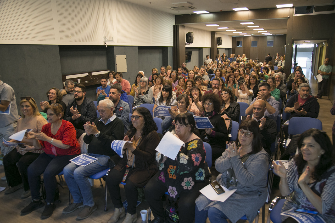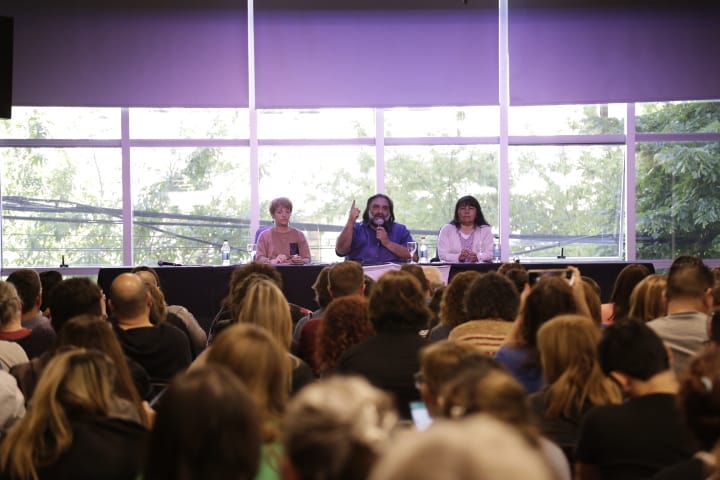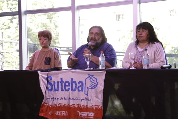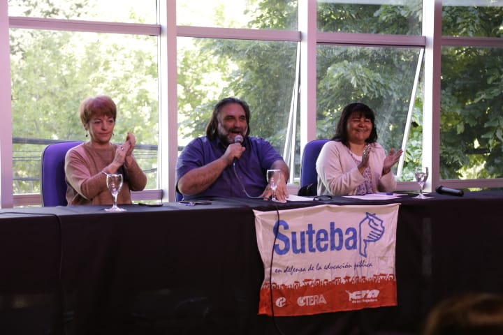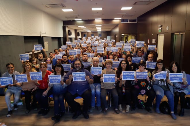Para finalizar, lxs Secretarixs Generales expresaron su apoyo a la campaña de las entrañables Abuelas de Plaza de Mayo y sostuvieron carteles con el lema #TeBuscoDesde SUTEBA, por todxs lxs nietxs y bisnietxs que aún faltan encontrar.