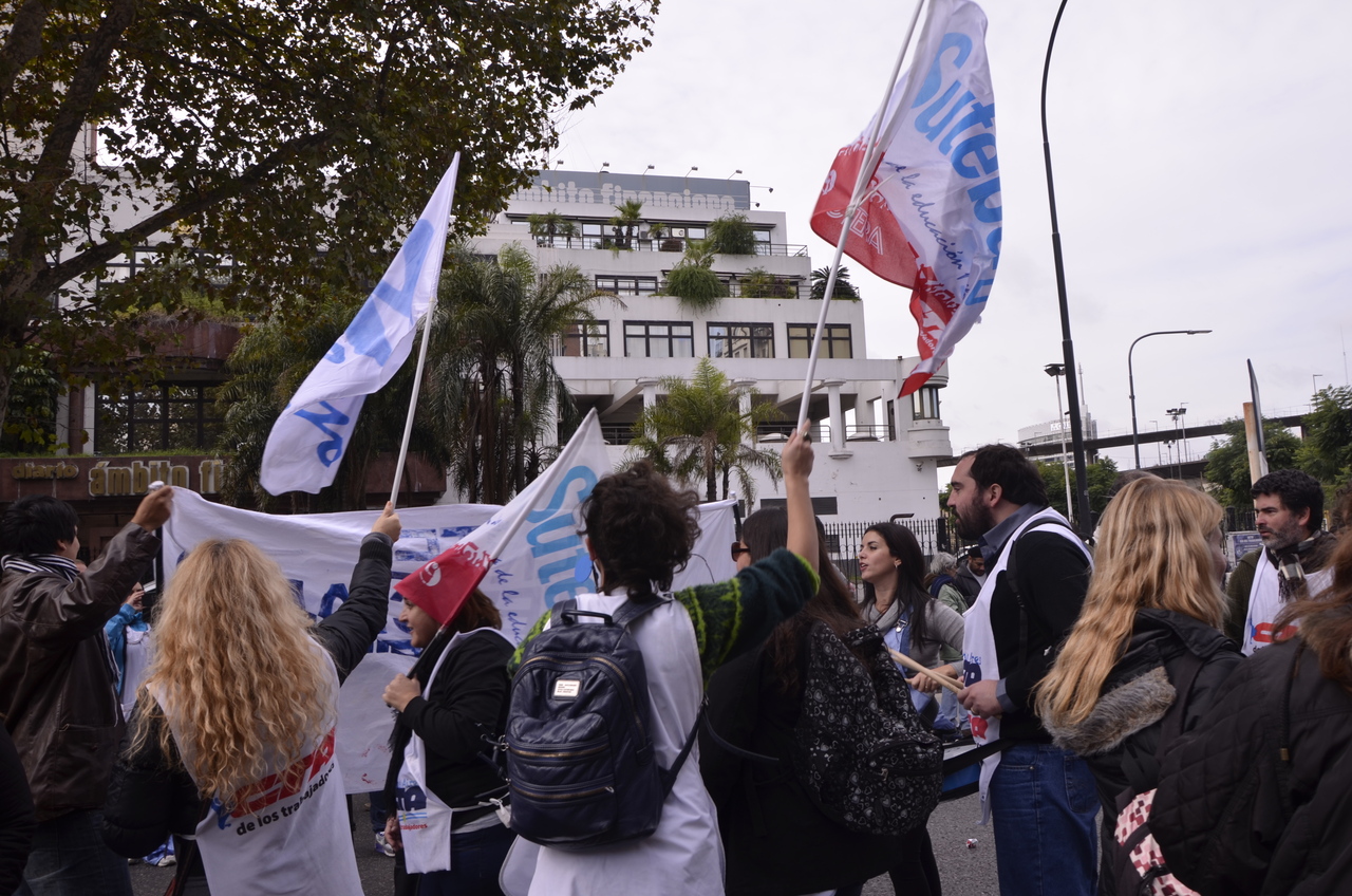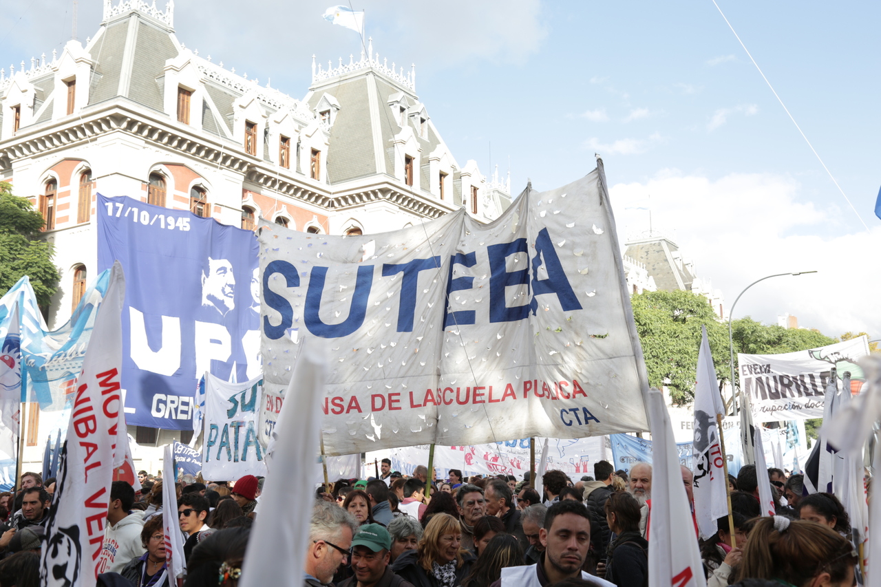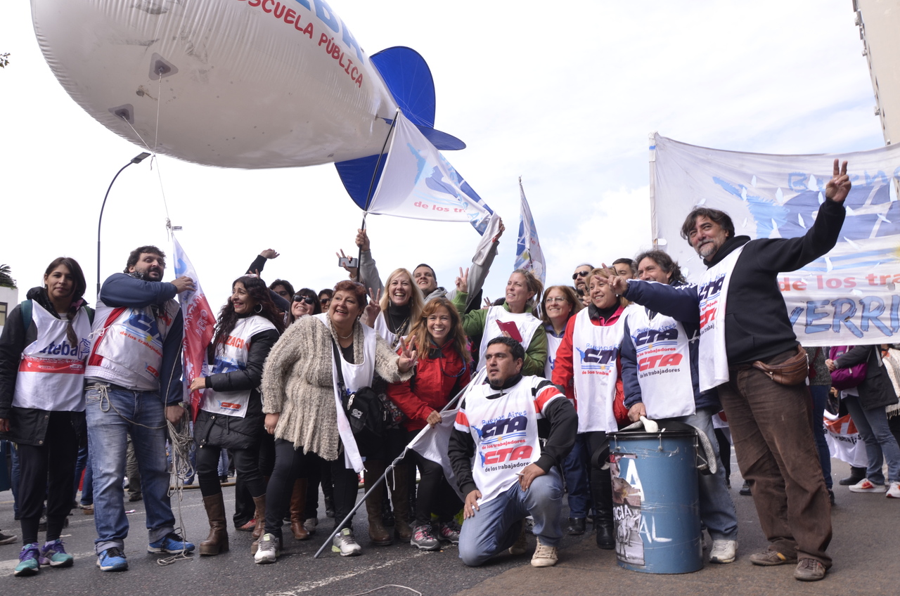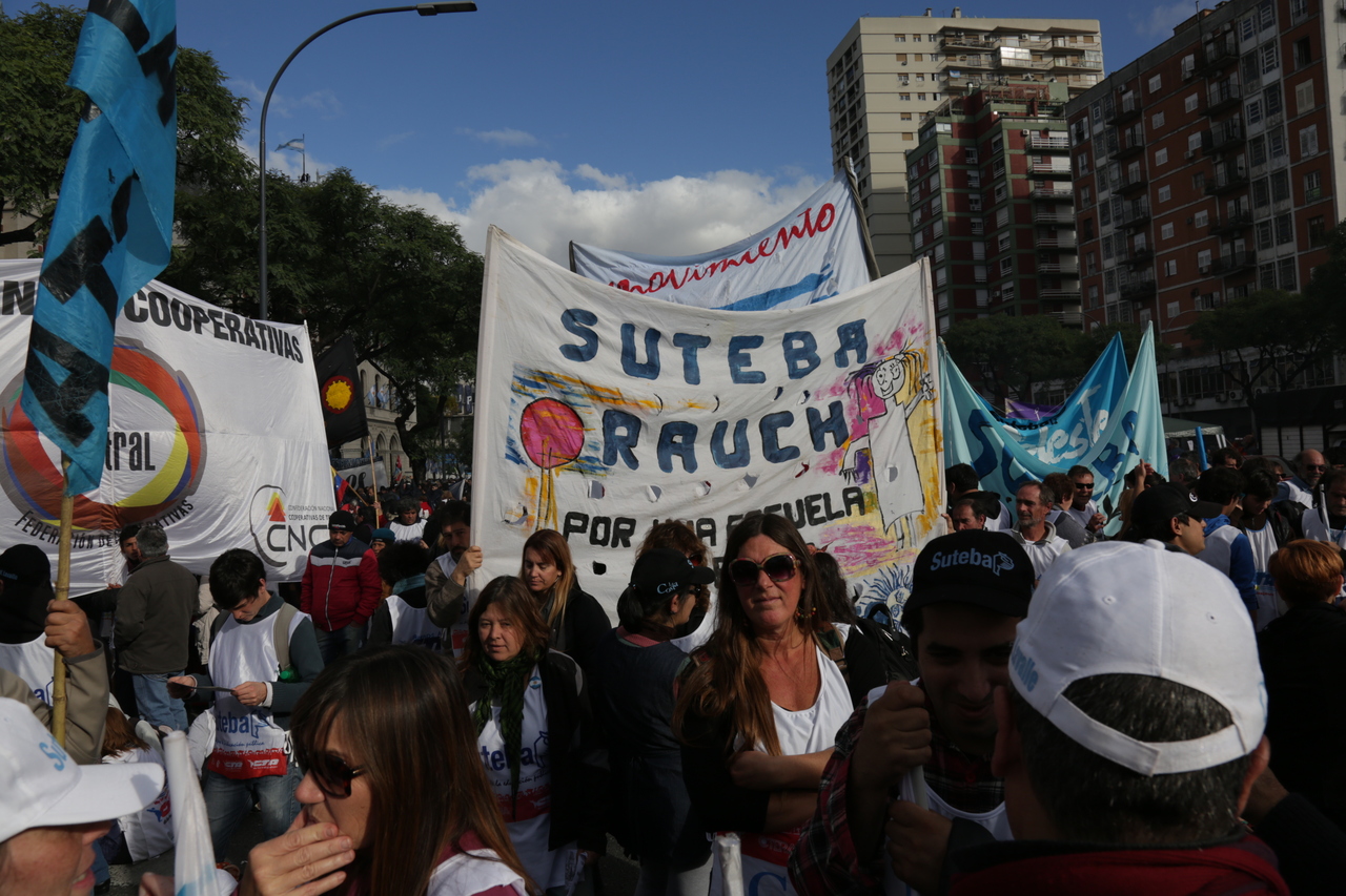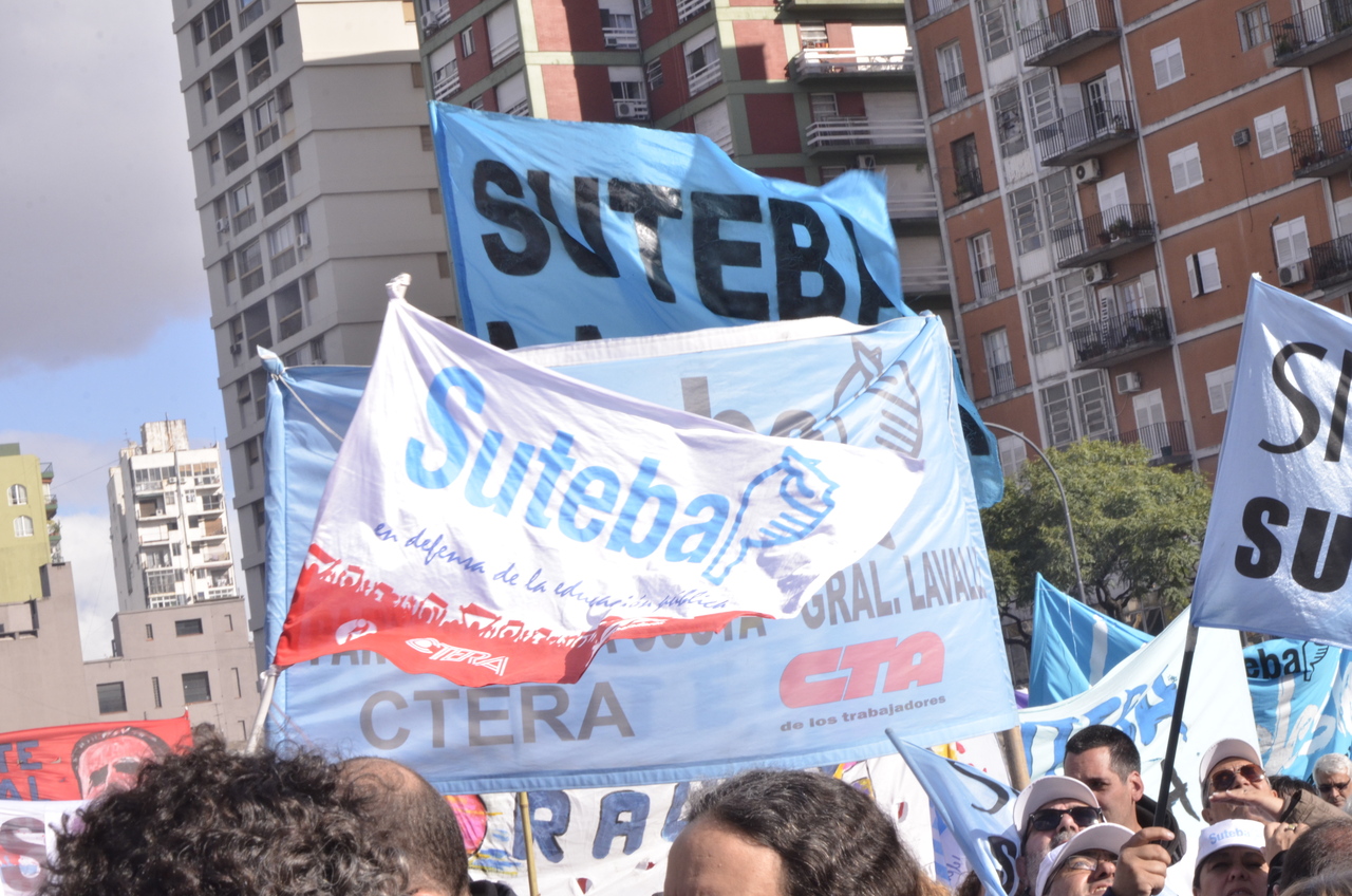 El viernes 29, la CTA y la CGT realizaron el Acto del Día del Trabajador frente al Monumento al Trabajo con una multitudinaria convocatoria de trabajadores el SUTEBA estuvo presente junto a los sindicatos de base de la CTERA y las regionales de la CTA. Las consignas de esta imponente movilización, que estuvo marcada por la unión de cuatro centrales sindicales (CTA de los Trabajadores, CTA Autónoma, CGT Balcarce y CGT Azopardo) fueron "no a la inflación, no al Impuesto a las Ganancias, no a los despidos y por una jubilación digna".