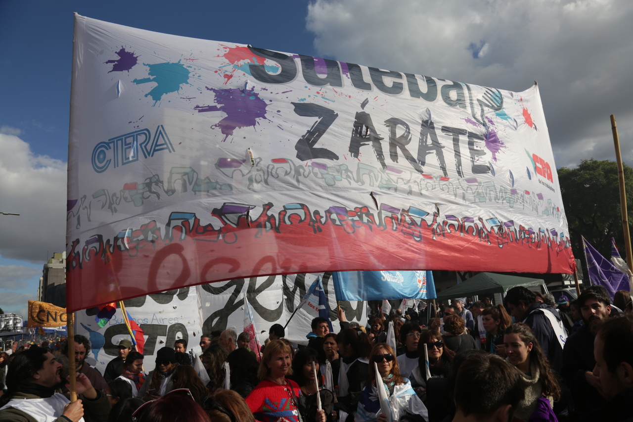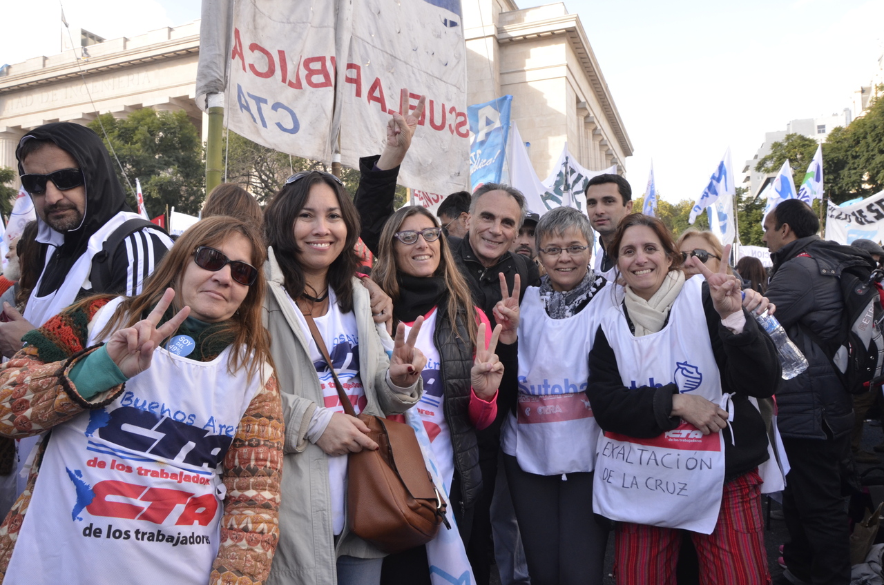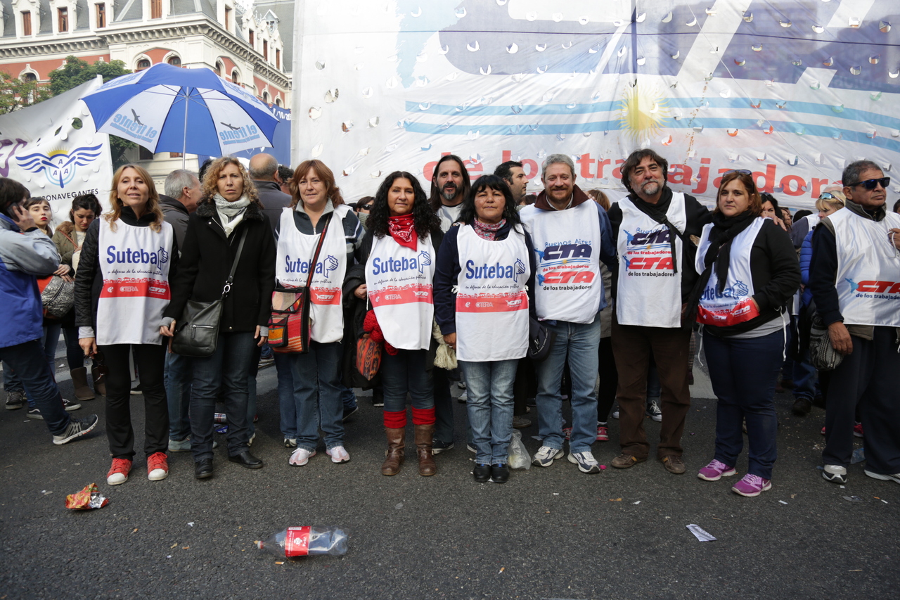 Por su parte, el Secretario General de SUTEBA y de la CTA Provincia de Buenos Aires, Roberto Baradel, compartió: "Esto es histórico, hace muchos años que el Movimiento Obrero no se unificaba con esta contundencia, hoy en contra de los despidos, la criminalización de la protesta y del plan de ajuste que afecta a los trabajadores. Las decisiones que tome el gobierno con respecto a los trabajadores marcará las decisiones del Movimiento Obrero para unificarnos por los intereses de los trabajadores y de nuestro pueblo. No vamos a resignar derechos, mucho menos cuando se le pide un esfuerzo a los trabajadores en este presente, que ellos hagan el esfuerzo y respondan a nuestras necesidades".