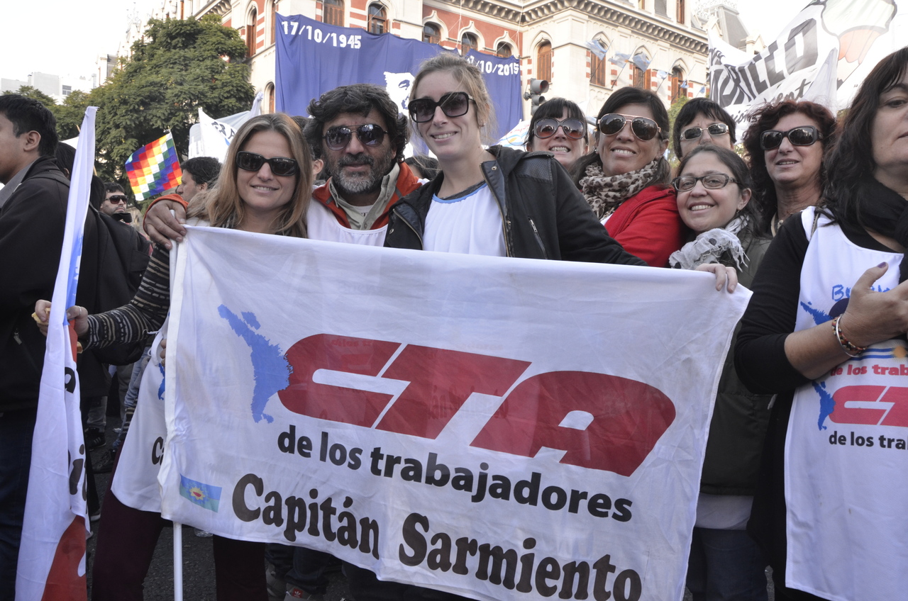 El acto estuvo colmado de columnas que llegaron de cada punto cardinal del país, conformando una multitudinaria marcha de trabajadores de todas las organizaciones y sindicatos, portando pancartas con consignas y banderas que flameaban al ritmo de los bombos, los aplausos y los cantos de los compañeros.