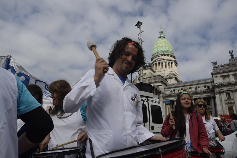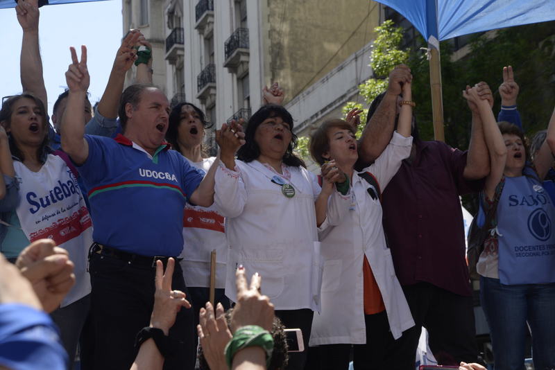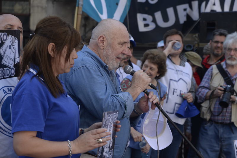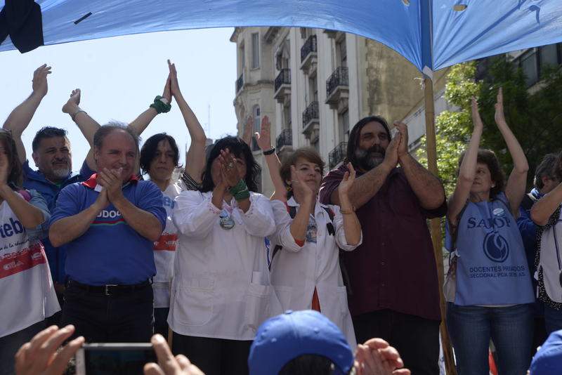 Desde el escenario, y con la Avenida Callao colmada de Docentes, lxs representantes del FUDB destacaron la historia y la convicción del colectivo, rechazaron el Decreto y expresaron que si el jueves no hay un cambio de rumbo y la Gobernadora no escucha los reclamos, se profundizará el Plan de Lucha.