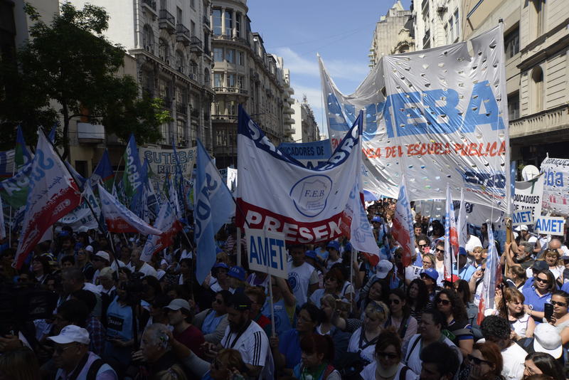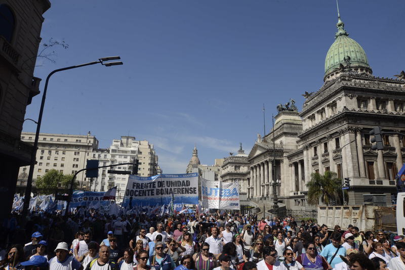 Miles de Docentes organizadxs en SUTEBA y en los sindicatos que conforman el Frente de Unidad Docente Bonaerense, en el marco del Paro Provincial de 48 hs, se movilizaron desde el Congreso de la Nación hacia la Casa de la Provincia para demandarle al Gobierno de Vidal por Salarios Dignos y Escuelas Seguras.