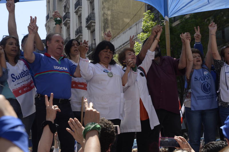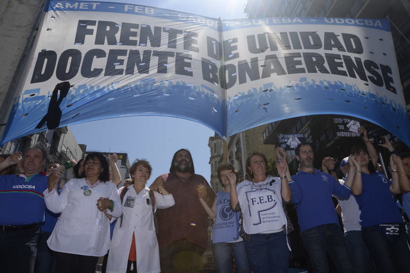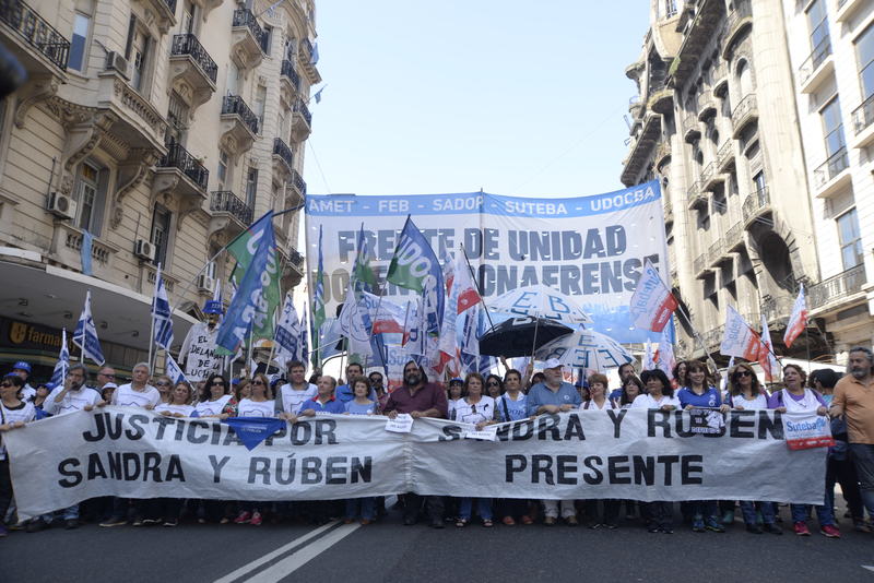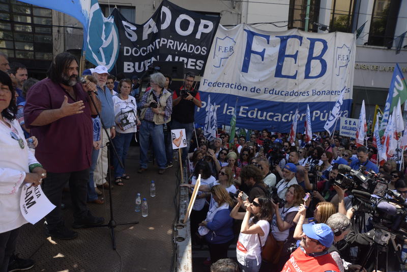 En este sentido, el Secretario General del SUTEBA, Roberto Baradel, sostuvo: "Qué orgullo ser parte de este Frente y de este colectivo de Docentes, que no está dispuesto a bajar los brazos y que va a seguir luchando por la Escuela Pública y en defensa de sus Derechos. Se viene un ajuste más fuerte en Educación a nivel nacional, pretenden recortar en un 80% el Presupuesto, aún después de las muertes evitables de Sandra y Rubén. En paralelo, aumentan una partida para fundaciones y ONG: pretendiendo así hacer negocio con la Escuela Pública. Sepan que no se lo vamos a permitir".