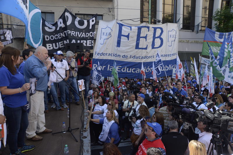 "El día que se trate el Presupuesto, hay que pararse firmemente en contra de este brutal ajuste. Gobernadora Vidal: estuvimos en las aulas y usted no nos convocó, dijo que estaba abierta al diálogo pero le mintió a la sociedad. Hay más de 500 Escuelas que no tienen clases y usted no se ocupa, no soluciona los problemas de Infraestructura y Comedores Escolares. No mienta más, no puede tapar el sol con la mano. Hay desidia, hay ajuste y hay ataque a la Educación Pública", subrayó el Secretario General.