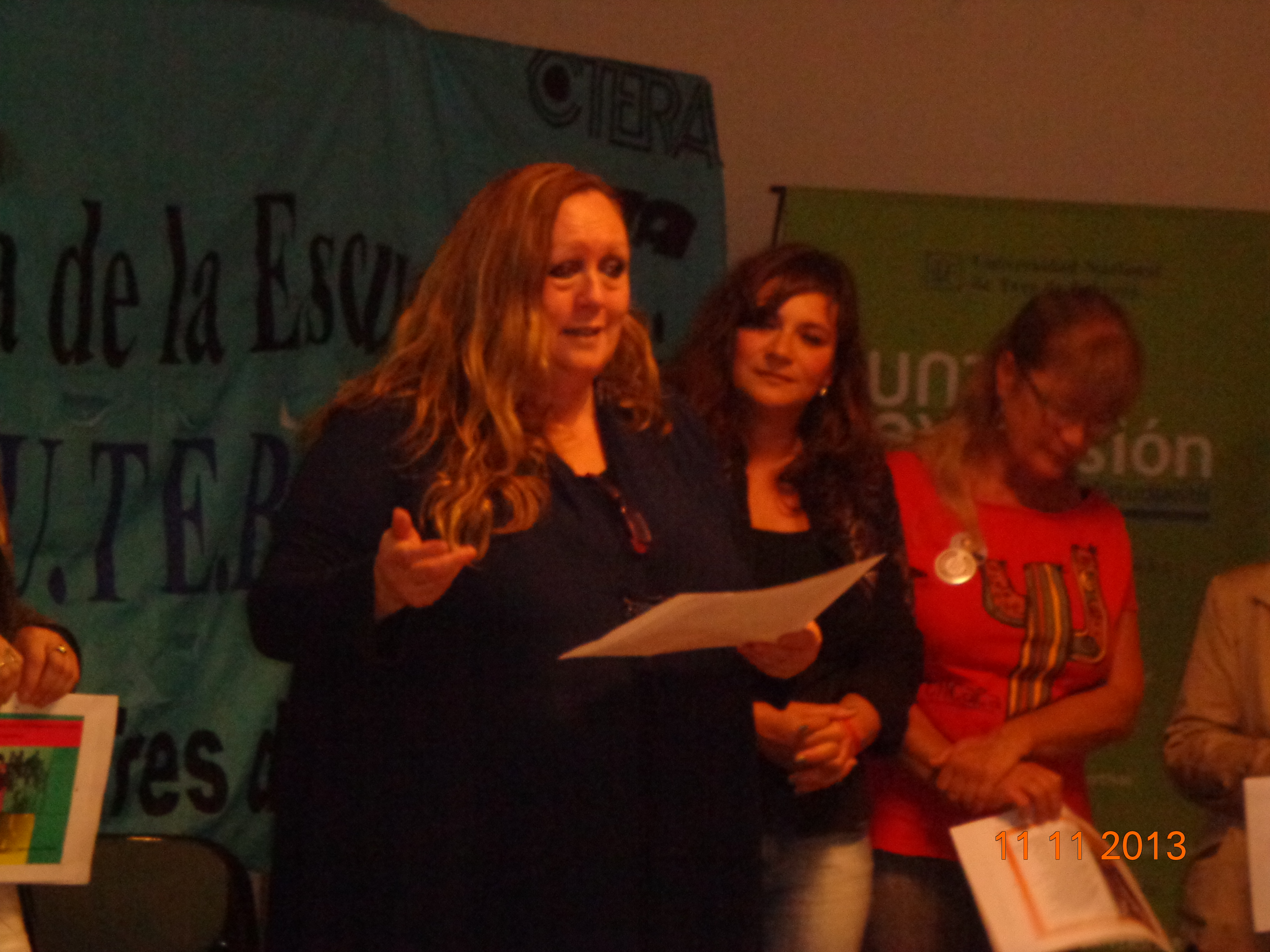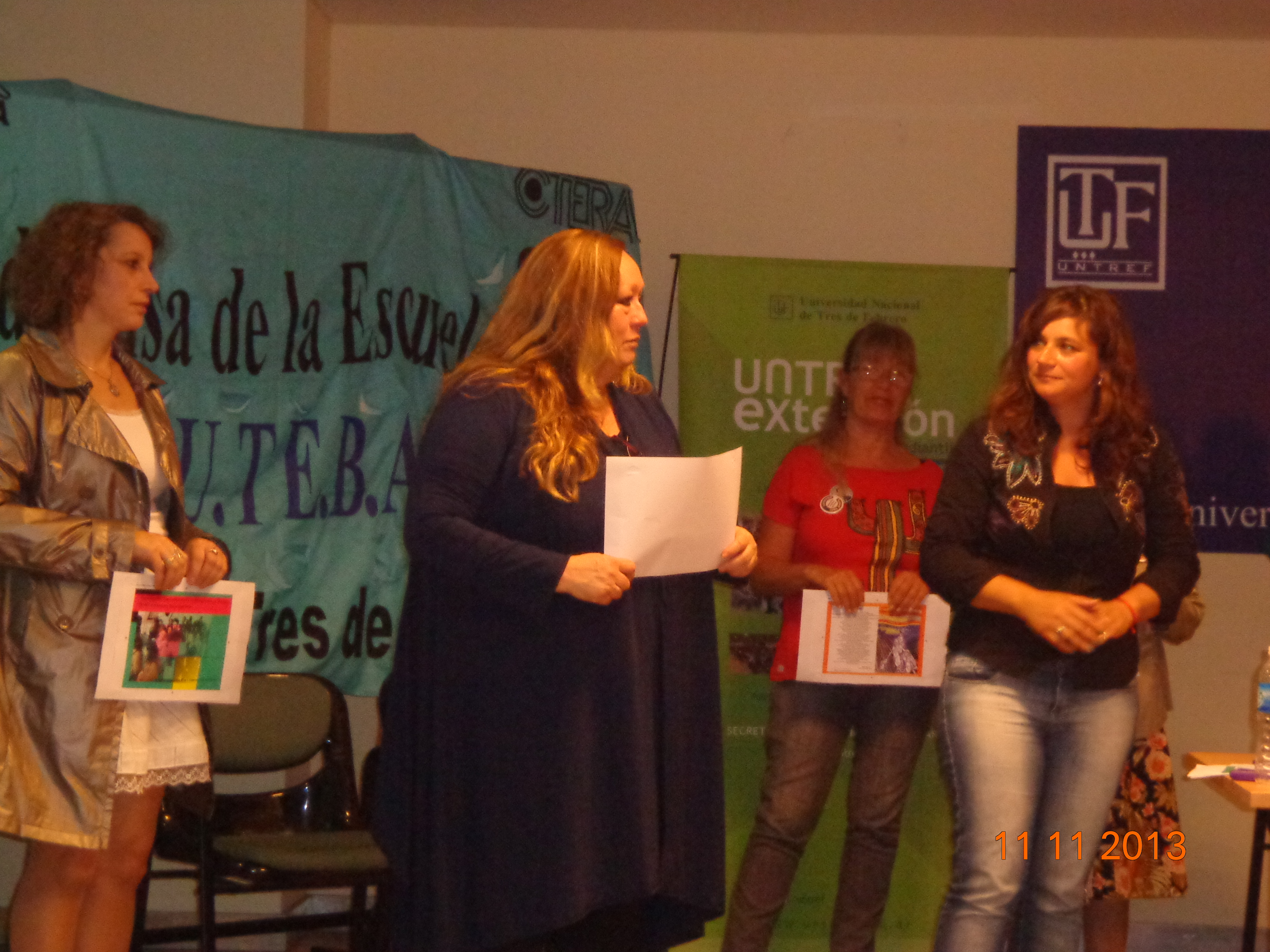 Los disertantes fueron agasajados con la entrega de una página del libro, una marquetación de la primera edición, en reconocimiento por el trabajo y los aportes realizados en la compilación y publicación del ejemplar. Fueron distinguidos los compañeros de la Comisión Directiva del SUTEBA San Martín y Tres de de Febrero, la Comisión Memoria, Verdad y Justicia de Zona Norte; el Jefe Distrito Tres de Febrero, Sr. Bernardo Llamas y la Secretaria SAD Tres de Febrero, Sra. Beatriz Méndez.