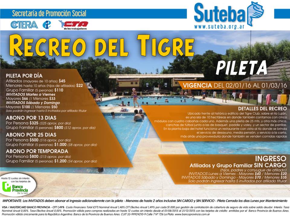 Acercate a tu Seccional, consultá las fechas y reservá tu lugar para vivir un verano en el Tigre!