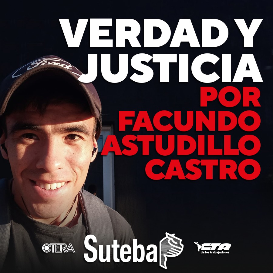 Ante la información oficial emitida por la Jueza Federal María Gabriela Marrón a partir del informe del Equipo Argentino de Antropología Forense, en relación a la identificación de los restos de Facundo Astudillo Castro; desde el SUTEBA expresamos nuestras condolencias a su madre, familiares y amigxs, acompañándolxs en estos momentos de profundo dolor.