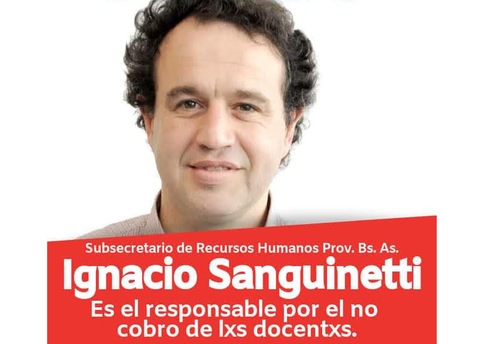 Asimismo, también detectamos que miles de Docentes siguen sin cobrar sus sueldos, cuestión que viene repitiéndose desde principios de año. Ignacio Sanguinetti, Subsecretario de Recursos Humanos, es el responsable directo de la falta de cobro y de los descuentos indebidos en los salarios de cada Trabajador/a de la Educación.
