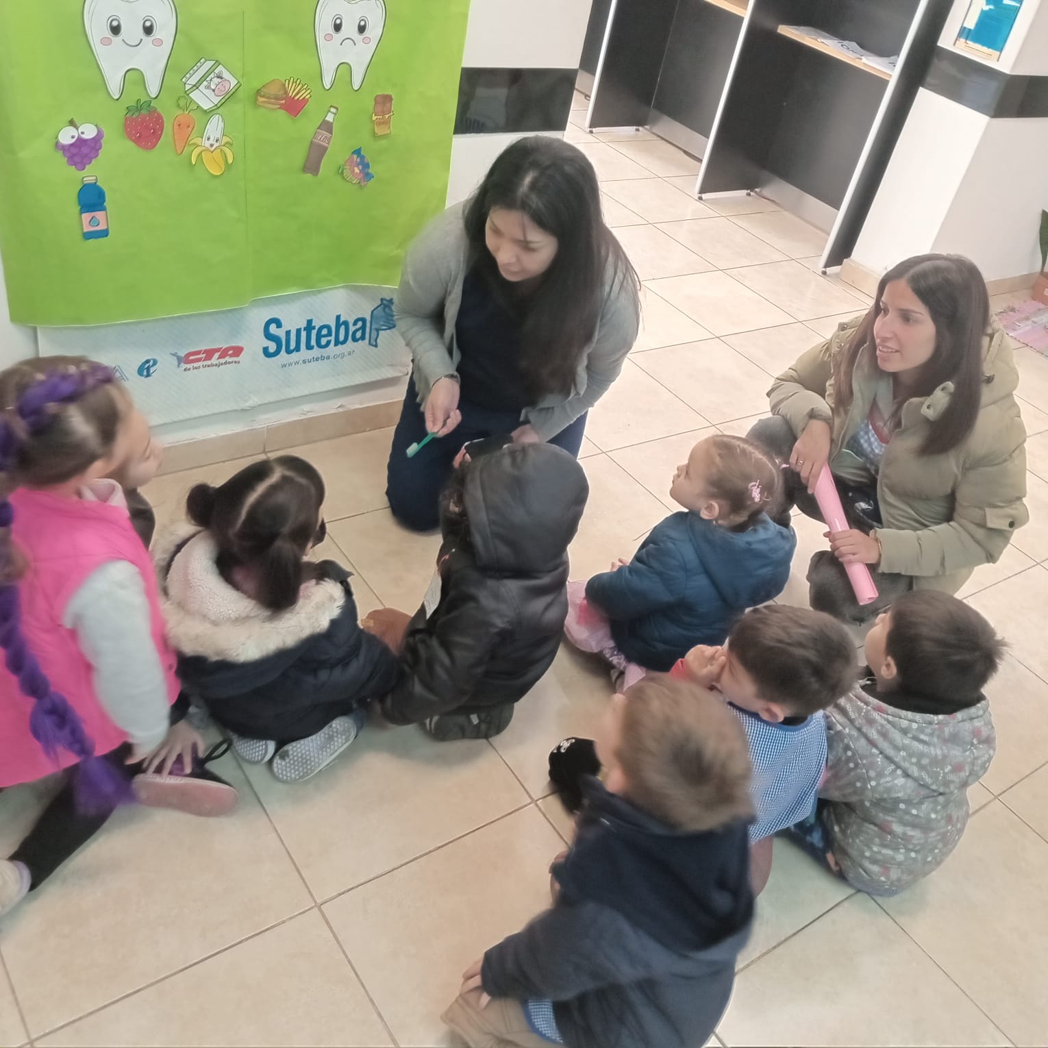 Lxs chicxs pudieron conocer las instalaciones, los consultorios de odontología, y participaron de actividades sobre higiene bucal, alimentación e higiene de manos, una experiencia que seguramente complementará su cuidado diario.